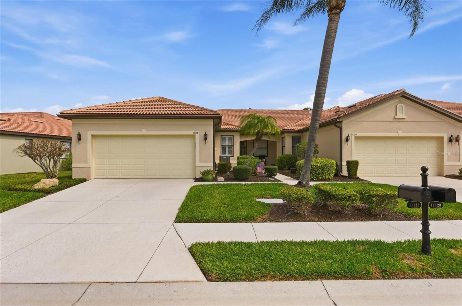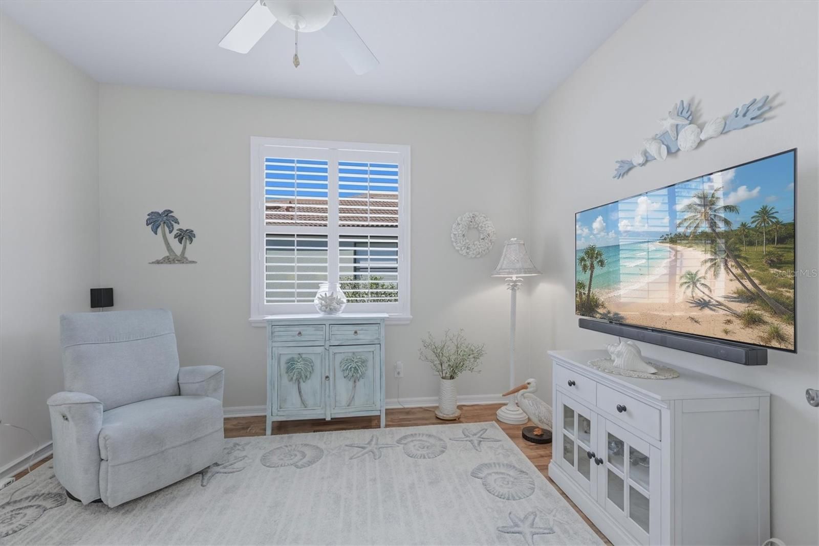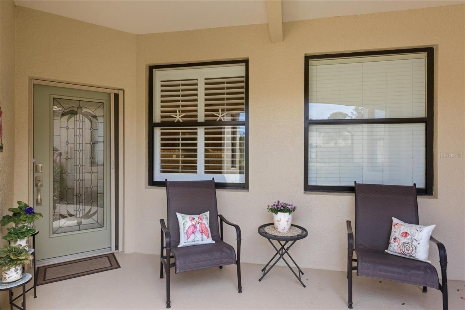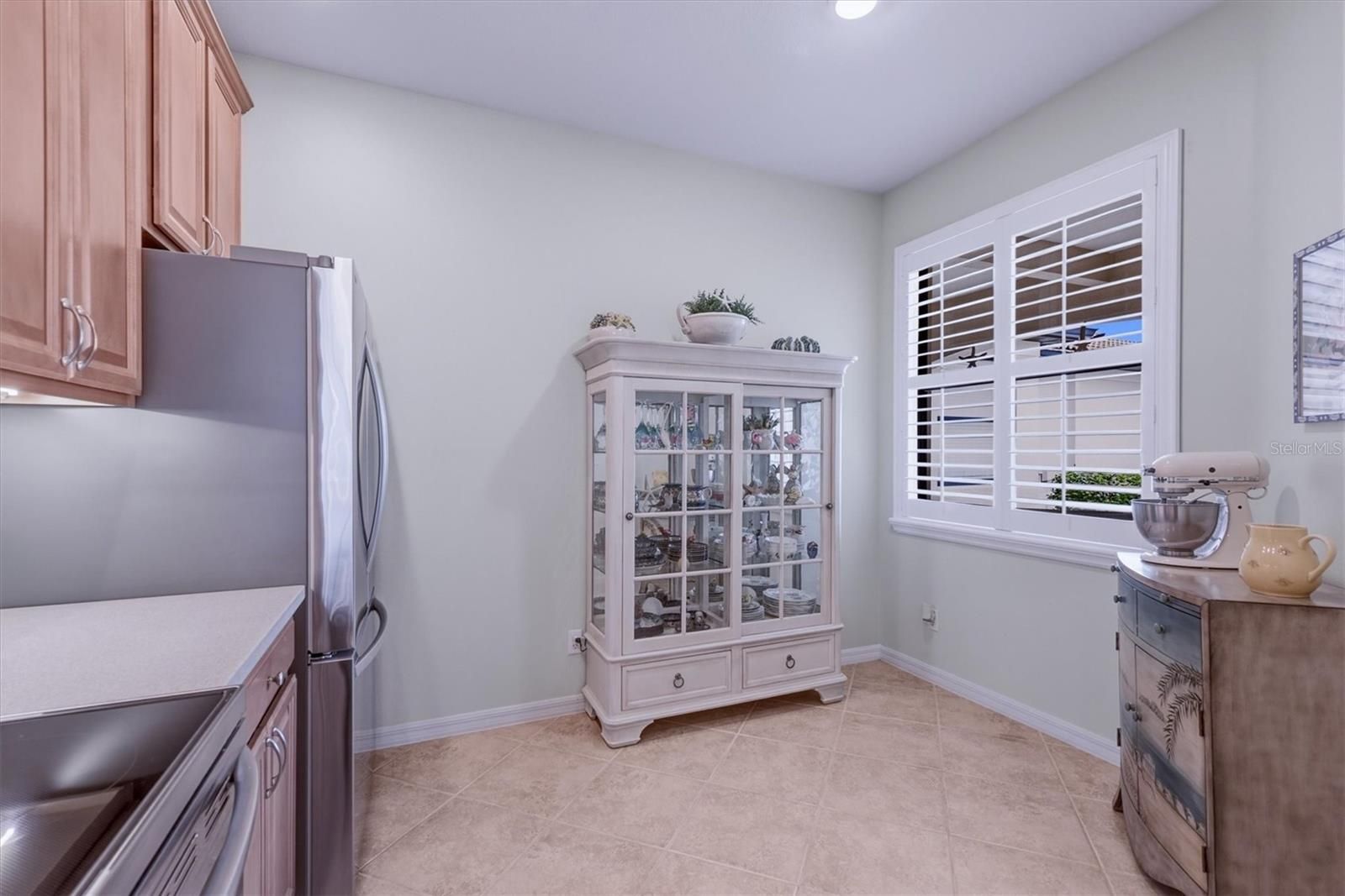 Welcome to this stunning light-filled end unit in the vibrant 55+ community of Venetian Falls! Step through the beautiful glass front entry into a home that’s been thoughtfully designed for comfort and style. Enjoy plantation shutters throughout, with no carpeting for easy maintenance, and solid wood cabinets featuring a warm finish that complements the solid surface countertops, seamless sink, and tile backsplash. The kitchen shines with stainless steel appliances, including a newer counter-depth refrigerator and new stove, plus updated lighting in both the dining room and kitchen. The inviting great room/dining room combo creates the perfect space for relaxation or entertaining, all enhanced by a light and airy seaside theme. Outside, the beautifully extended lanai offers a storm shade for convenient storage of outdoor furniture and slider protection, making it ideal for Florida living. HOA fees cover ground maintenance, scheduled exterior painting and roof washing, plus cable and internet—keeping life simple and affordable with no CDD fees. Residents love the 16,000 sq ft resort-style clubhouse, packed with activities including a resort-style pool, resistance pool and spa, fabulous fitness center, spacious ballroom for year-round events, bocce courts, library, card room/billiards, arts and crafts room, computer room, and putting green. Onsite management and an activity director ensure a monthly calendar full of fun and community engagement. This is resort living at its best—don’t miss out!