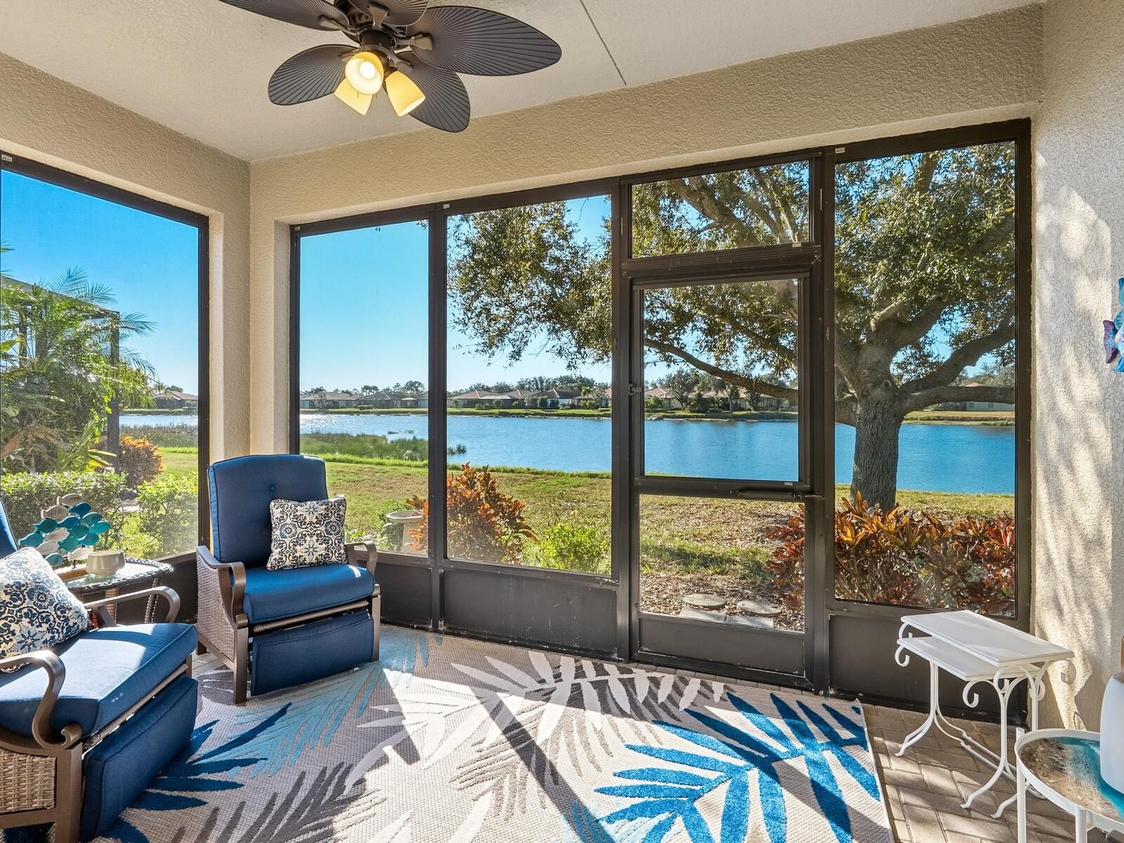 Enjoy sparkling lake views from this beautifully updated garden villa in the premier 55+ resort-style community of Venetian Falls. This desirable end-unit Bella Vista model offers 2 bedrooms plus a den, 2 full bathrooms, and a 2-car garage, with abundant natural light streaming through numerous windows. The home interior has been freshly painted presenting coastal charm. The main living areas feature attractive wood laminate flooring, complemented by plantation shutters and upgraded baseboards that add refined appeal throughout. The kitchen has been recently upgraded with beautiful granite countertops and stainless steel appliances, including induction range, and newer washer and dryer in the laundry room. Further kitchen features include maple cabinetry with decorative trim, a pantry, convenient breakfast bar, and a dining nook overlooking the front of the home. The spacious Primary Suite is a true retreat, offering two closets—including a large walk-in—and an ensuite bath with a double-sink vanity, linen closet, and a generously sized walk-in shower. For added comfort and peace of mind, the home is equipped with accordion hurricane shutters and all-season lanai window panels, giving you the option to seasonally enclose the lanai to your liking. The HOA fee provides a maintenance-free lifestyle, covering lawn care, internet, and basic cable TV, along with scheduled roof power-washing, exterior painting, and mulch replacement. Venetian Falls offers exceptional amenities, including an active clubhouse with a full-time activity director, heated lap pool, spa, resistance walking pool, state-of-the-art fitness center, billiards room, arts and crafts studio, bocce ball, and more. Ideally located just minutes from Gulf beaches, shopping, dining, and historic Main Street Venice, this home offers the perfect blend of comfort, convenience, and resort-style living. One-time $1,000 buyer capital contribution required. Living and dining room furniture plus several other pieces for sale under separate contract. Don’t miss this opportunity to enjoy the best of Florida living!