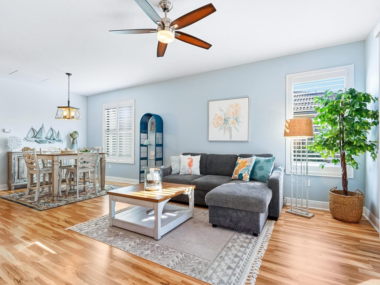 - Ceiling Fan(s), Eat-in Kitchen, Kitchen/Family Room Combo, Open Floorplan, Split Bedrooms, Walk-In Closet(s), Window Treatments