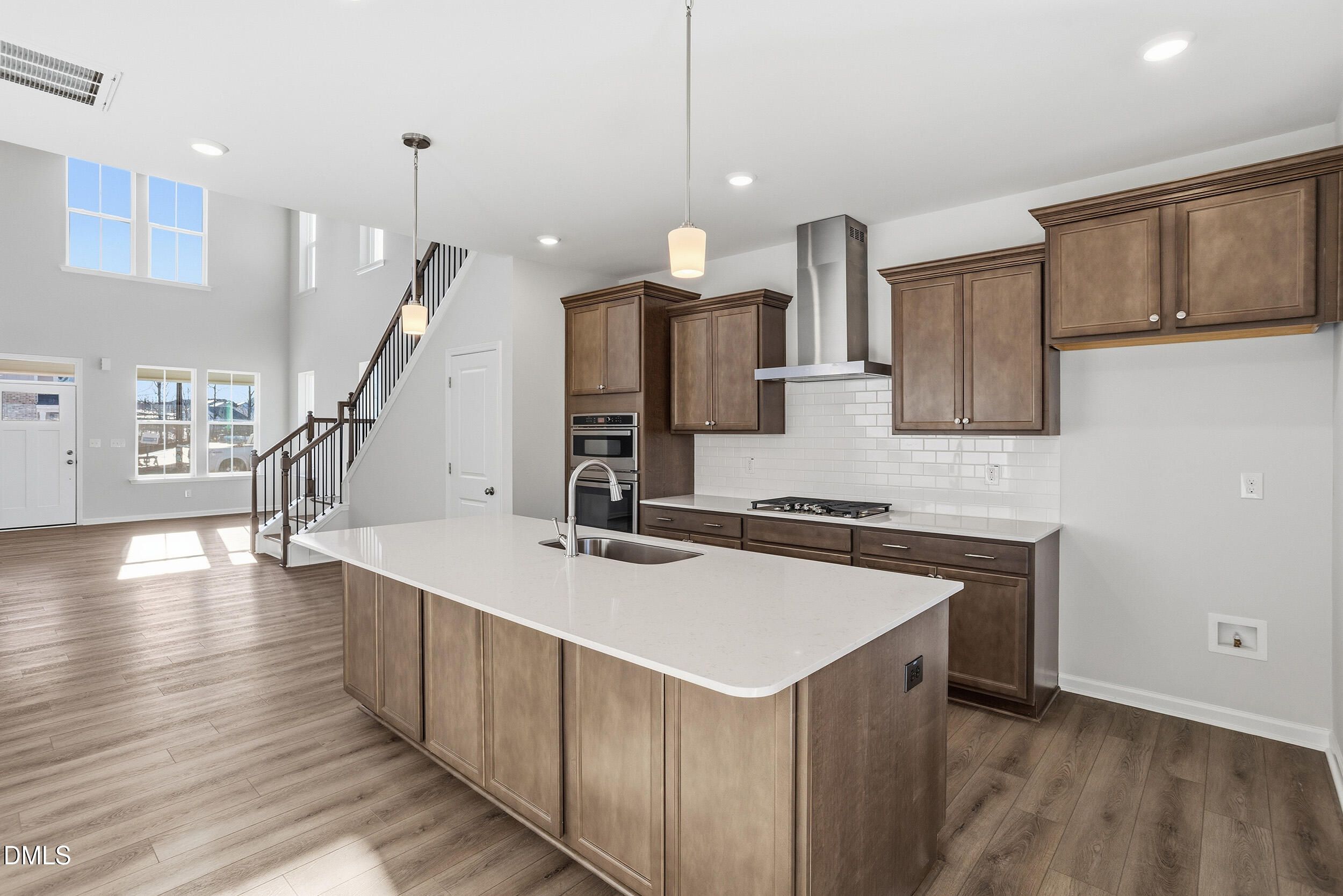 Discover the comfort of low maintenance living at Ovation at Sweetbrier, a new 55+ community designed to honor your lifestyle and freedom. This well-appointed townhome combines elegance and ease, offering first-floor living and refined finishes throughout. This end-unit Hyacinth features a front porch with brick accents framing the one-car garage, and the two-car driveway provides plenty of parking. Inside, you'll love all the tall windows and two-story ceilings welcome you into the great room and provide natural light to flow throughout the open layout. The chef-inspired gourmet kitchen features a large center island with undercabinet storage, pendant lights and beautiful quartz countertops. Premium appliances include a gas cooktop with stainless vent hood, and double wall ovens/microwave—blending form and function beautifully. The large walk-in pantry extends under the staircase providing great storage for large, bulky items. From the kitchen, step out onto your covered porch, an ideal extension of your living space that's perfect for relaxing with a book, enjoying sunny afternoons, or hosting a casual dinner al fresco. Sheltered and serene, it's your own private outdoor retreat. The private main-floor primary suite in the rear of the home features an en-suite bath with a beautifully tiled walk-in shower and bench seat, double vanity, linen closet and a large walk-in closet. A beautiful staircase with hardwood treads and open railing creates an elegant focal point leading upstairs to the open loft area, perfect for work or leisure. Two spacious guest bedrooms, a full bath, and a generous walk-in storage room keeps everything in its place without sacrificing closet or garage space. Best of all, exterior maintenance is taken care of, giving you more time to do what you love, whether that's traveling, entertaining. Durable fiber cement siding keeps your home energy efficient, and a tankless water heather provides endless hot water! Live life your way at Ovation at Sweetbrier, with private resort-style amenities including a cutting-edge clubhouse with fitness center, pool, spa/hot tub, pickleball courts, tennis courts, dog park, chess garden, community garden, scenic paved walking trails and a lifestyle director for planned social events that you can enjoy without ever leaving your neighborhood! These turn-key townhomes are perfect for homeowners on the go! Conveniently located minutes from Brier Creek Parkway with easy access to I-540, I-40, Glenwood/70, RDU Airport, Brier Creek Country Club/Golf and Brier Creek Commons offering a variety of shopping, dining and entertainment options.