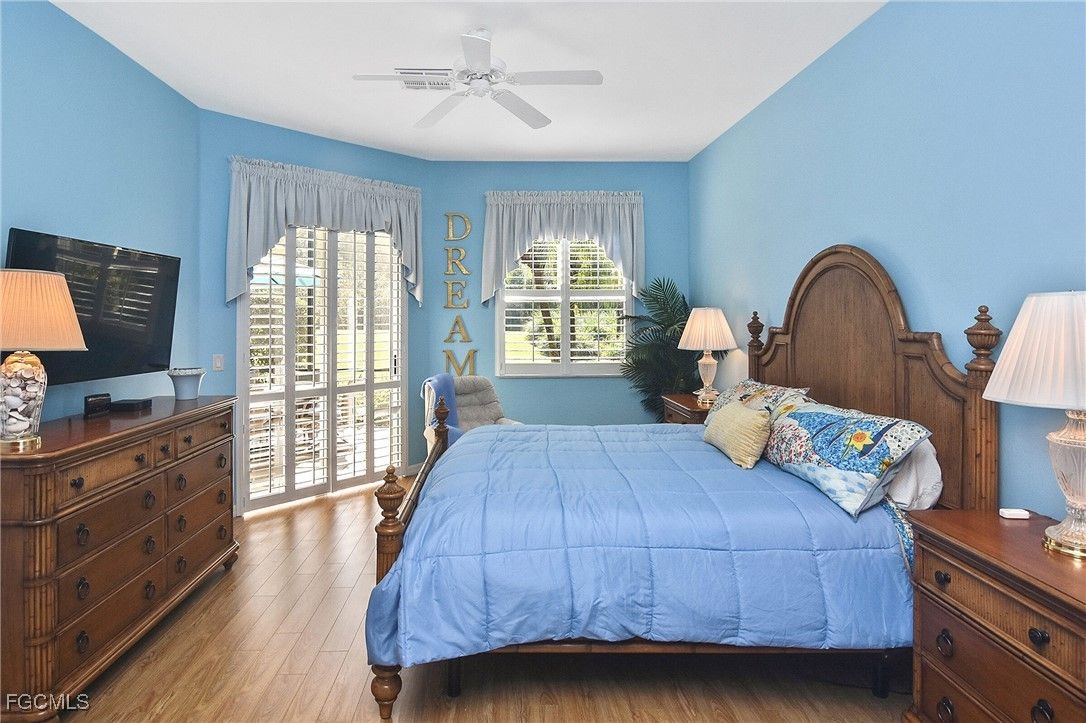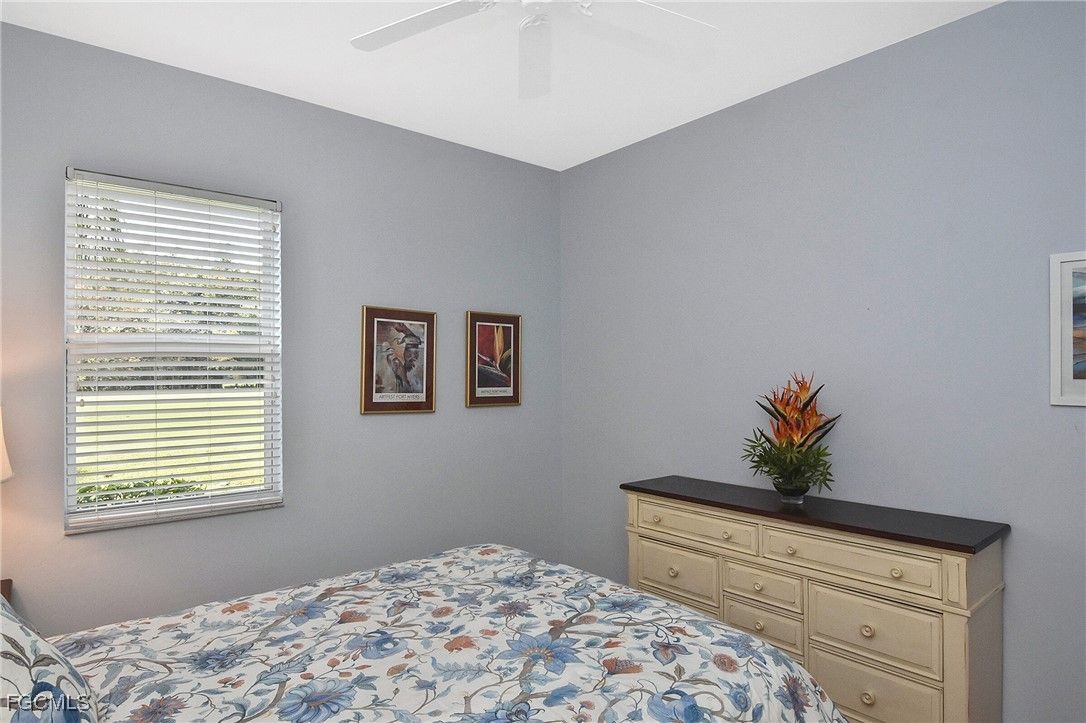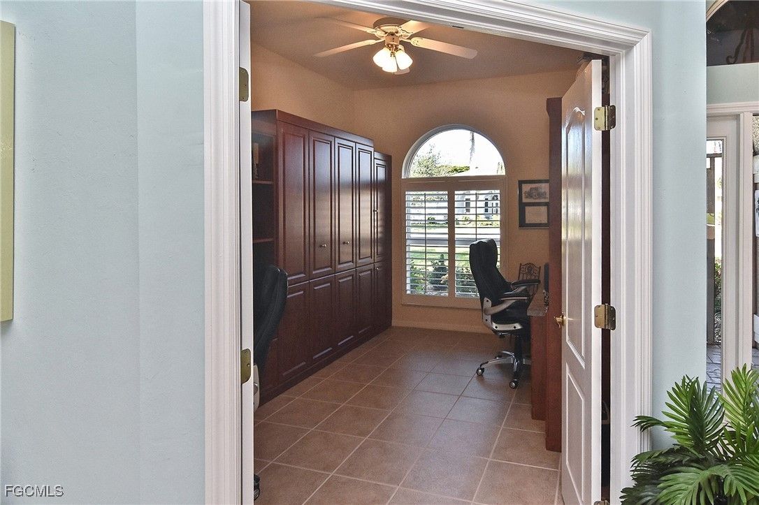 Beautiful home with golf course view is now available! This St. Charles floor plan offers 3 bedrooms, 2 baths plus a den with approximately 2200 sq ft of living space. Upon entering, you are welcomed with the vibrant colors in the beautifully landscaped yard. Greeted with lots of natural light, you can appreciate the view of golf course (13 Sabal) from almost every room! Enjoy morning sunrise with your coffee or tea on the spacious extended lanai. Some highlights of this home include kitchen with quartz counter tops, updated bathrooms, plantation shutters, new flooring in guest bedroom, murphy bed in den for additional sleeping space when needed, impact glass windows and electric storm shutters on lanai for peace of mind! Roof was replaced in 2020 and AC in 2017. A pool may be added though home is located near the corner of Wine Palm and Seminole, this is only a short distance to NEW OASIS/TIKI Pool Bar and restaurant! Heritage Palms really has something for everyone! 36-holes of golf, active tennis league, pickleball, 9 pools, fitness center with fitness classes, endless social events and lots of clubs. Ideally located, Heritage Palms Golf & Country Club is surrounded by nature preserves with walking trails yet only a few miles to shopping, dining, entertainment, RSW airport and much more! Schedule your showing today! Be sure to check out VIRTUAL TOUR for more amazing photos!