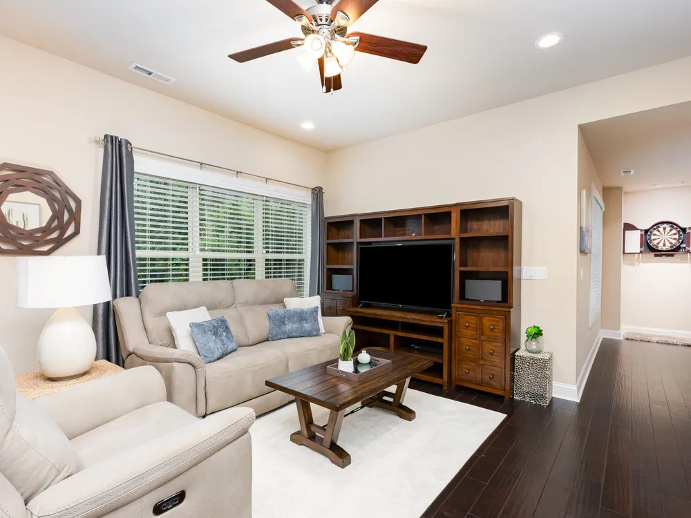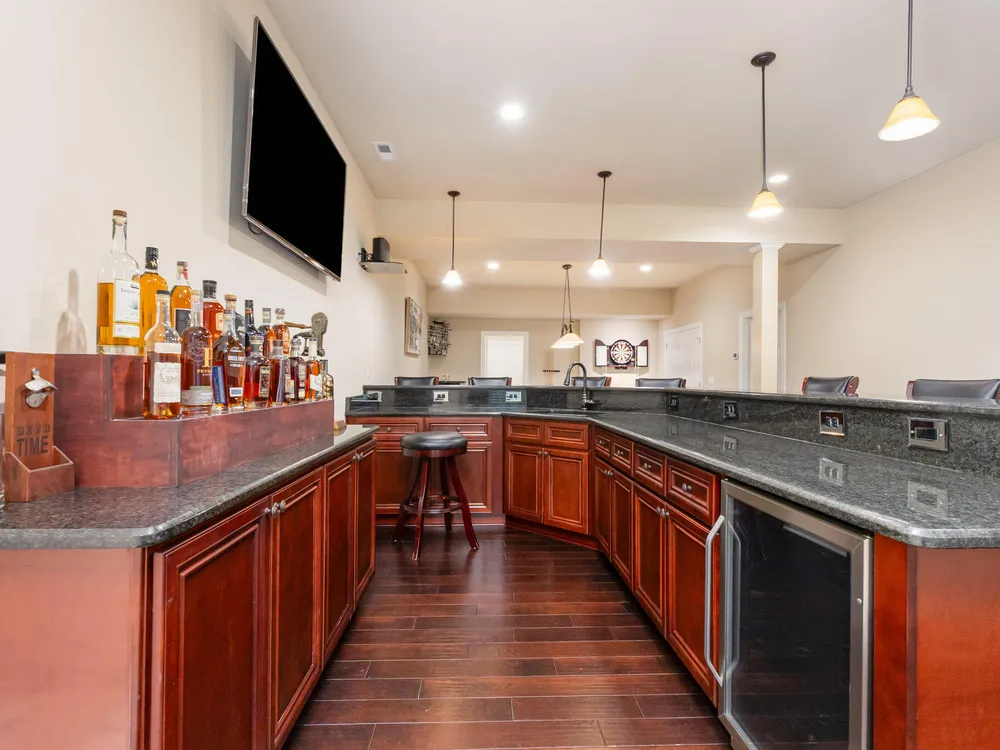 Welcome to this beautiful ranch-style home with a full finished basement in the highly desirable Brier Creek Country Club. Designed with both comfort and style in mind, this home offers the perfect combination of open living, private retreats, and exceptional entertaining spaces. The main floor features a spacious primary suite, a secondary bedroom with its own full bath, and a dedicated first-floor office. Hardwood floors flow throughout the open floor plan, connecting the inviting living areas to the gourmet kitchen. Step outside to enjoy a flat, private backyard with wonderful outdoor living space—perfect for gatherings or peaceful relaxation. The finished basement is an entertainer's dream, offering a large living area, bar, pool/game room, office space, and a full bath. Movie nights come alive in the state-of-the-art theater room, complete with high-end equipment for the ultimate cinematic experience. Living in Brier Creek Country Club means enjoying optional resort-style amenities, including three pools with a slide and grill, on-site dining, and year-round social events. Additional membership levels also offer access to tennis, pickleball, fitness, and golf. All of this is just minutes from shopping and dining at Brier Creek Commons, as well as convenient to RDU Airport and RTP. This home truly combines elegance, convenience, and a lifestyle second to none—schedule your private showing today!