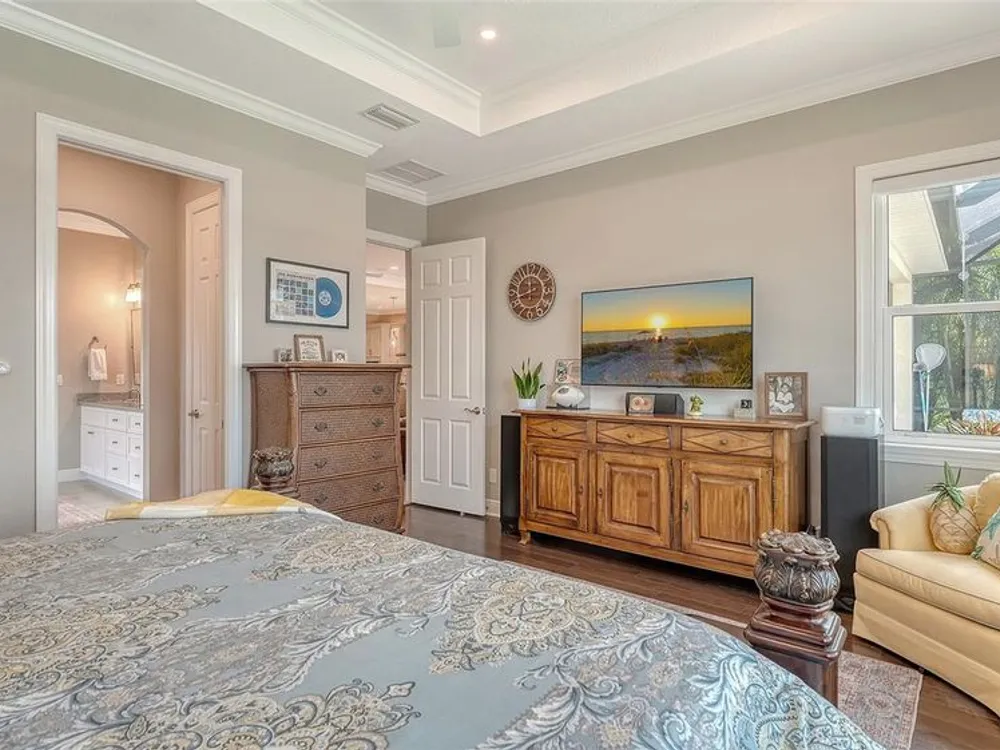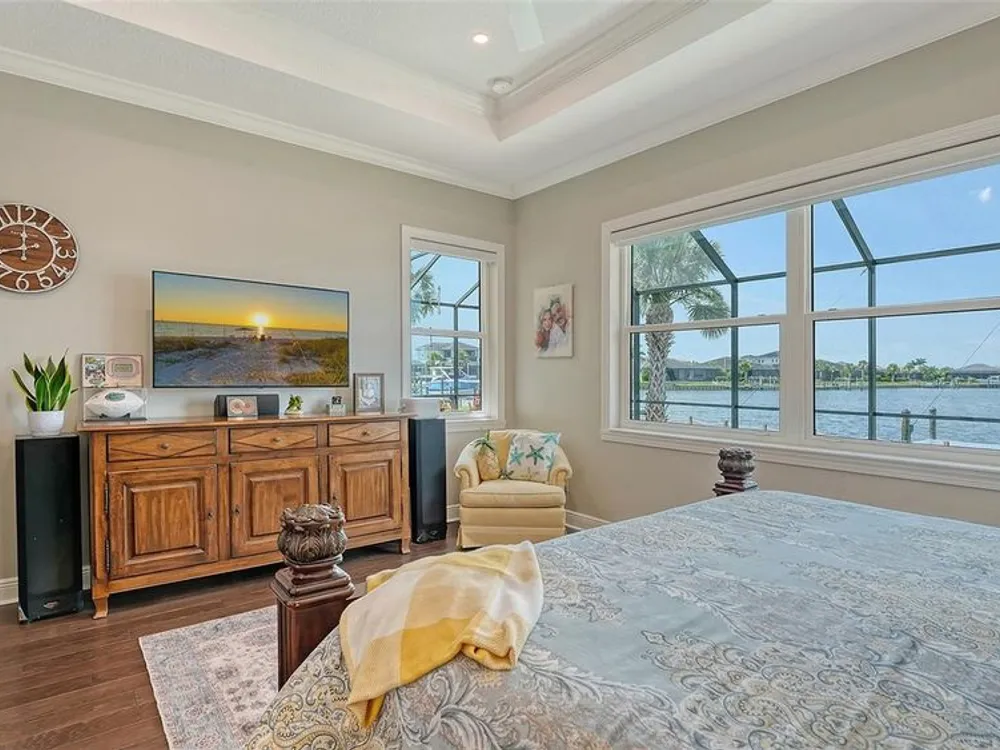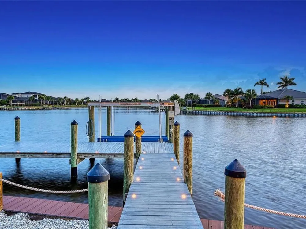 Live where others vacation in this boater’s paradise located in the vibrant, dog-friendly, and young-at-heart gated community of Tidewater Preserve. This 4-bed, 2.5-bath home includes your own private dock with a 10,000 lb lift, power, water, and dock path lights for evening fun under stunning sunsets. With direct access to the Manatee River, you're just minutes from Tampa Bay, sandbars, islands, and over 7 waterfront restaurants—perfect for dock-and-dine adventures. Inside, enjoy breathtaking water views from the kitchen, great room, and owner’s suite. The open-concept layout is ideal for entertaining, featuring a dream kitchen with quartz countertops, a gas cooktop, stainless steel appliances, soft-close wood cabinets, and an oversized farmhouse sink. Designer touches like crown molding, custom wood plantation shutters, shiplap, wainscoting, built-ins, and dimmable lighting add warmth and style throughout. This home is storm-ready with PGT impact glass, blackout Hunter Douglas remote blinds in the master, and a 22.5 KW Generac whole-home generator. Step outside to your heated saltwater pool and spa—an oasis for relaxing or hosting after a day on the water. Tidewater’s resort-style amenities include tennis courts, fitness center, walking trails, kayak launch, dog park, and a full-time social director keeping the community connected and active. Waterfront homes with this level of quality and lifestyle are rare—don’t miss your chance to live the ultimate Florida life.