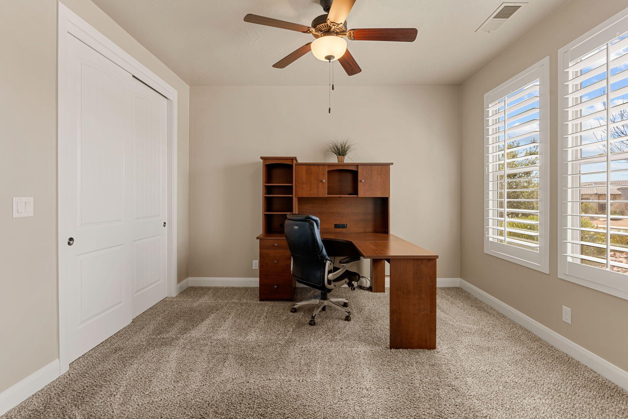 This is such a great home. If you are looking for a permanent residence or part time 2nd home, peaceful, comfortable living with pool access - come take a look. Brio offers wonderful, affordable amenities.The open layout features spacious bright living area, fireplace, and plantation shutters. Solar Panels for reduced utilities and additional back up battery system. This is an added bonus!! Concrete coating in garage and on back patio. Fruit trees, colorful and manicured yard with a variety of blooms. Brio offers indoor & outdoor pools, community center, pickleball, tennis, hot tub and fitness center. This community has a resort feel without the resort fee's.