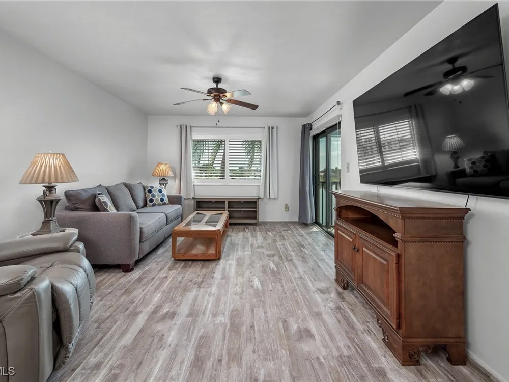 Welcome to this top floor unit where comfort meets elegance in a stunning waterfront setting. This adorable 1 bedroom, 1.5 bathroom home offers a perfect blend of modern amenities and tranquil living, making it an ideal retreat. Located in a desirable community, a community full of amenities and only 6.7 miles to Fort Myers Beach and less to the Sanibel/Captiva causeway. This property is offered FURNISHED with New LVF, Stainless Steel Appliances, lovely Lanai with Impact resistant Sliders and Electric Fabric Hurricane Shutters that open with a gorgeous lake view. The Building has a NEW ROOF, (all assessments paid) This Condo is located on the 3rd floor, with an elevator just steps away. You will love the way this condo flows. This community offers access to fantastic amenities, including a Resort Style Community Pool and Spa, Tennis, Pickleball and nearby shopping and dining options. This is an ideal 2nd Home, Retirement property and community. Fantastic rental income if you ever want to rent it out. Schedule your appt today!