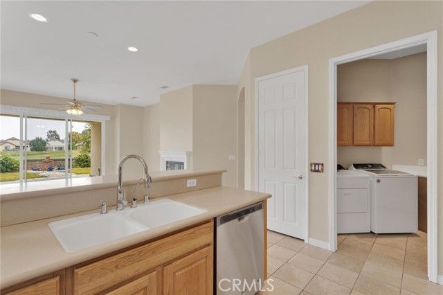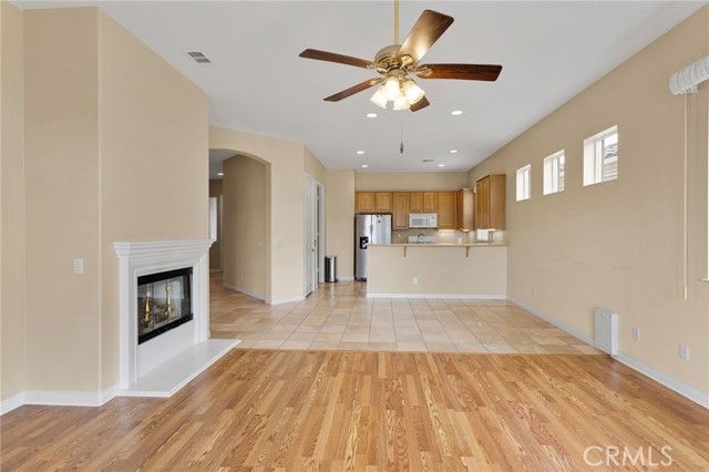 Welcome to the highly sought after 55+ community of Solera at Jess Ranch. This home features an open concept kitchen, eating area and living room with natural light, high ceilings and a cozy fireplace. As you relax in your living room, you can see the beautiful Ashwood Golf Course through the full wall sliding glass doors. As you step outside, you have a lovely covered and wind protected patio. The low maintenance yard features a fountain, nectarine tree, roses and more plants. Inside, you will find the guest room near the front door. There is a large walk in closet and direct access to the main bathroom with its own door. Down the hall, you will see the bonus room with double doors that makes a great office or den. At the end of the hall is the master suite with an expansive walk in closet with a lot of space for storage. The master bath has a spa like feel with double sinks, a soaking tub and a separate glass shower. As you move toward the garage, you find the laundry room (washer & dryer not included). The two car garage has a space to the side for a golf cart or storage. The community is gated with 24 hour roaming security. There are many activities within the community offering the opportunity for an active lifestyle or making new friends. The clubhouses and property offer pools (indoor & outdoor), spa, tennis, pickleball, bocce ball, fitness center, walking trails, library, table tennis, and more. Ample shopping is nearby with Jess Ranch Marketplace just around the corner featuring Target, Best Buy, Staples, movie theaters, restaurants & more. This area is expanding rapidly. Whether you are looking for quiet solitude or a place to be active and meet people, you will find it here!