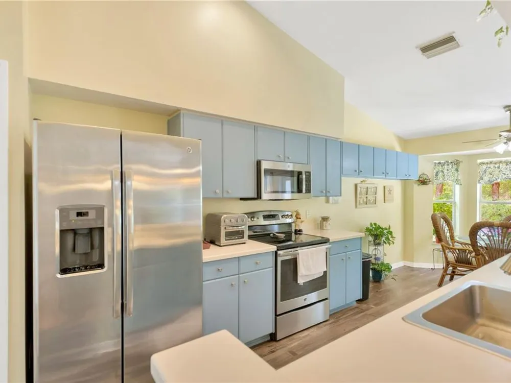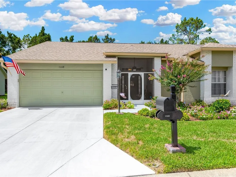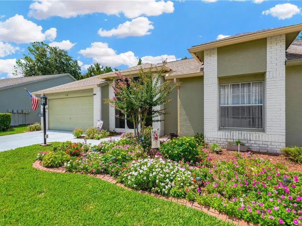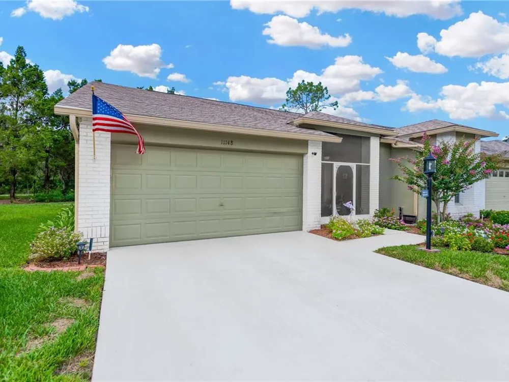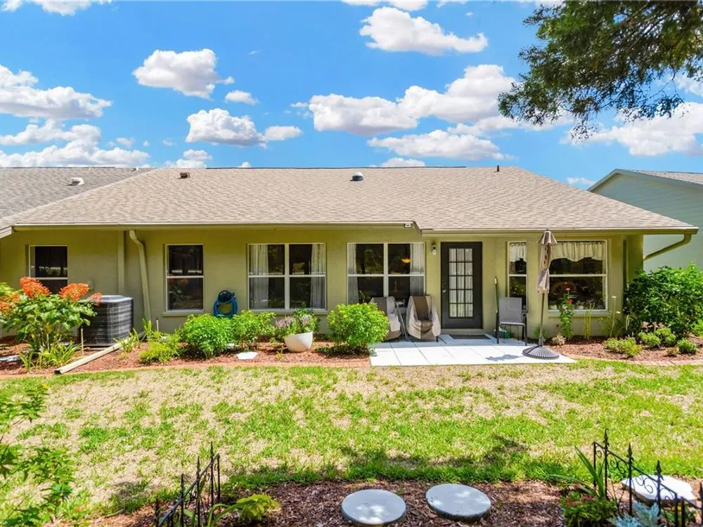 ASSUMABLE LOAN AT 3.75 INTEREST RATE (You don’t need to be a veteran!) & Buyer can receive up to $7000 CREDIT towards closing costs with our preferred lender if qualified. FANTASTIC NEW PRICE & BRAND NEW FLOORING! Nestled within a tranquil 55+ community, this exquisite villa offers an unparalleled blend of comfort, elegance, and convenience. Boasting 2 bedrooms and 2 baths across a spacious 1819 square feet, this end unit residence provides an ideal retreat for those seeking a peaceful yet vibrant lifestyle. As you step inside, you are greeted by cathedral ceilings that enhance the sense of openness and grandeur. The well-appointed kitchen features a charming dinette, perfect for enjoying casual meals or morning coffee. Outside, a front porch welcomes you to relax and unwind, while a back patio overlooks a meticulously maintained butterfly garden, creating a serene oasis for outdoor gatherings or quiet contemplation. The villa also includes a coveted 2 car garage, ensuring ample space for vehicles and storage. This community offers countless amenities tailored for active adults, including a clubhouse with pool, fitness center, walking trails, tennis courts, restaurant, pickleball and more providing opportunities for recreation, socializing, and relaxation. Whether you are downsizing, seeking a retirement haven, or looking for a serene retreat, this villa offers a rare opportunity to enjoy a active lifestyle in a highly desirable location. Don’t miss out on making this dream villa your new home. Schedule your private tour today and experience the charm and elegance firsthand!