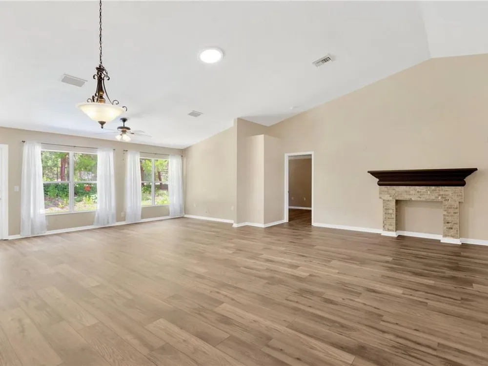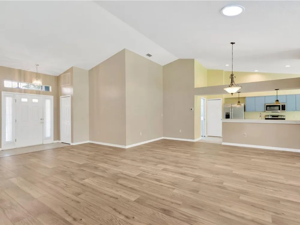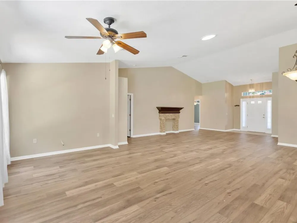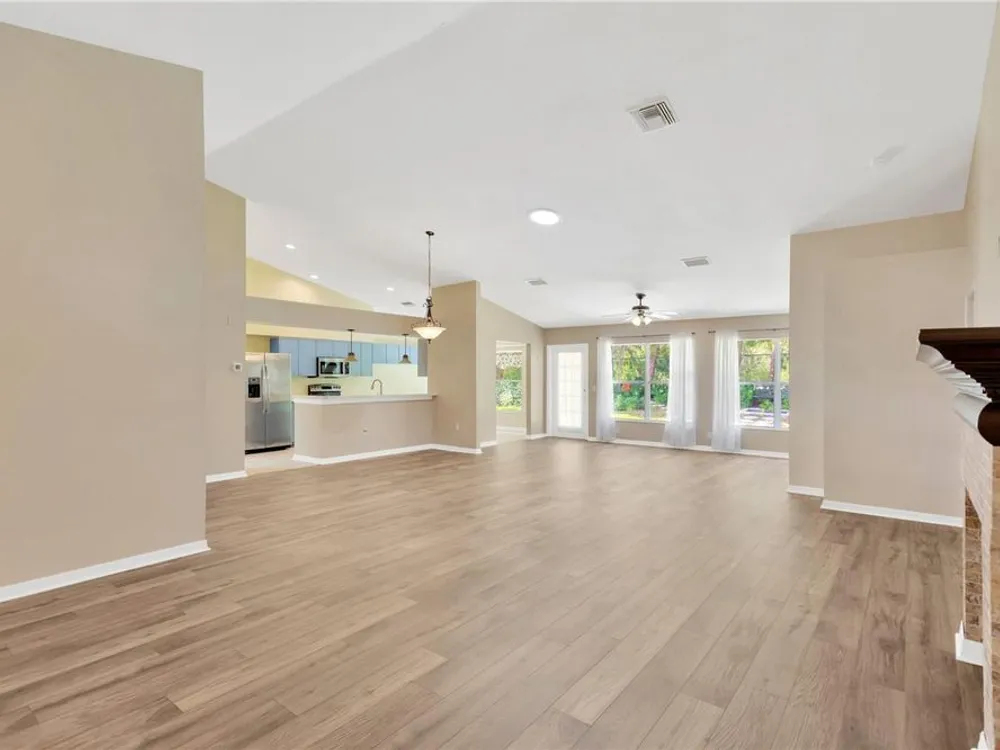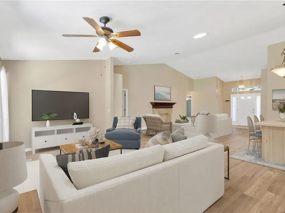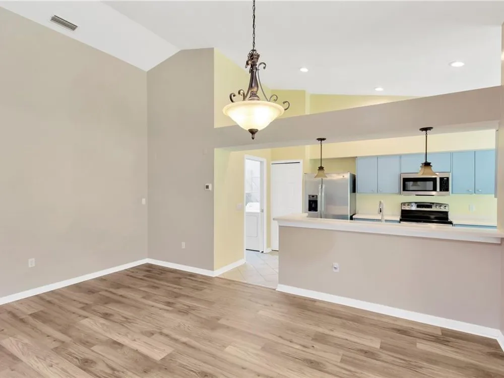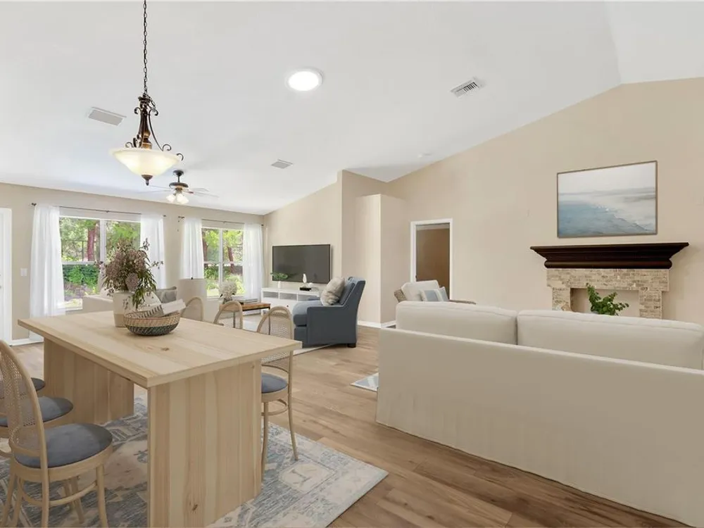 - Cathedral Ceiling(s), Ceiling Fan(s), Eat-in Kitchen, Kitchen/Family Room Combo, Living/Dining Room, Open Floorplan, Main Level Primary, Split Bedrooms, Thermostat, Vaulted Ceiling(s), Walk-In Closet(s)