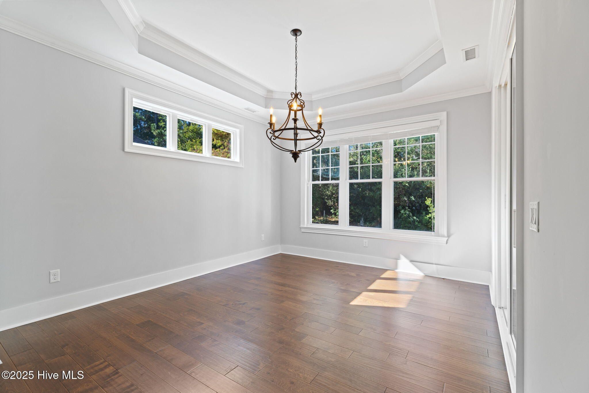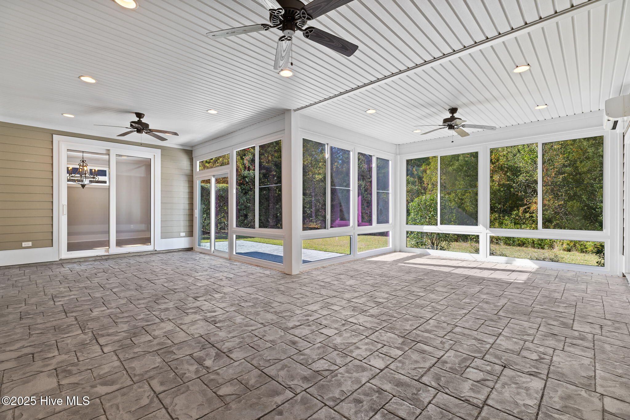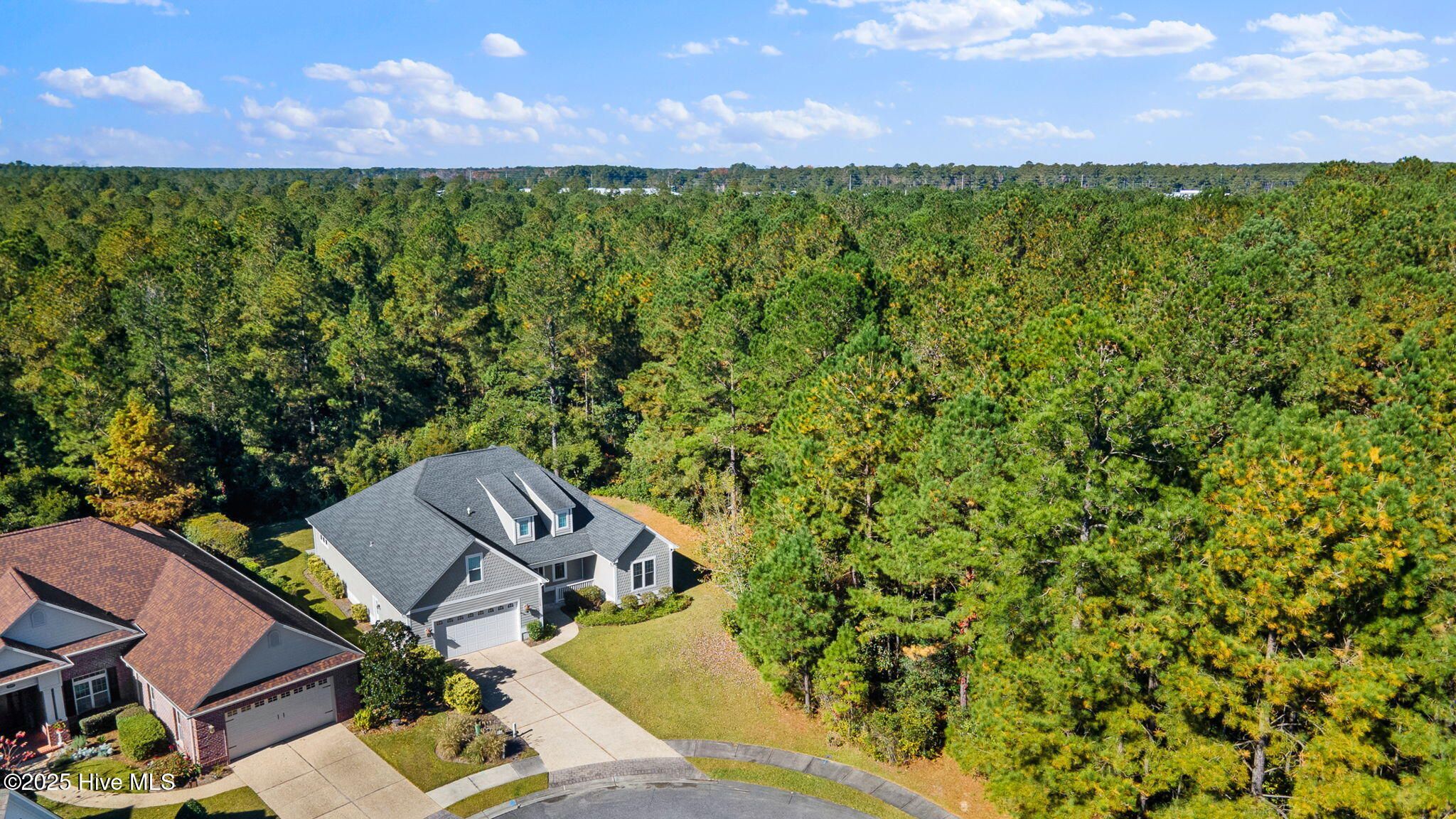 Discover exceptional privacy and coastal-casual elegance in this 3 bedroom, 2 bathroom, 2,892 sq ft home located in the desirable Evangeline neighborhood of Brunswick Forest. Tucked at the end of a quiet cul-de-sac and backing up to serene natural surroundings, this home offers the perfect blend of tranquility and convenience. A welcoming large covered front porch sets the tone for the warm, light-filled interior, enhanced by rich wood floors and an open layout. The living room features beautiful built-ins surrounding a cozy fireplace, creating an inviting centerpiece for gatherings. The gorgeous kitchen will delight any cook with its stainless steel appliances and a striking two-tiered island with generous seating. A stylish dining room with tray ceiling provides an elegant space for entertaining. Retreat to the spacious primary suite, complete with two walk-in closets and a spa-like ensuite featuring double sinks and a walk-in shower. Two additional bedrooms offer comfort and flexibility for guests, family, or hobbies. Enjoy year-round relaxation in the expansive sunroom, the ideal spot for entertaining or soaking in the coastal lifestyle. Step outside to the stone patio, which extends your living space and overlooks the peaceful natural backdrop. With its premier location, thoughtful design, and abundant privacy, this Evangeline gem is the perfect place to call home.