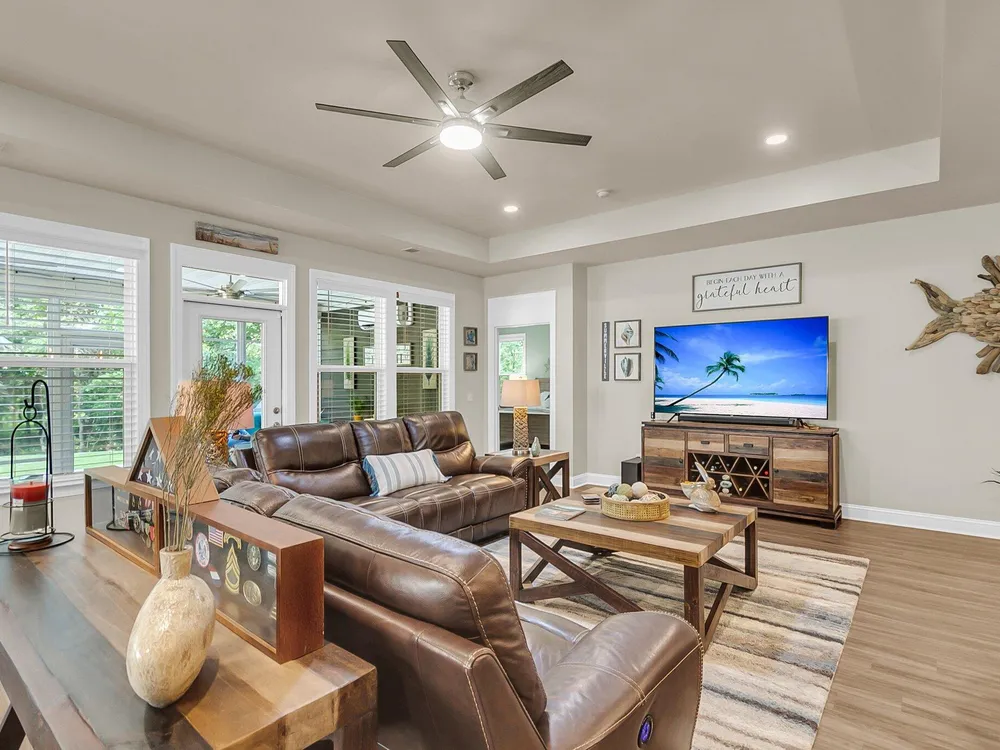 Welcome to your dream home! This beautifully designed 3-bedroom, 3-bath residence with a versatile office offers elegant living in one of the area's most sought-after 55+ resort-style communities. LVP flooring throughout main living areas, office, and 2nd & 3rd bedrooms. The gourmet kitchen boasts a gas cooktop, stainless-steel appliances, wall oven, hidden-control dishwasher, and large pantry. The primary suite features private backyard views, LVP floors, a large walk-in closet, and ensuite with dual vanities and a glass shower. Step into comfort and style with a Sunspace-enclosed sunroom featuring epoxy flooring and a dedicated mini-split A/C unit, overlooking a protected conservancy lot--a serene retreat right in your backyard. Additional features include a whole-house Generac generator, natural gas grill hookup, gutters, upgraded lighting and ceiling fans, and laundry room with utility sink and built-in cabinetry and a 3-car garage with plenty of cabinets. Enjoy resort-style living with Zero entry adult pool, clubhouse, fitness center, tennis, pickleball, bocce and full-time lifestyle director. Set yourself FREE with the award-winning Cresswind 55+ lifestyle!
