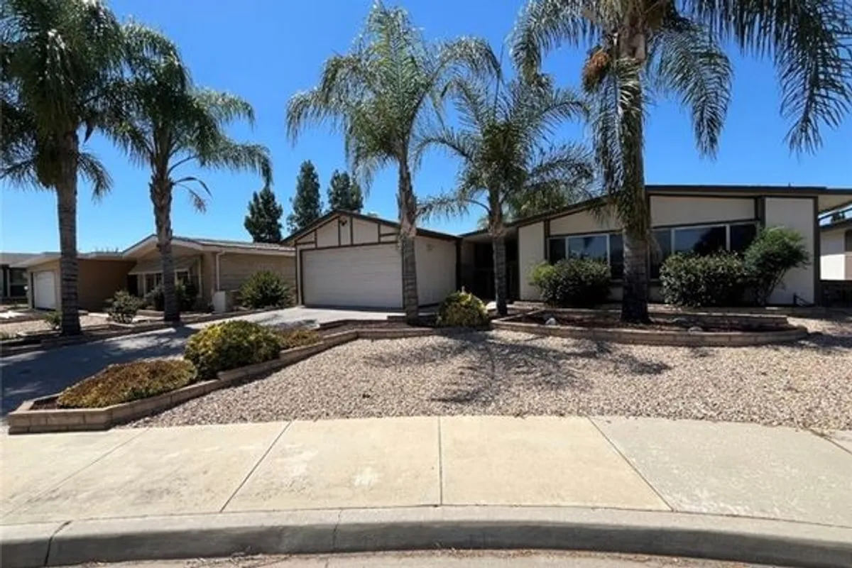 Seven Hills 55+ Community of Hemet, California. This 2040 sq ft residence offers two spacious bedrooms and two bathrooms, providing a comfortable and inviting living space. Seven Hills is a vibrant senior community centered around a public 18-hole golf course, offering residents a serene and active lifestyle. The community's tranquil environment and well-maintained surroundings make it a sought-after destination for those seeking both relaxation and recreation. The family room features built in bar area. The exterior offers desert landscaping for easy maintenance, a private backyard. A detached 2-car garage with an additional room/storage—perfect for a workshop or hobby space. RV parking area is conveniently located nearby.