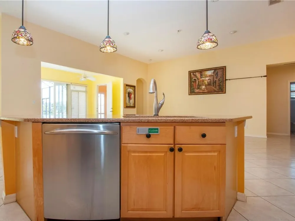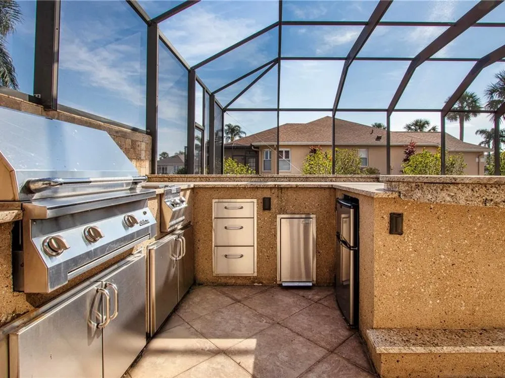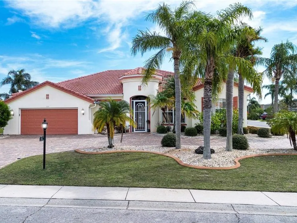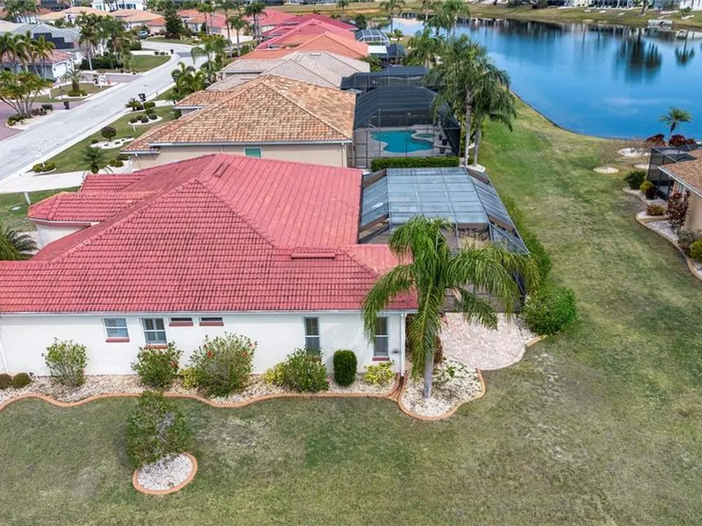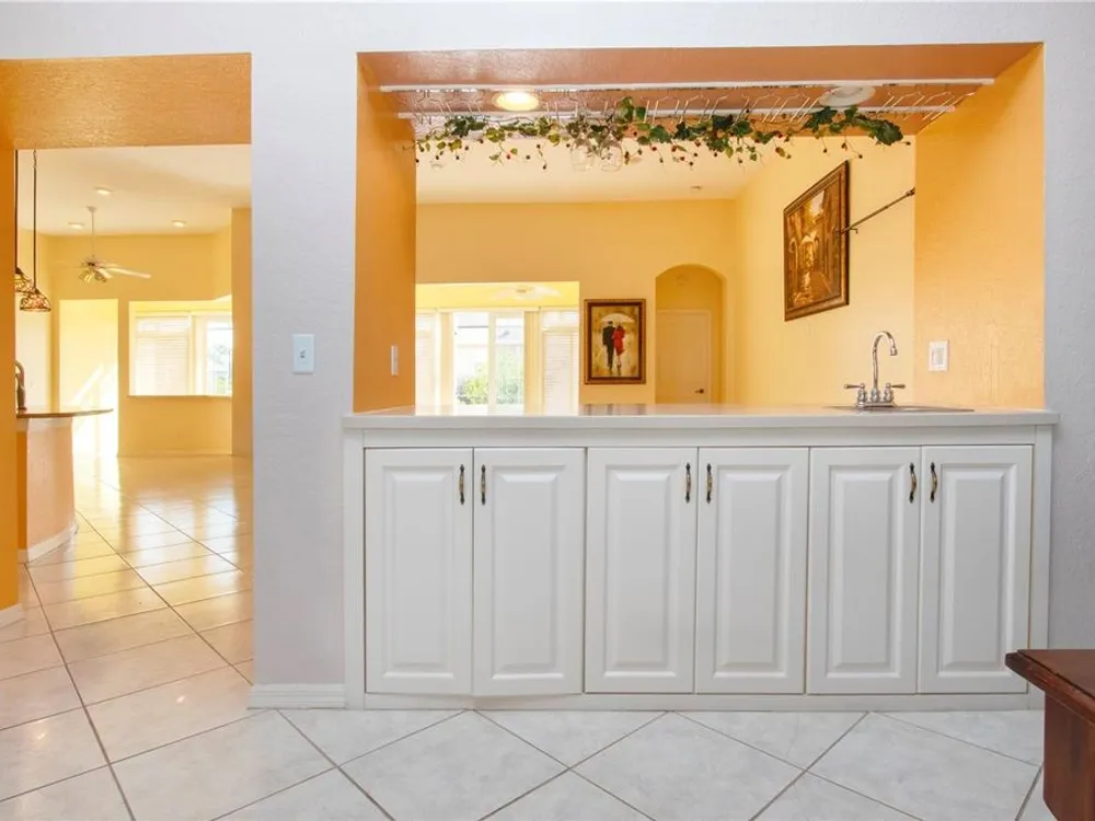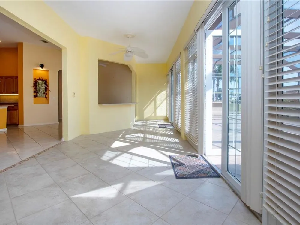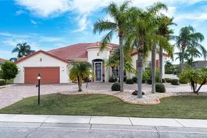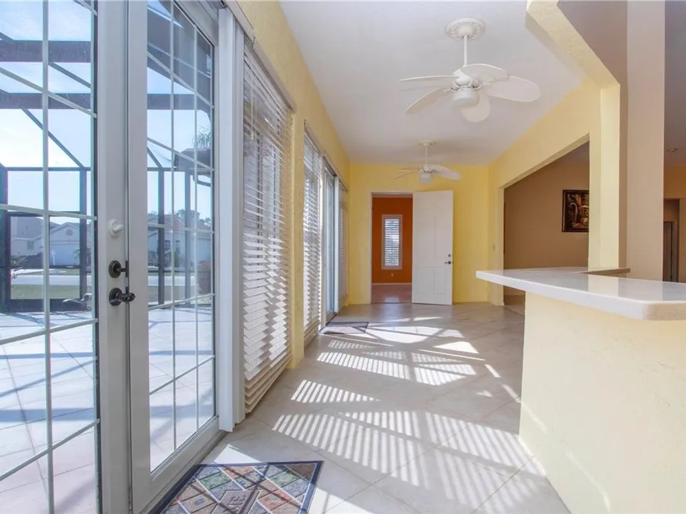 One or more photo(s) has been virtually staged. Discover the Florida lifestyle in this 2,500 sq. ft. home with 3 bedrooms, 3 bathrooms, a 2-car garage, and a 43x27 screened lanai with an outdoor kitchen, all on over a quarter-acre corner lot with a water view. Located in a 55-plus community, this property offers great value in Sun City Center. This Mediterranean-style home features mature landscaping, a circular paver driveway, tile roof, and hurricane-rated windows. Inside, you'll find a formal dining room, wet bar, tray ceilings, Tiffany lighting, and plantation shutters throughout. The open floor plan includes a split bedroom layout and a chef's kitchen with stainless steel appliances, granite countertops, tile back splash with a granite island that has a built in sink and breakfast bar and ample cabinet space. The enclosed Florida room overlooks the large screened lanai, that’s has a outdoor kitchen and bar perfect for entertaining. The master bedroom has tray ceilings, plantation shutters, dual walk-in closets, dual stone vanities, a soaking tub, and a separate shower and water closet. The second bedroom also has plantation shutters is near a full guest bathroom, and the third bedroom includes custom shelving and a desk, suitable for an office or craft room ans also complete with plantation shutters, with another full bathroom nearby. The laundry room features custom cabinets, shelving, and a utility sink. The home also has an irrigation and water softener system. The HOA is reasonable, and the community offers a pool, recreation facility, and restaurant with numerous social clubs to get plugged into. Close to shopping,Hosptals and VA clinic, Easy cummute from I-75 and I-275 to Gulf Beaches and even Orlando and Disney World. Don't miss this opportunity to retire in style. Call for a private showing today!
