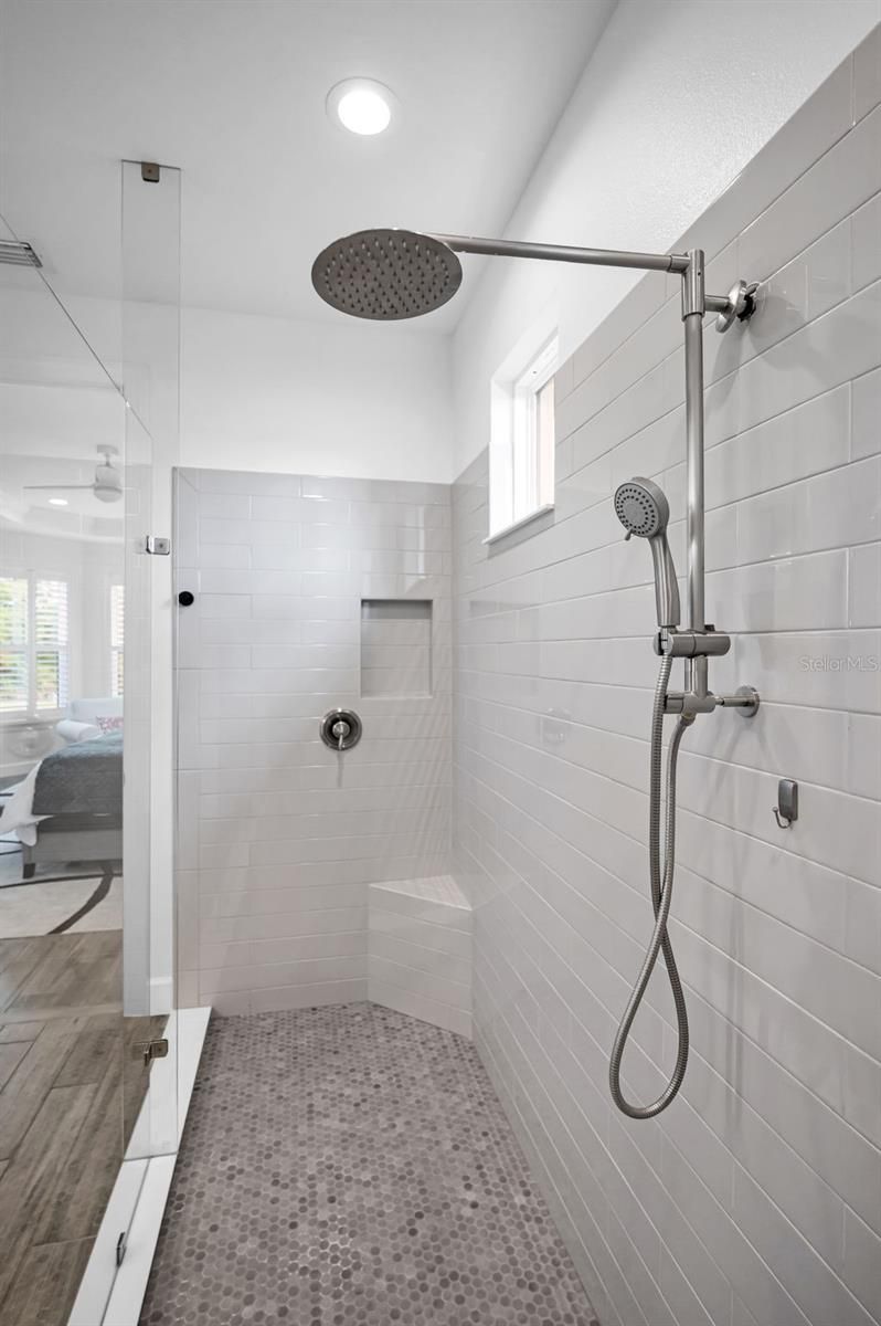 - Ceiling Fan(s), Eat-in Kitchen, High Ceilings, Kitchen/Family Room Combo, Living/Dining Room, Open Floorplan, Main Level Primary, Split Bedrooms, Tray Ceiling(s), Walk-In Closet(s)