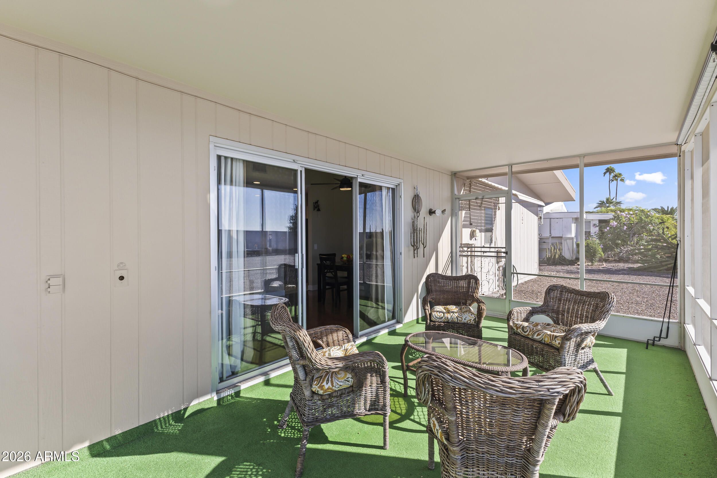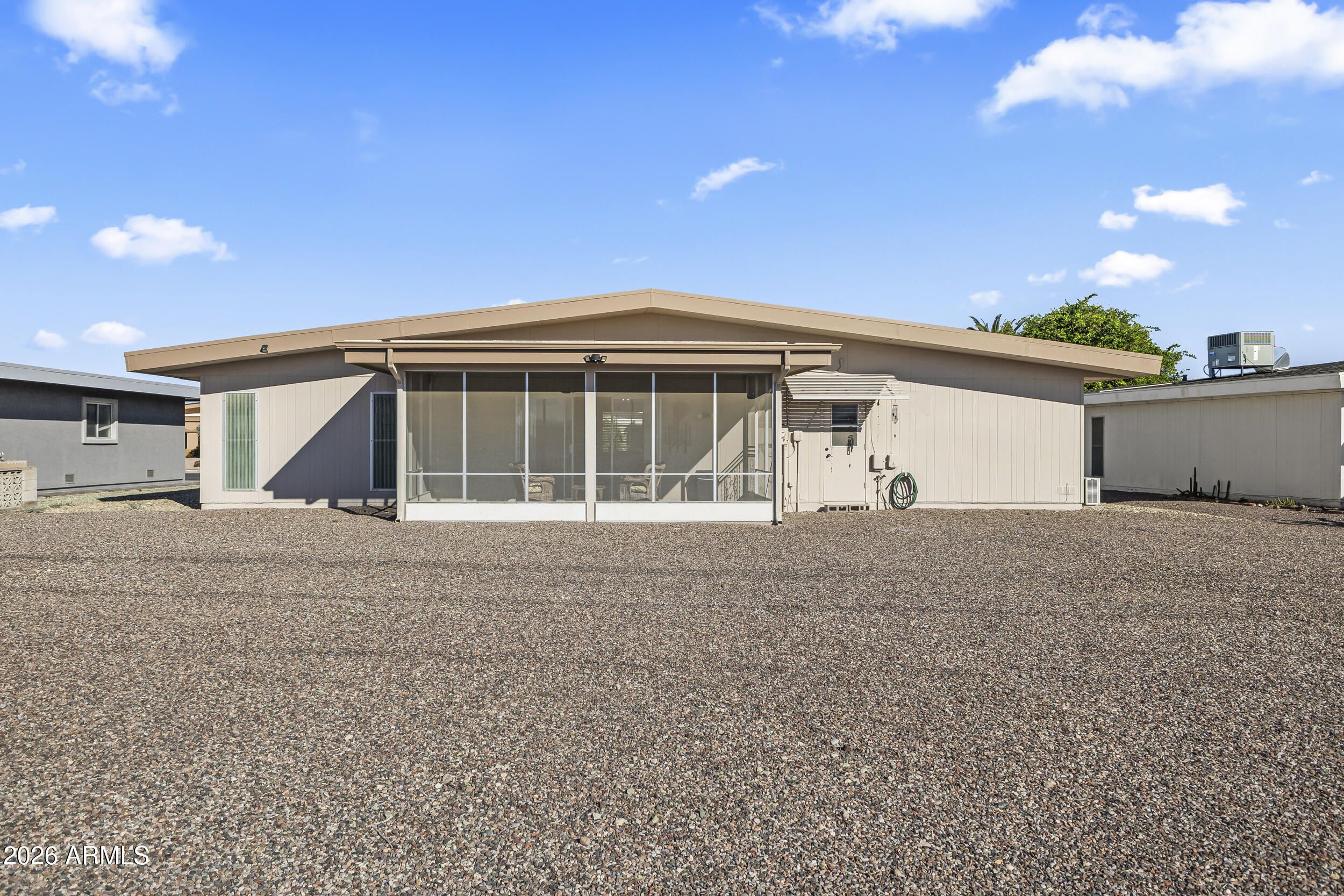Beautiful, spacious, updated home with is the perfect blend of comfort and style. The open-concept kitchen flows seamlessly into the living room, making it ideal for entertaining. Enjoy the newer cabinetry, granite countertops, tile backsplash, stainless steel appliances, and a convenient breakfast bar. A separate family room offers a quiet retreat--perfect for relaxing or enjoying your favorite hobbies. A/C unit new in 2020, and a mini-split in the family room added in 2022. Newer exterior and interior paint, Baseboards, carpet, lighting, and ceiling fans. The popcorn ceilings have been completely removed, giving the home a clean, modern look. Enjoy the screened-in patio and designing your outdoor space. The PVC pipe and sprinkler timer is already installed. All furnishings available Move-in ready. Don't miss this opportunity to own a beautifully upgraded home in one of Arizona's most vibrant active adult communities! You'll enjoy access to golf courses, recreation centers, pools, fitness facilities, hobby clubs, and a full calendar of social activities. The Owner is an Arizona-licensed real estate agent.