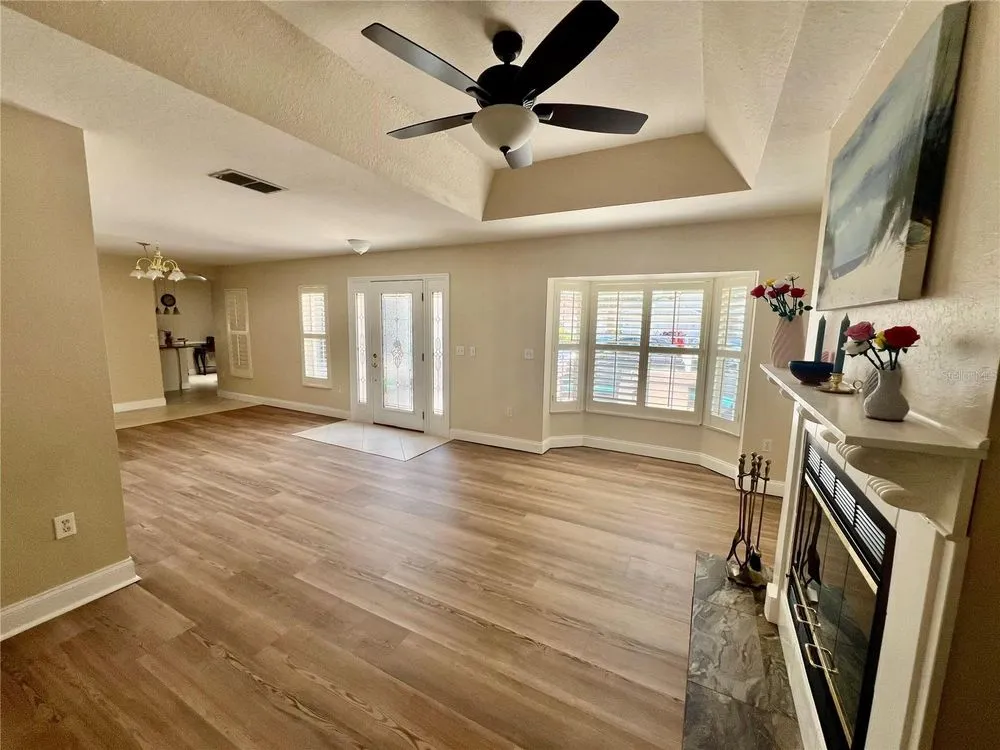 Welcome to this beautifully maintained 2-bedroom, 2-bathroom home located in the highly desirable Fairway Oaks neighborhood of Oak Run Country Club. The home features an updated kitchen and bathrooms with elegant granite countertops, blending both style and functionality. The spacious living area includes a cozy fireplace, perfect for relaxing evenings, and flows seamlessly into an enclosed lanai with tiled floors and windows, ideal for enjoying the Florida lifestyle year-round. Additional features include a 2-car garage, an irrigation system, and peace of mind with a 2013 HVAC and 2015 roof. Lawn maintenance is included in the service fee for added convenience. Fairway Oaks offers a quiet and attractive setting within one of Oak Run's most sought-after 55+ communities, providing access to golf, pools, clubhouse activities, and more. Don't miss this opportunity to own a move-in ready home in a prime location!