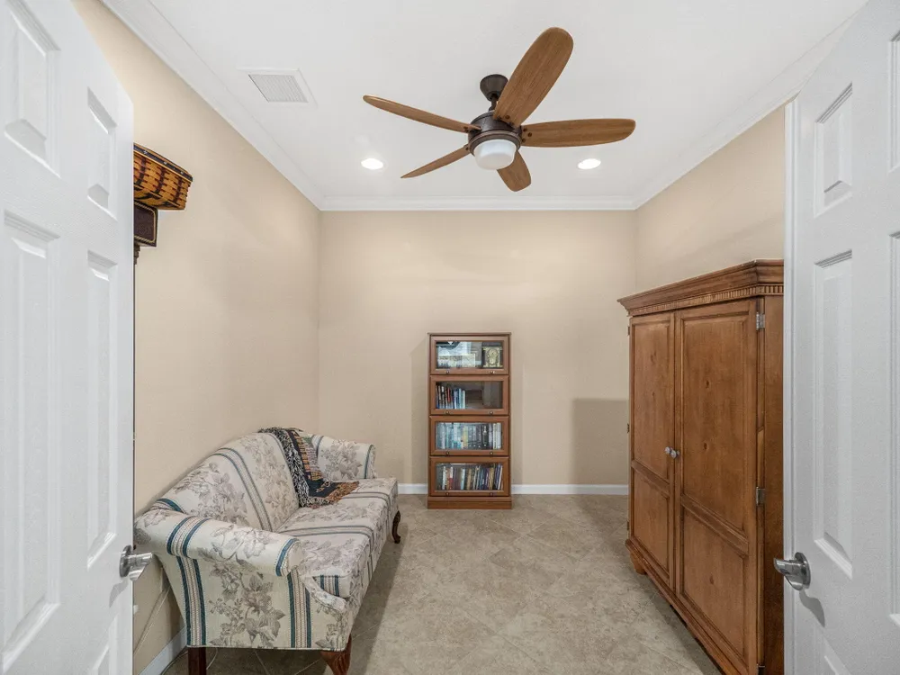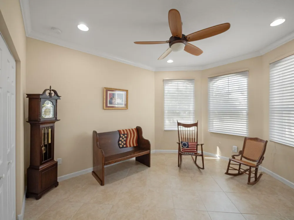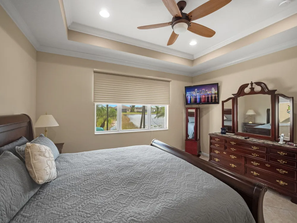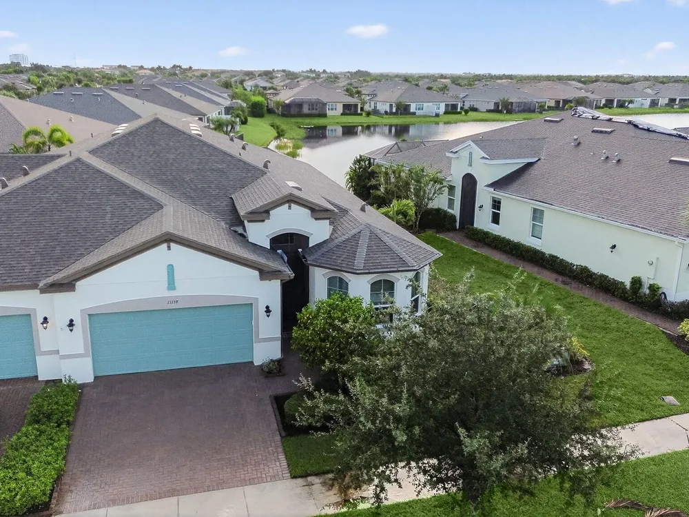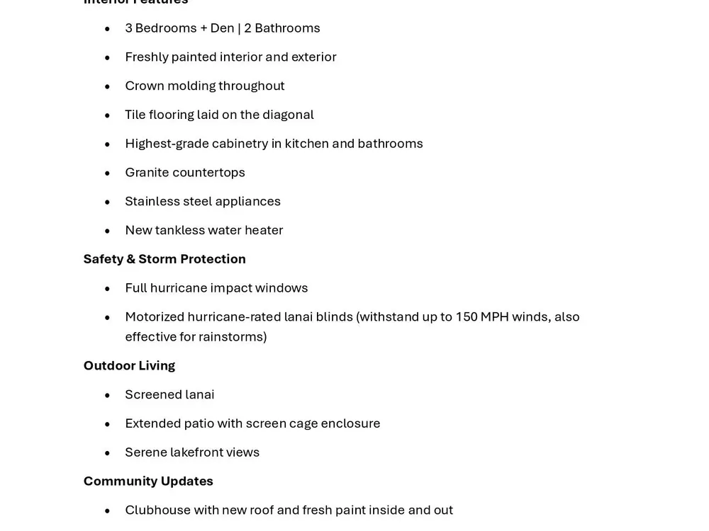 Welcome to LakePark at Tradition. This 3-bedroom villa with a den and 2 bathrooms has been thoughtfully maintained and recently updated. Freshly painted exterior! Inside you'll find crown molding and tile flooring set on the diagonal, which give the home a bright, cohesive, and elevated feel. The kitchen and bathrooms are finished with the highest-grade cabinetry available, granite countertops, and stainless steel appliances, combining durability with style. A new tankless water heater adds efficiency, while hurricane impact windows throughout the home provide year-round peace of mind. The lanai is equipped with motorized hurricane-rated blinds, built to withstand winds up to 150 MPH and equally practical for heavy rainstorms.