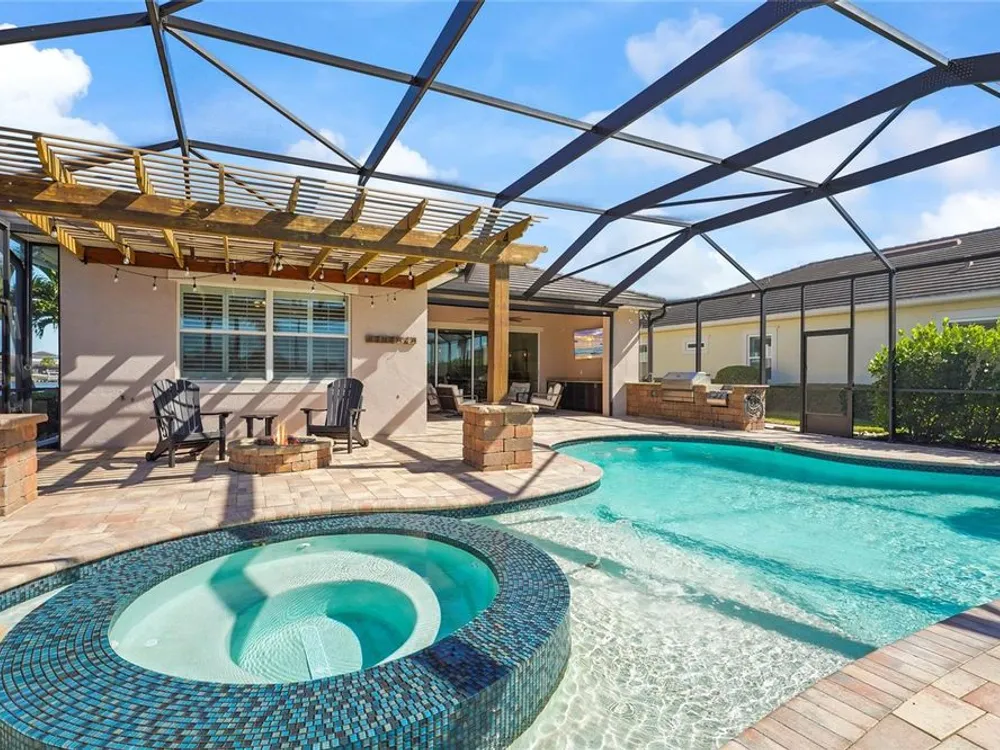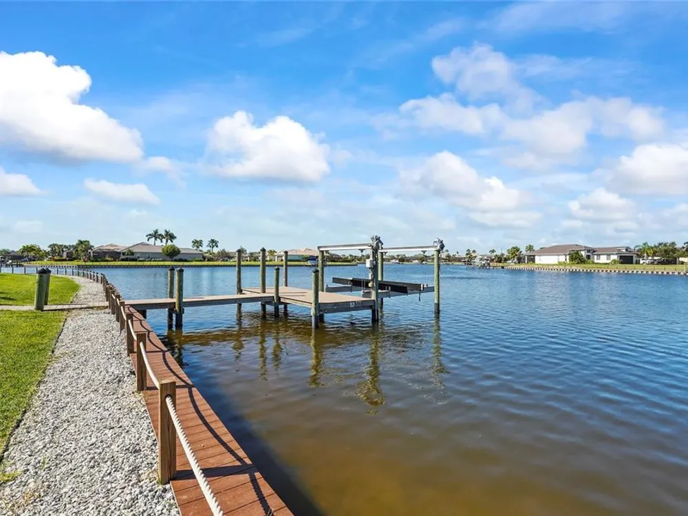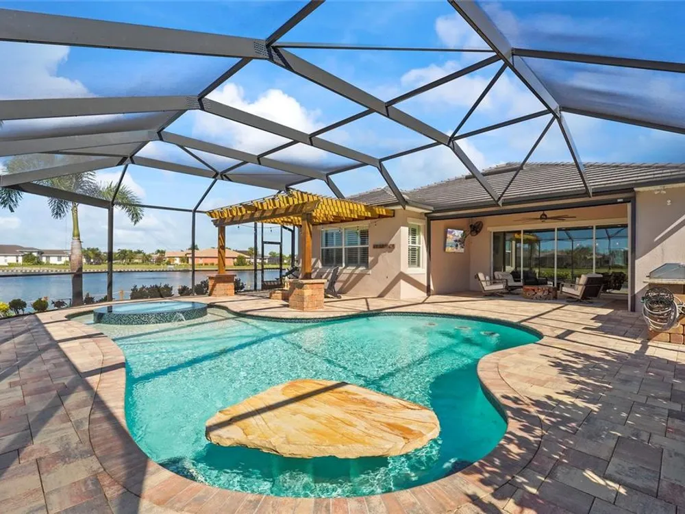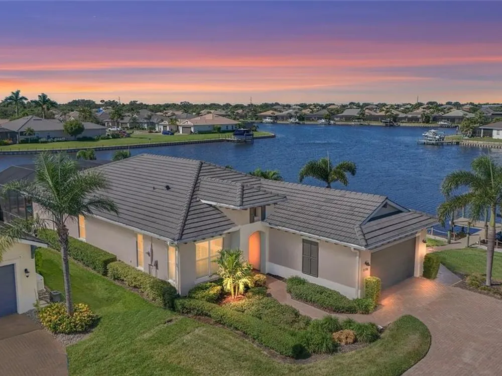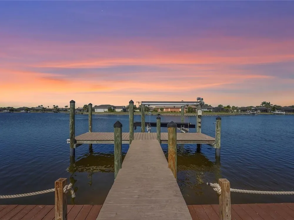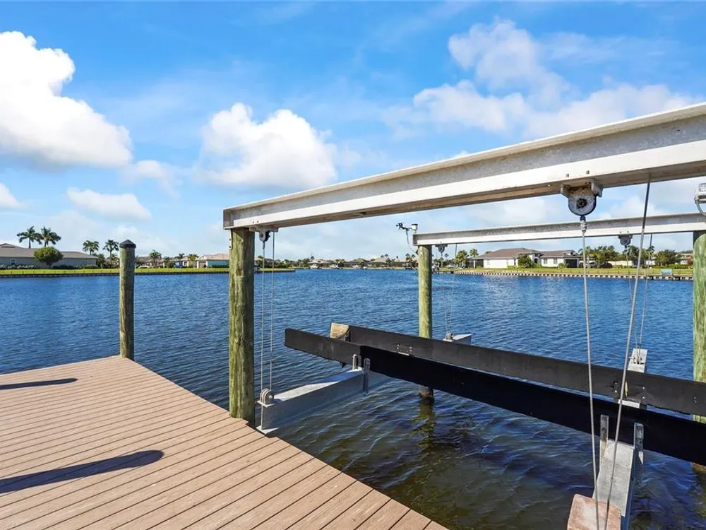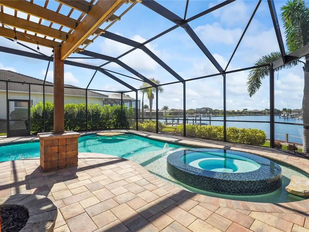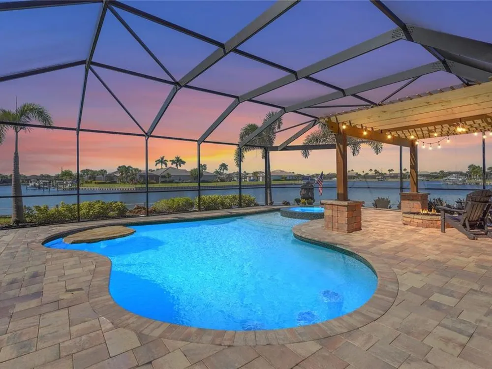 Welcome home to your waterfront paradise in the sought after community of Tidewater Preserve. This 4 bedroom, 2.5 bath pool home is situated on 180 degrees of waterfront views and breathtaking sunsets. This home is set for boaters to include a 20,000lb boat lift and additional garage storage. The recently added oversize outdoor space allows for waterfront entertaining and cooking while relaxing in your heated pool and spa or lounging by the firepit. Interior features of this natural gas community include whole house generator, ceramic tile throughout, plantation shutters throughout, custom closet and pantry, storm smart screen on lanai and more. This particular lot offers the boat lock system allowing for easy access to all waterways. Tidewater Preserve amenities include a marina, tennis courts, dog parks, state of the art fitness center, kayak launch, walking trails and community center.