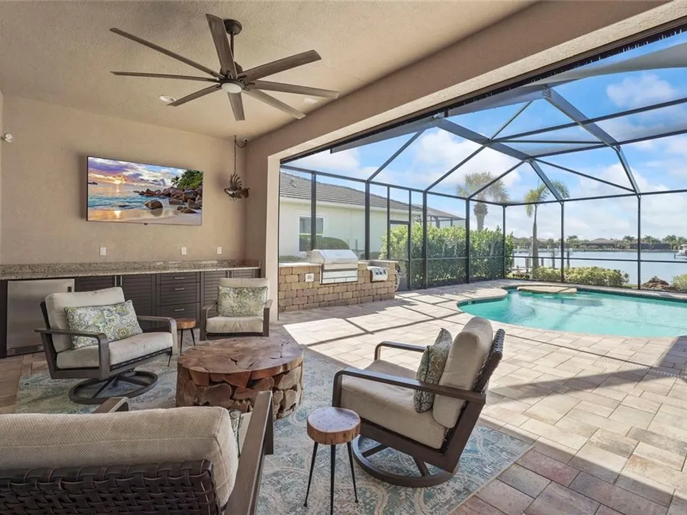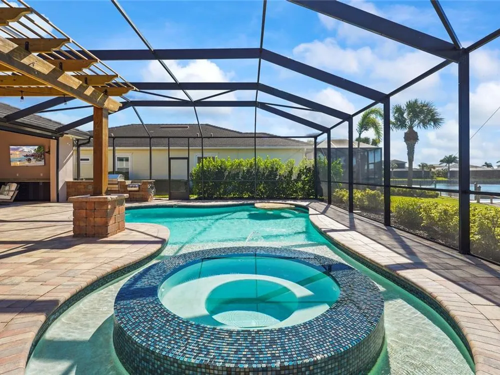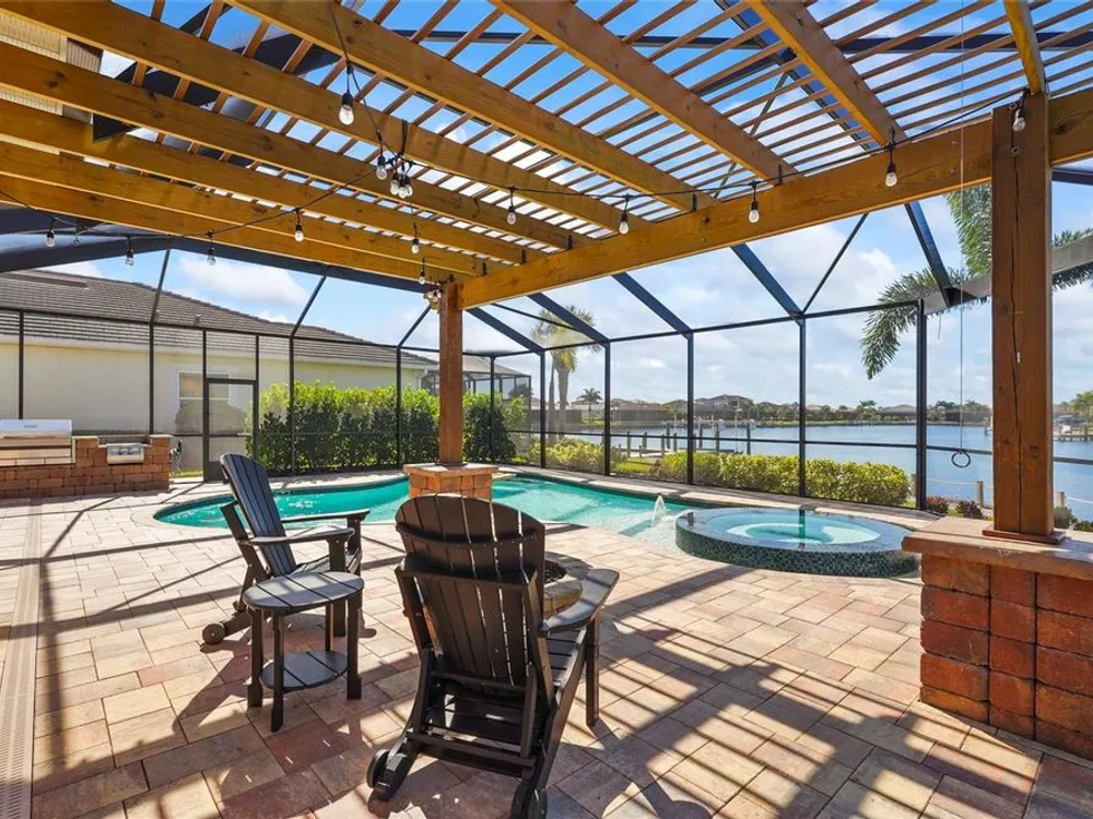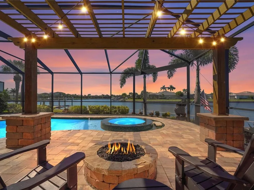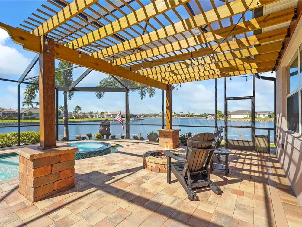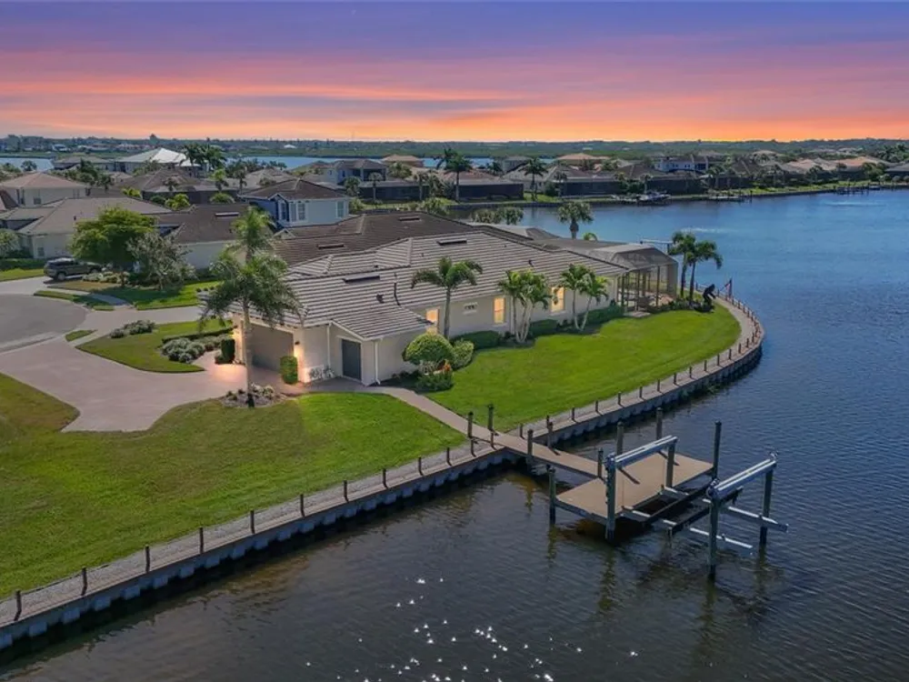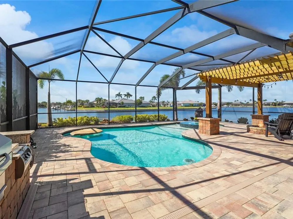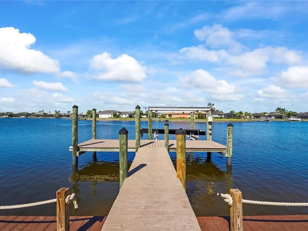 Welcome home to your waterfront paradise in the sought after community of Tidewater Preserve. This 4 bedroom, 2.5 bath pool home is situated on 180 degrees of waterfront views and breathtaking sunsets. This home is set for boaters to include a 20,000lb boat lift and additional garage storage. The recently added oversize outdoor space allows for waterfront entertaining and cooking while relaxing in your heated pool and spa or lounging by the firepit. Interior features of this natural gas community include whole house generator, ceramic tile throughout, plantation shutters throughout, custom closet and pantry, storm smart screen on lanai and more. This particular lot offers the boat lock system allowing for easy access to all waterways. Tidewater Preserve amenities include a marina, tennis courts, dog parks, state of the art fitness center, kayak launch, walking trails and community center.