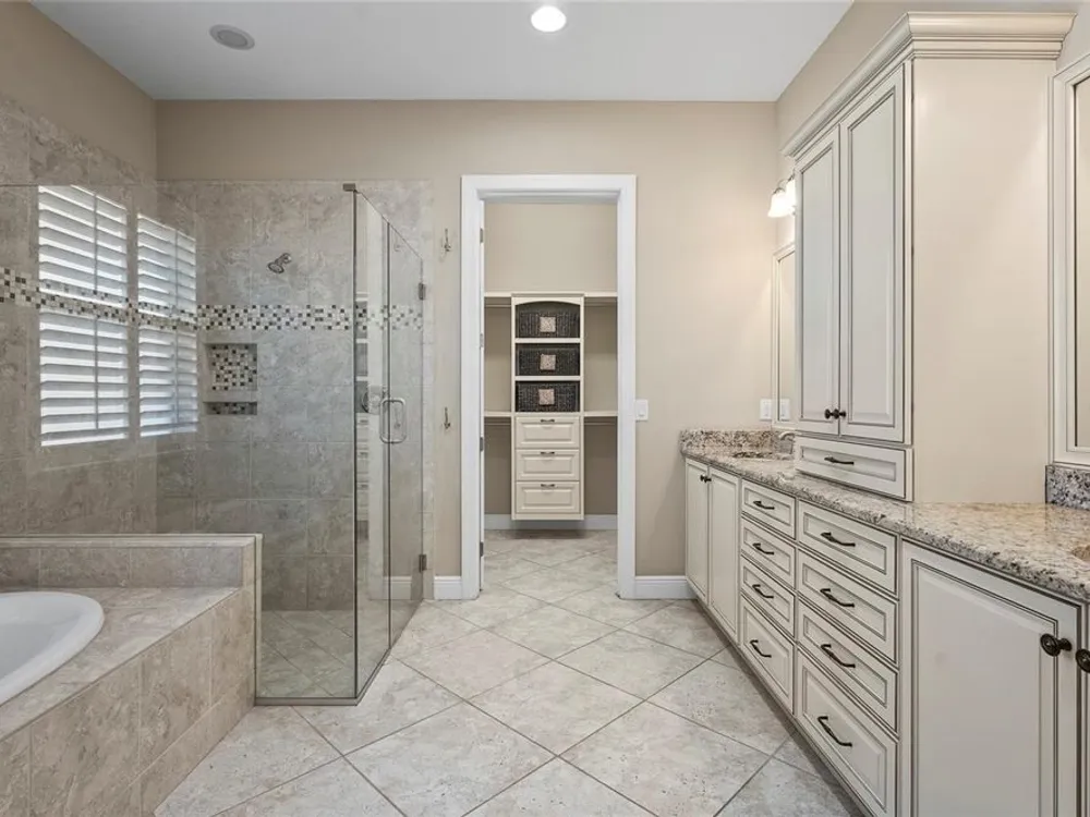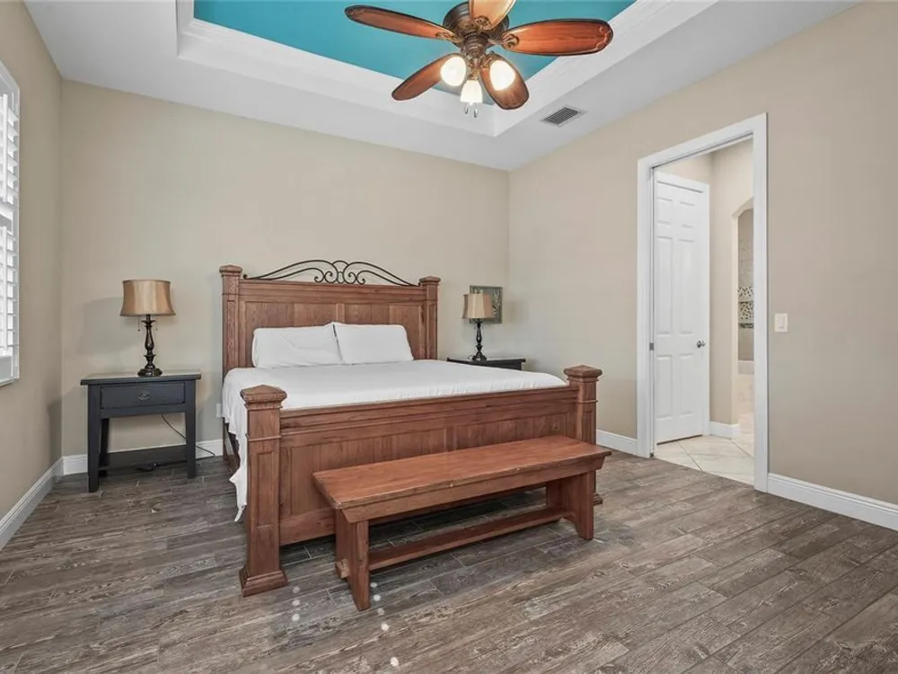 - Ceiling Fan(s), Crown Molding, High Ceilings, Open Floorplan, Solid Surface Counters, Solid-Wood Cabinets, Walk-In Closet(s)