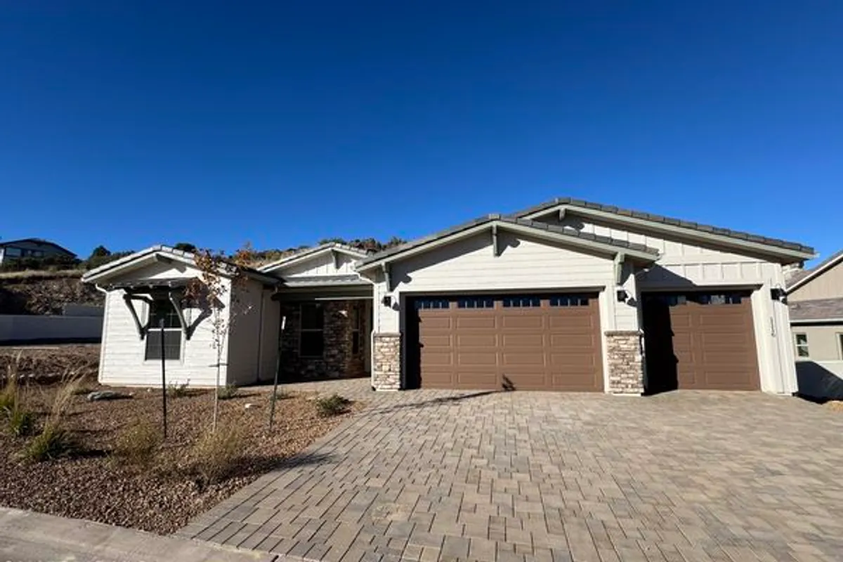 New construction just completed! Welcome to 1116 S Lakeview Drive, a stunning Mountain Modern Plan 1 residence offering 2,417 sq. ft. of thoughtful design and upscale finishes. This 3-bedroom, 2.5-bath home with a dedicated den is truly move-in ready. Interior features include elevated ceilings, designer tile in all bathrooms, luxury vinyl plank flooring throughout, and Bosch stainless steel appliances. Fireplace stone to the ceiling and 3 car attached garage. Located in the sought-after Solstice Ridge II community within Prescott Lakes, this home delivers modern living with exceptional craftsmanship in a premier location. Located within the prestigious Prescott Lakes Community, residents enjoy resort-style amenities including a clubhouse, fitness center, indoor and outdoor pools, tennis, pickleball, and more.