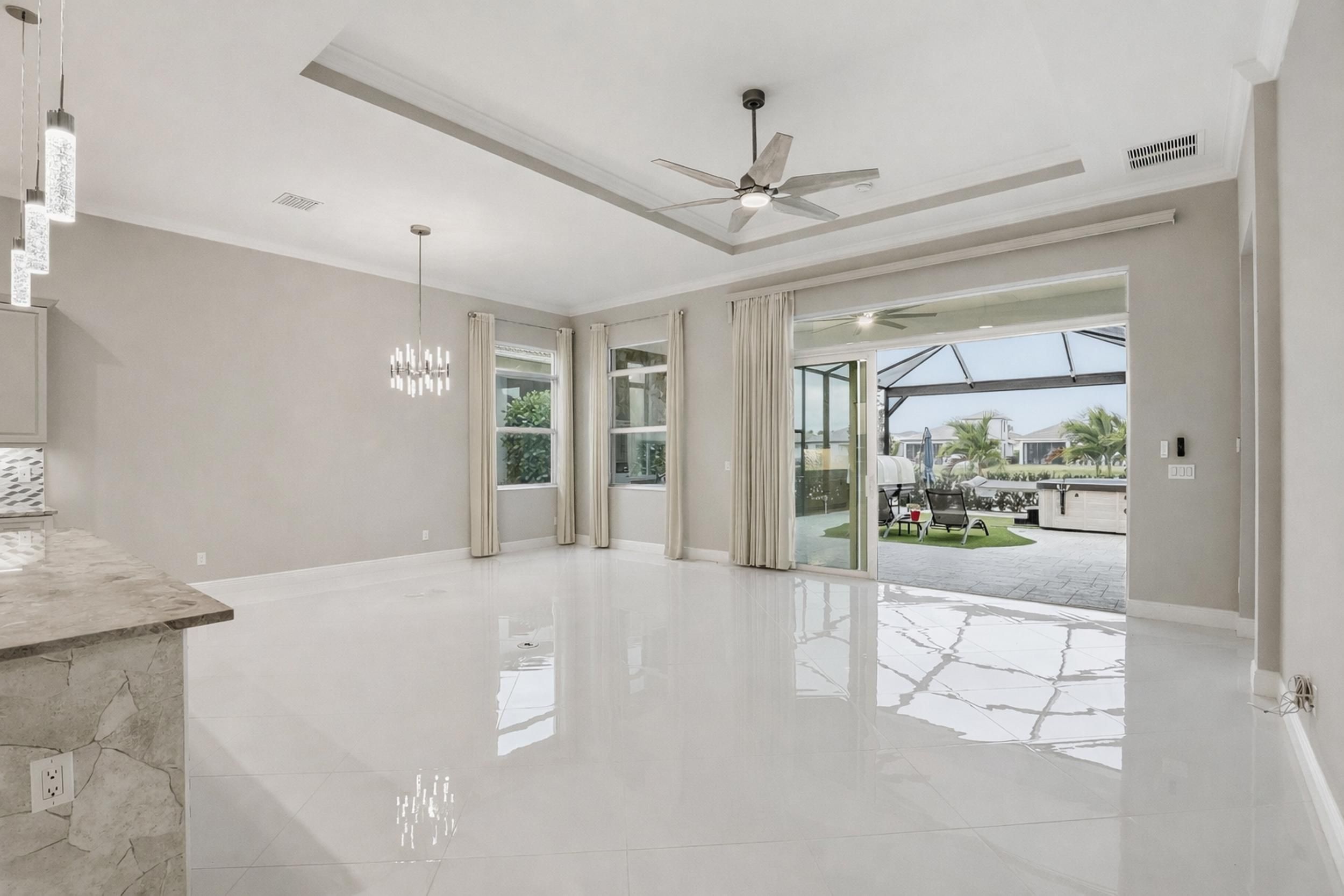 Must-see home priced to sell with $200K+ in upgrades! Modern open layout with bonus room/3rd bedroom, no carpet, and a sleek quartz kitchen with designer cabinetry. The 1,466 sq. ft. outdoor oasis is the true star with a huge screened lanai with peaceful, unobstructed lake views. Owner-added features include stamped concrete, electric shade, synthetic turf, pristine hot tub, full summer kitchen, Vegepod garden, LED lighting, TV mount, extra outlets, and hammock with umbrella. Lush landscaping and stone accents create a tropical vibe without blocking the view. Enjoy resort-style living with three pools (one indoor), two gyms, 27 pickleball courts, tennis, basketball, sauna, dog park, and scenic walking paths. SELLER OFFERING $6,000 INCENTIVE TOWARDS CLOSING COSTS