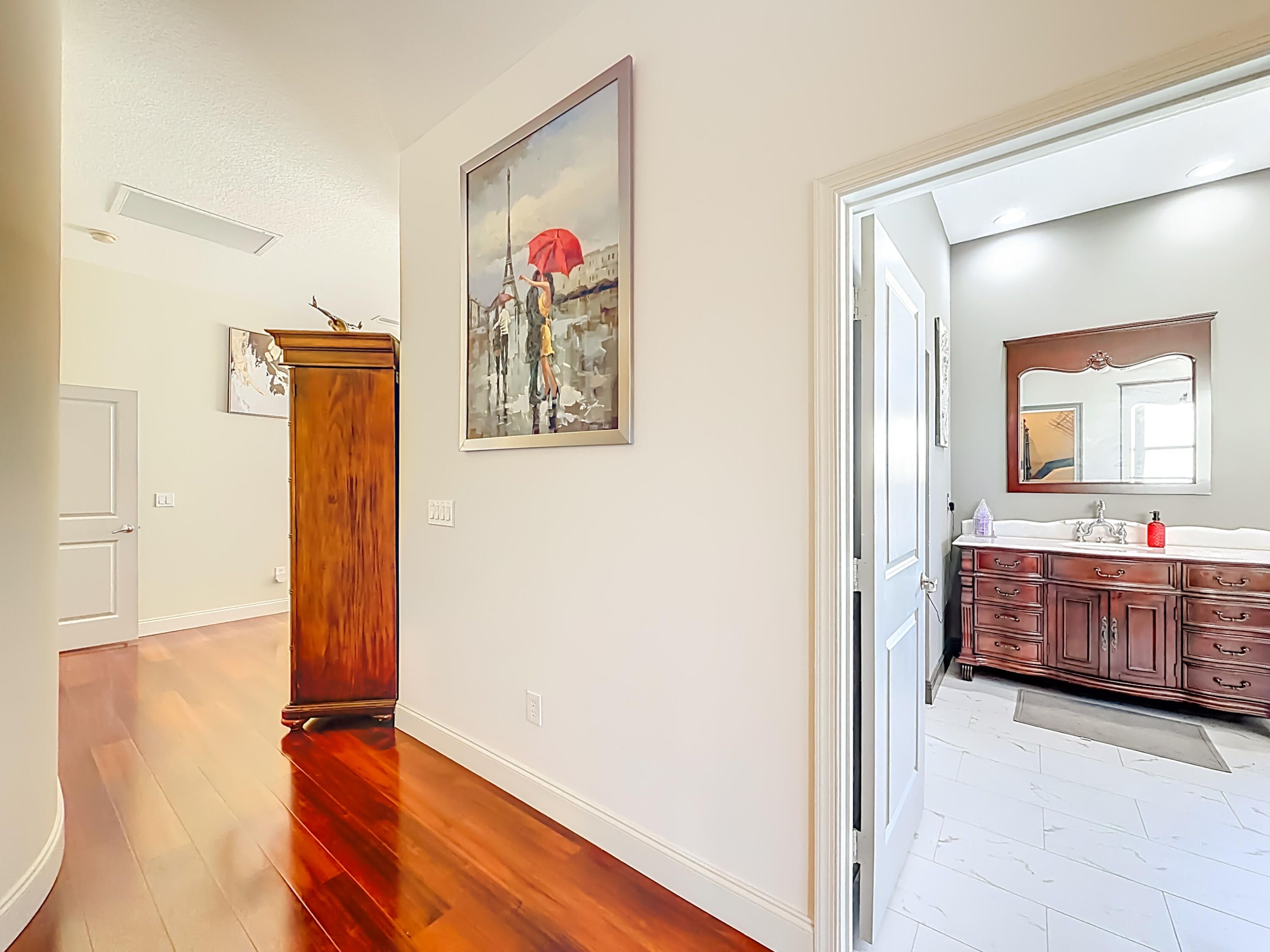 - Cathedral Ceiling(s), Entrance Foyer, Pantry, Vaulted Ceiling(s), Walk-In Closet(s), Split Bedrooms, Cabana Bath, Eat-in Kitchen, Separate/Formal Dining Room, Snack Bar, Dual Sinks, Upper Level Primary, Separate Shower, Soaking Tub