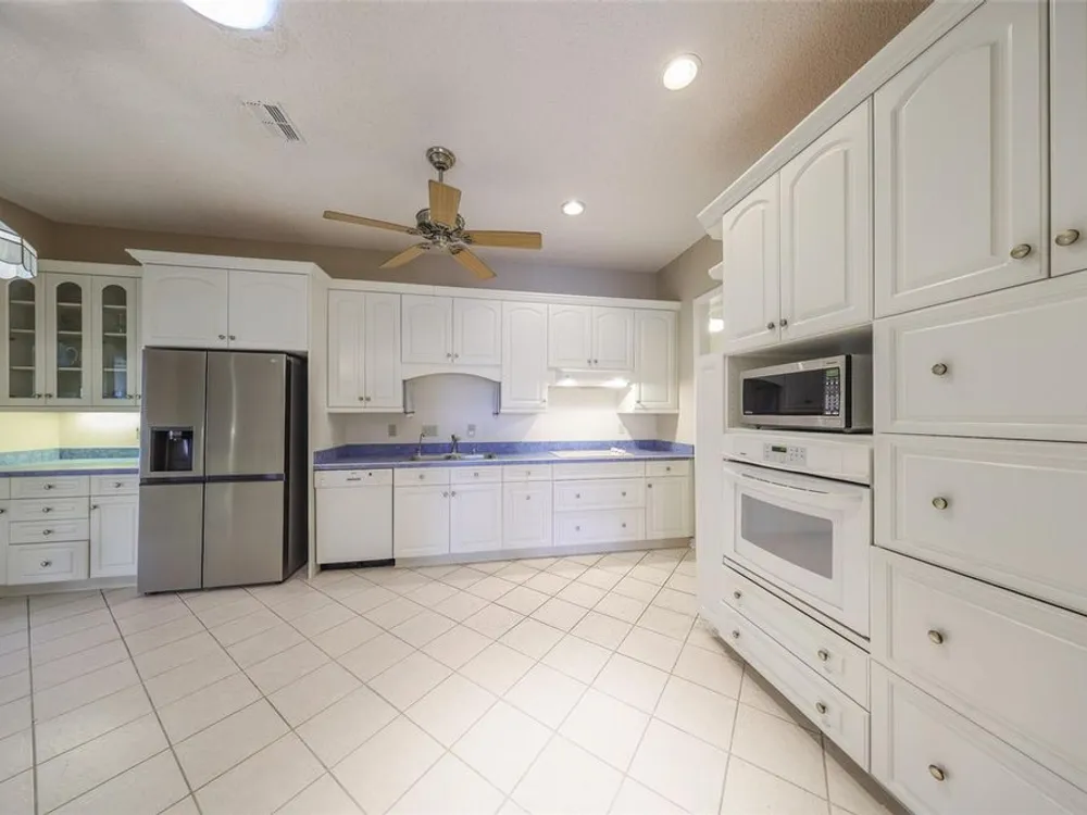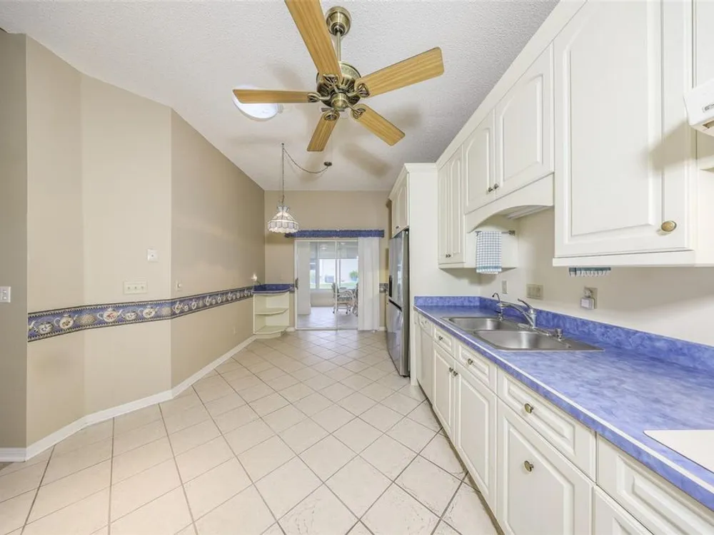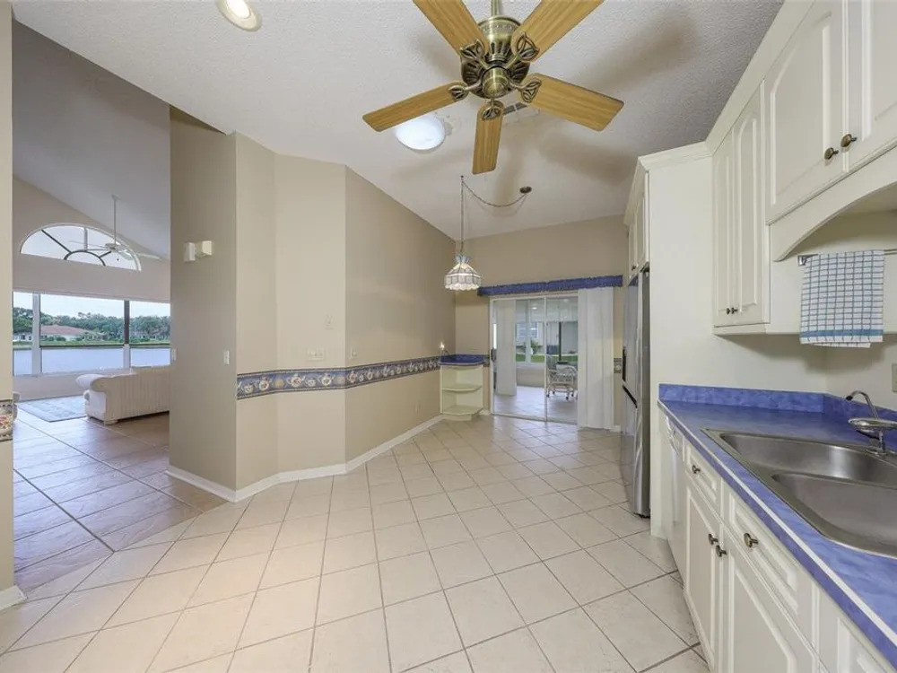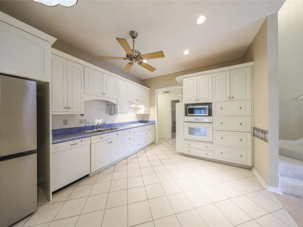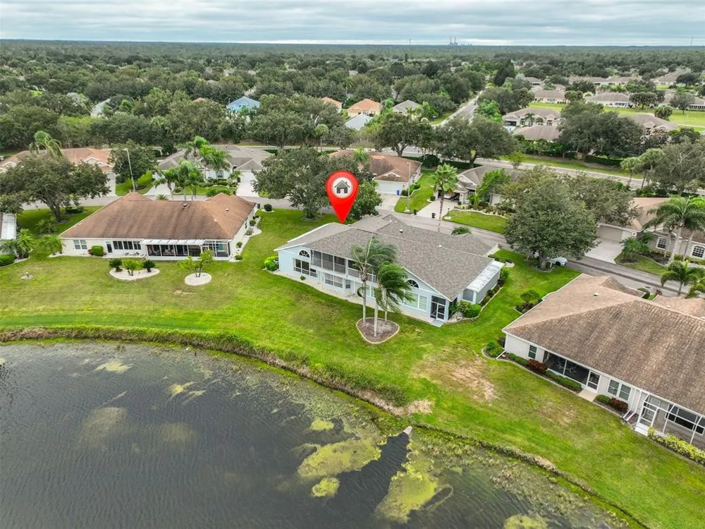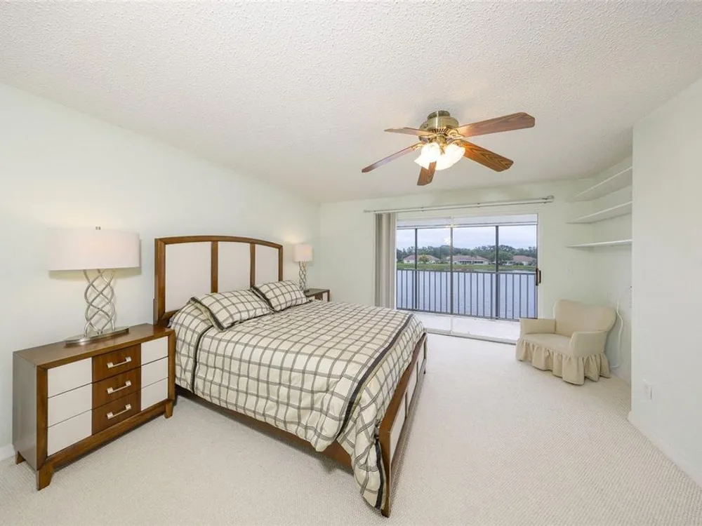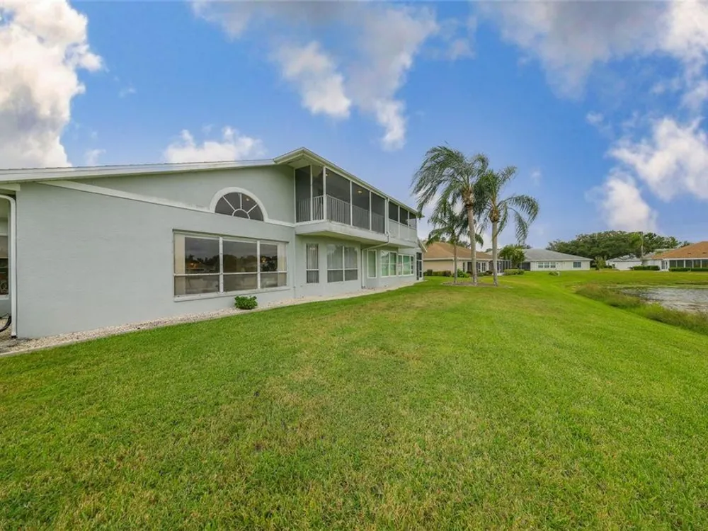 Experience serene waterfront living in this beautifully upgraded two-story, 3-bedroom, 3-bath condominium located in the highly sought-after Kings Point 55+ community. Positioned on a prime wedge-shaped lot, this home enjoys exceptional privacy and unobstructed lake views with no fences or hedges to block the scenery. The open-concept layout highlights soaring cathedral ceilings, abundant natural light, and refined finishes throughout. The chef’s kitchen showcases custom 42-inch solid wood cabinetry, deep storage drawers, new stainless steel LG refrigerator, Bosch dishwasher, built-in wall oven, and a Kenmore Elite cooktop—all complemented by recessed lighting and a reverse osmosis water system. A formal dining area with a bay window and a spacious living room with tile flooring and panoramic water views create the perfect space for entertaining. The expansive primary suite features oak wood flooring, double walk-in closets, and a luxurious en suite bath with dual vanities, seamless marble countertops, a garden tub, and a separate walk-in shower. The second bedroom and full bath are conveniently located on the main floor. Upstairs, a private guest suite offers a walk-in closet, a full bath with tub and shower, and access to a newly screened balcony overlooking the lake—ideal for reading, relaxing, or enjoying morning coffee. The air-conditioned and enclosed lanai with sliding windows extends the living space year-round, featuring tile flooring and tranquil water views. Additional highlights include a new 3.5-ton HVAC system (2024), new roof (2024), Culligan water softener system, nine ceiling fans, built-in garage cabinetry, electric garage screen, and a washer/dryer conveniently located in the oversized garage. Kings Point offers world-class amenities including 24-hour gated security, multiple clubhouses, fitness centers, golf, tennis, pickleball, indoor and outdoor pools, a full-service spa, on-site dining, and over 200 clubs and social organizations. The monthly fee covers building exterior, roof, landscaping, irrigation, water, sewer, pest control, cable, internet, and reserves for long-term maintenance—ensuring worry-free living. Centrally located between Tampa and Sarasota, Kings Point provides easy access to shopping, dining, medical facilities, airports, and award-winning Gulf beaches. This stunning, move-in-ready residence delivers comfort, luxury, and the best of Florida’s active adult lifestyle in one exceptional community. This lovely condo is vacant and move-in ready. Don’t miss the chance to own in one of Florida’s premier 55+ active lifestyle communities—schedule your private showing today!