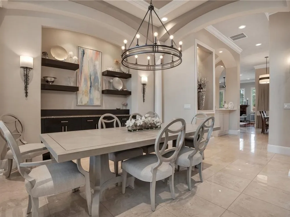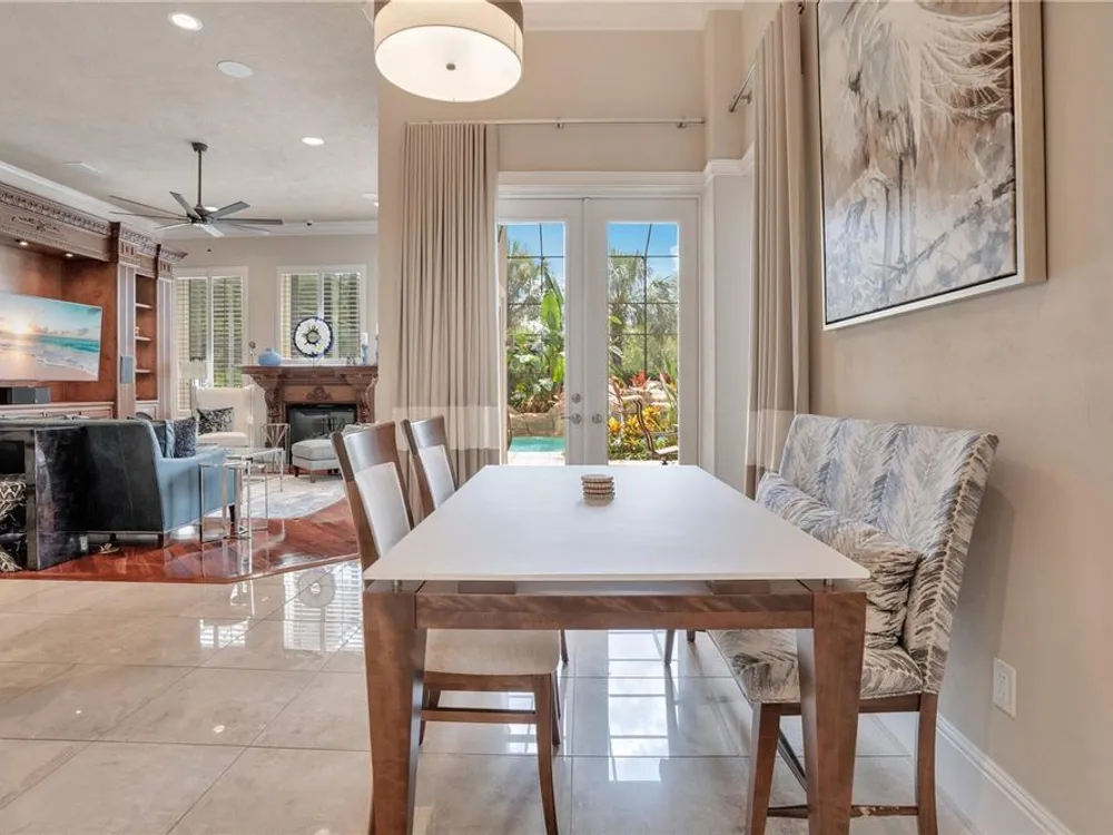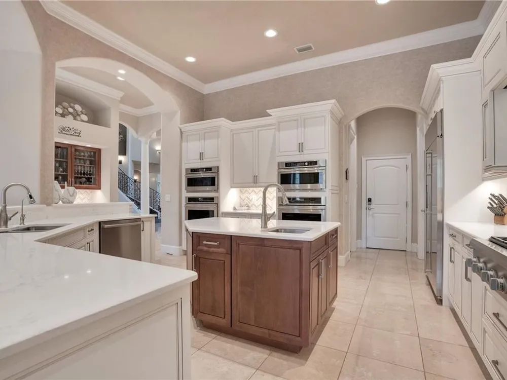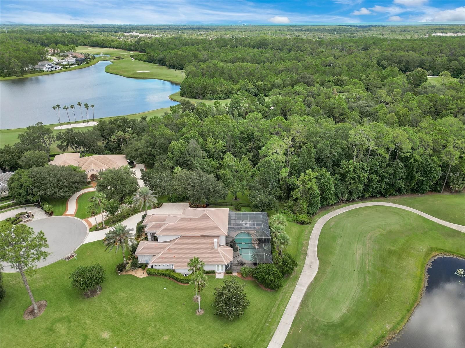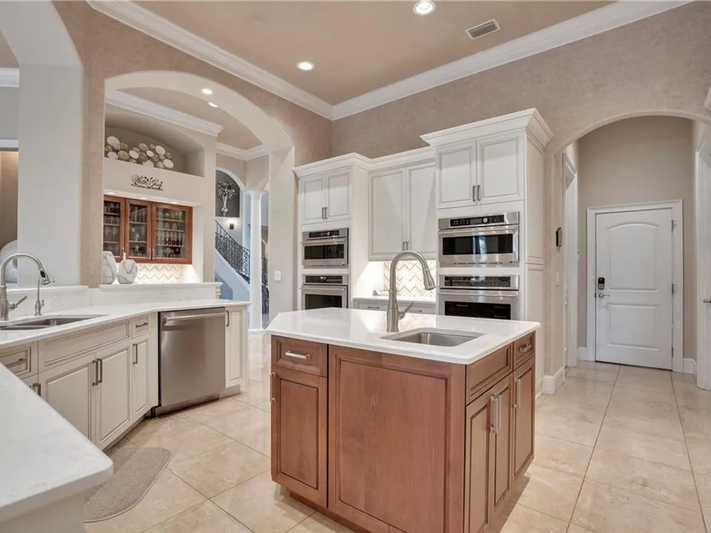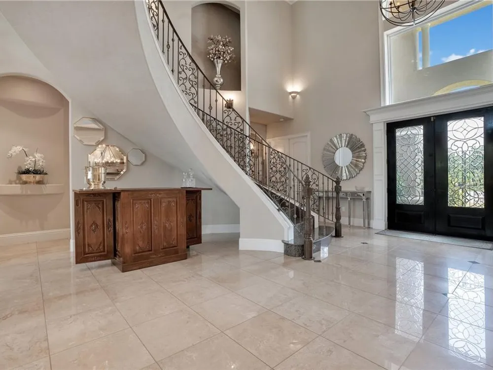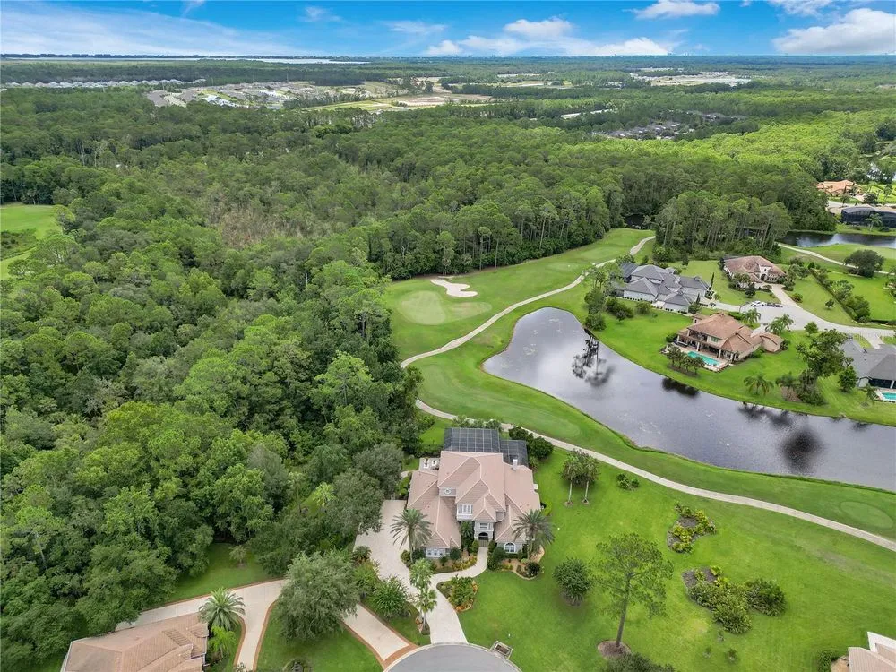 Located in the esteemed gated Plantation Bay community, this stunning estate offers unparalleled luxury and privacy. Positioned on the 7th fairway and 8th hole of the exclusive private Prestwick Golf Course, this home is a masterpiece of design, featuring meticulous updates, professional decor, and exceptional craftsmanship. Upon entry, a grand staircase, soaring ceilings, and formal living and dining areas create a dramatic first impression. A stylish half-bath adds convenience to the main level. Designed for effortless entertaining and everyday living, the gourmet kitchen is a chef's dream. Fully remodeled in 2018, it showcases custom cabinetry, premium countertops, and top-of-the-line GE Monogram appliances, including a gas cooktop, refrigerator, two ovens, two Advantium ovens, and two dishwashers. A spacious center island with a vegetable sink and disposal enhances both functionality and prep space, while a large walk-in pantry ensures ample storage.