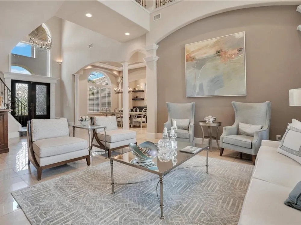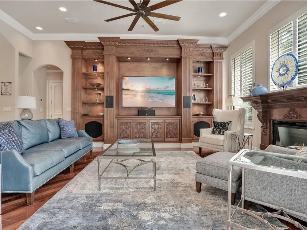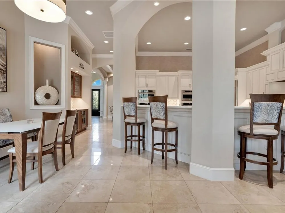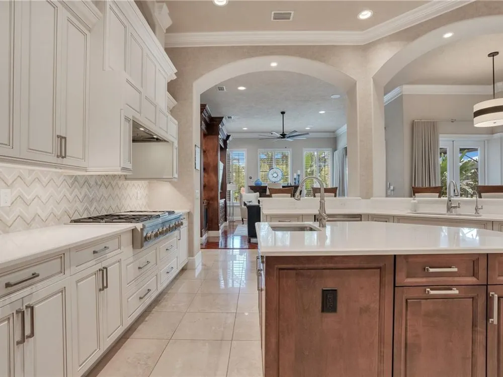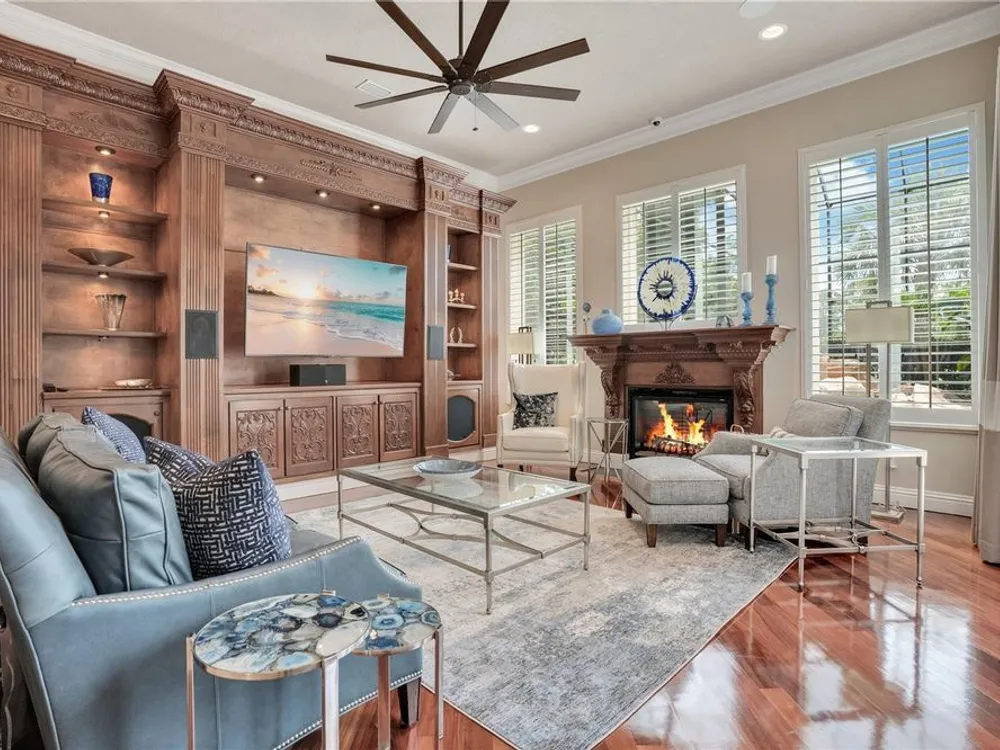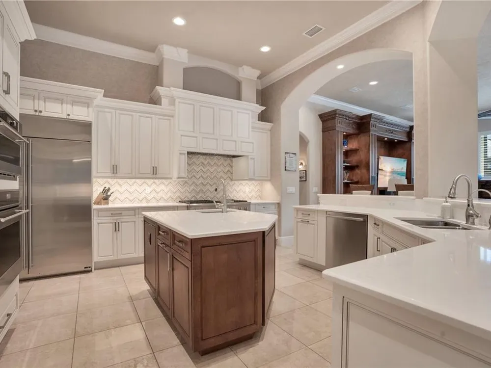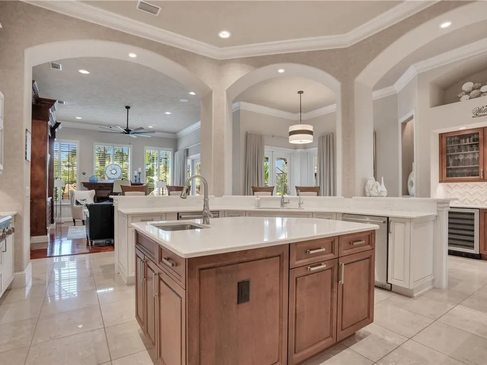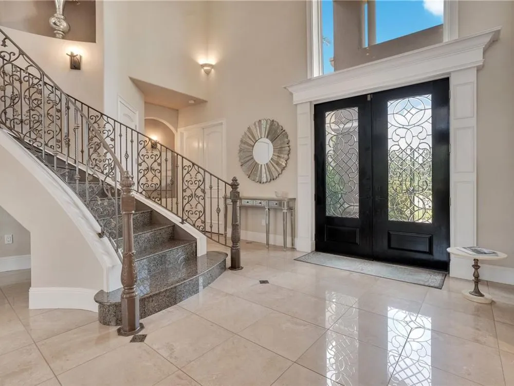 Located in the esteemed gated Plantation Bay community, this stunning estate offers unparalleled luxury and privacy. Positioned on the 7th fairway and 8th hole of the exclusive private Prestwick Golf Course, this home is a masterpiece of design, featuring meticulous updates, professional decor, and exceptional craftsmanship. Upon entry, a grand staircase, soaring ceilings, and formal living and dining areas create a dramatic first impression. A stylish half-bath adds convenience to the main level. Designed for effortless entertaining and everyday living, the gourmet kitchen is a chef's dream. Fully remodeled in 2018, it showcases custom cabinetry, premium countertops, and top-of-the-line GE Monogram appliances, including a gas cooktop, refrigerator, two ovens, two Advantium ovens, and two dishwashers. A spacious center island with a vegetable sink and disposal enhances both functionality and prep space, while a large walk-in pantry ensures ample storage.