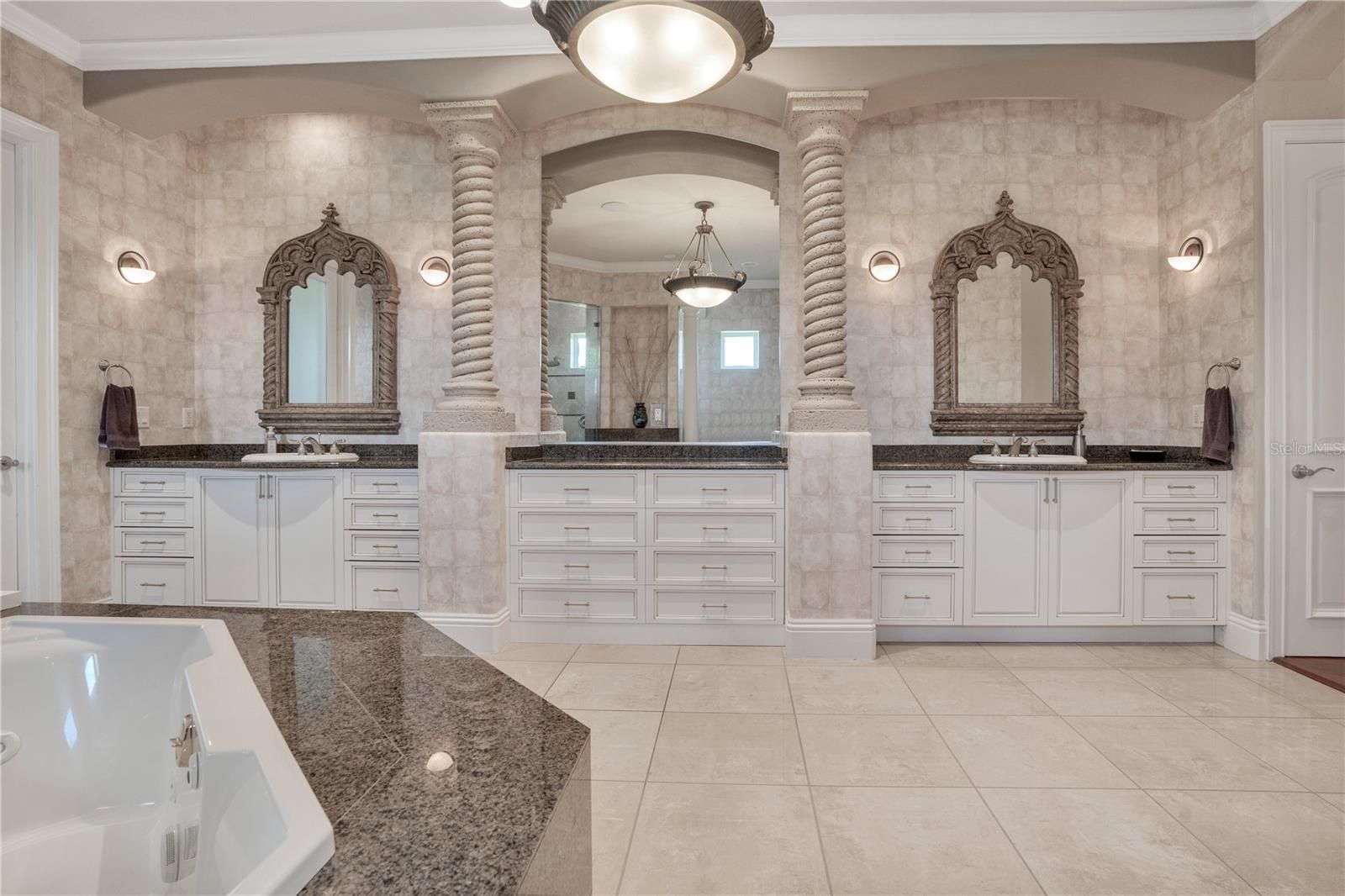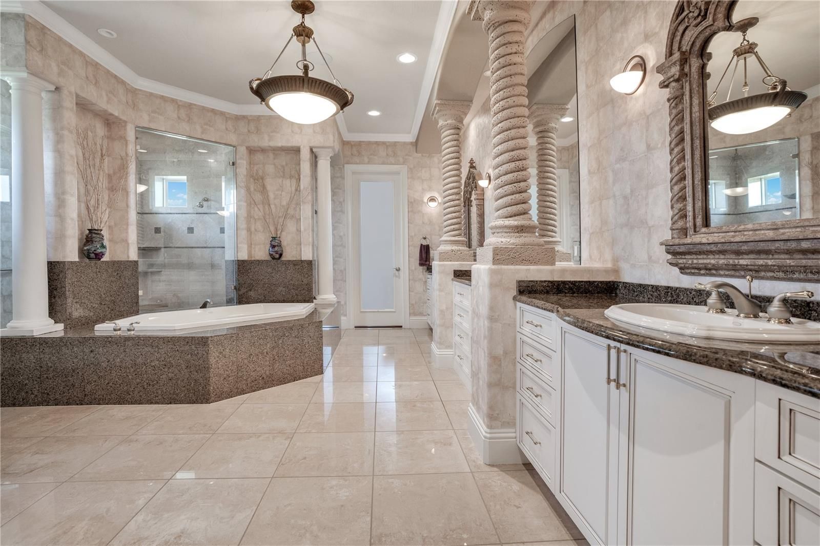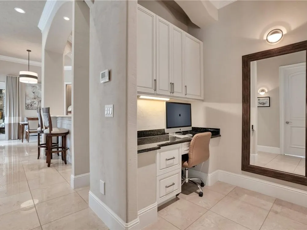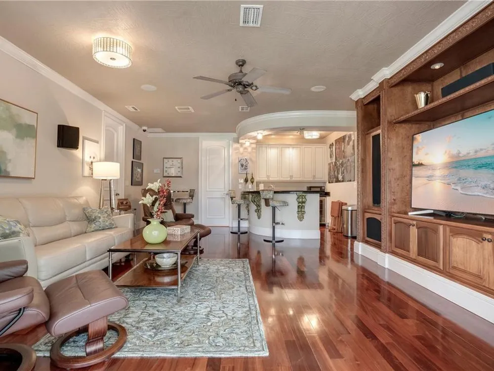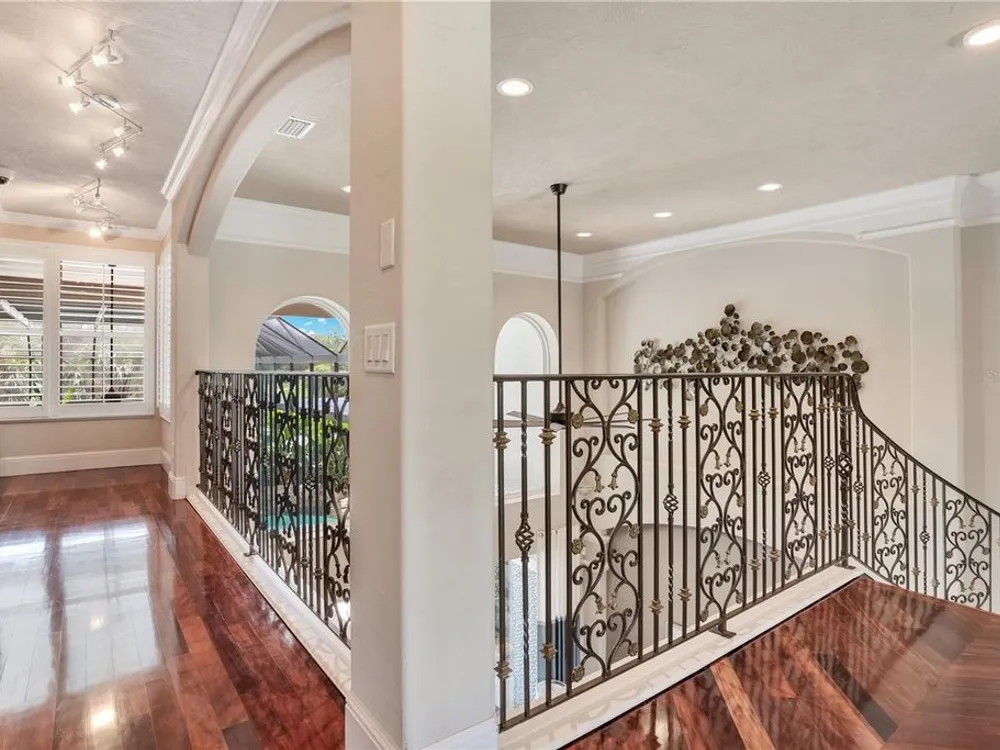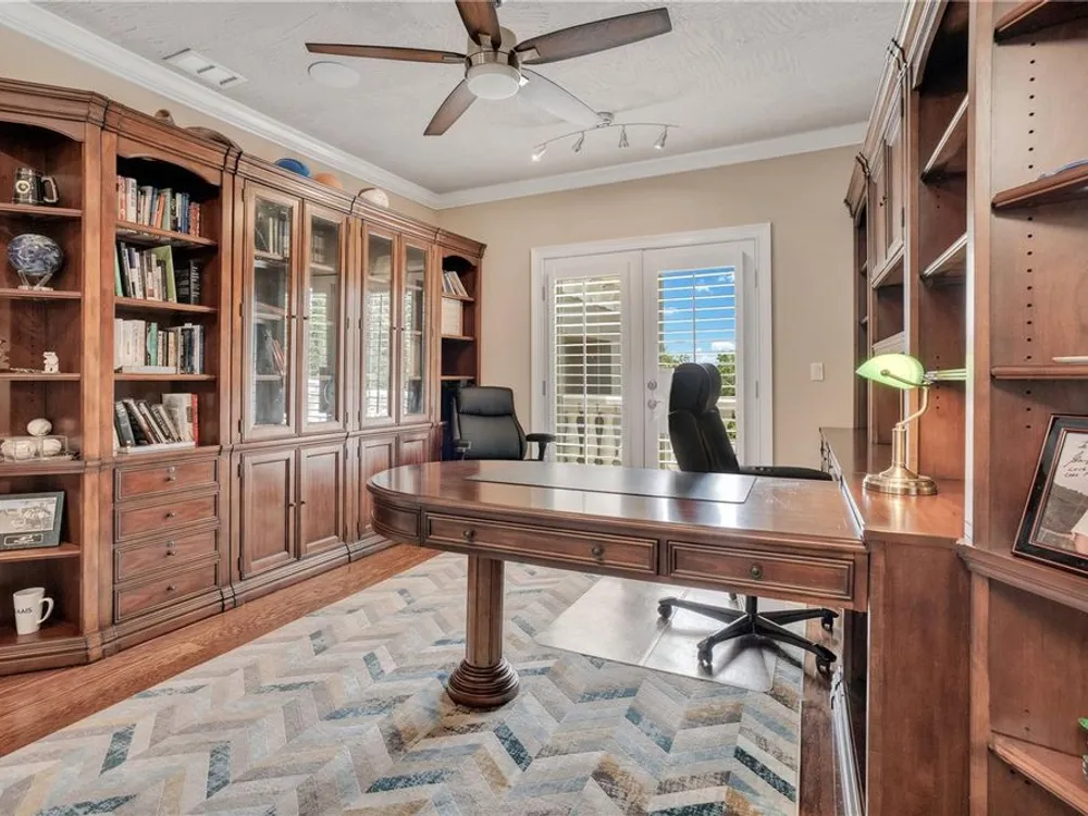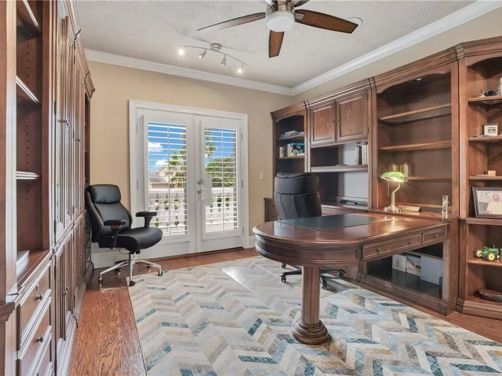 Located in the esteemed gated Plantation Bay community, this stunning estate offers unparalleled luxury and privacy. Positioned on the 7th fairway and 8th hole of the exclusive private Prestwick Golf Course, this home is a masterpiece of design, featuring meticulous updates, professional decor, and exceptional craftsmanship. Upon entry, a grand staircase, soaring ceilings, and formal living and dining areas create a dramatic first impression. A stylish half-bath adds convenience to the main level. Designed for effortless entertaining and everyday living, the gourmet kitchen is a chef's dream. Fully remodeled in 2018, it showcases custom cabinetry, premium countertops, and top-of-the-line GE Monogram appliances, including a gas cooktop, refrigerator, two ovens, two Advantium ovens, and two dishwashers. A spacious center island with a vegetable sink and disposal enhances both functionality and prep space, while a large walk-in pantry ensures ample storage.