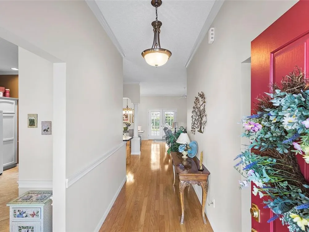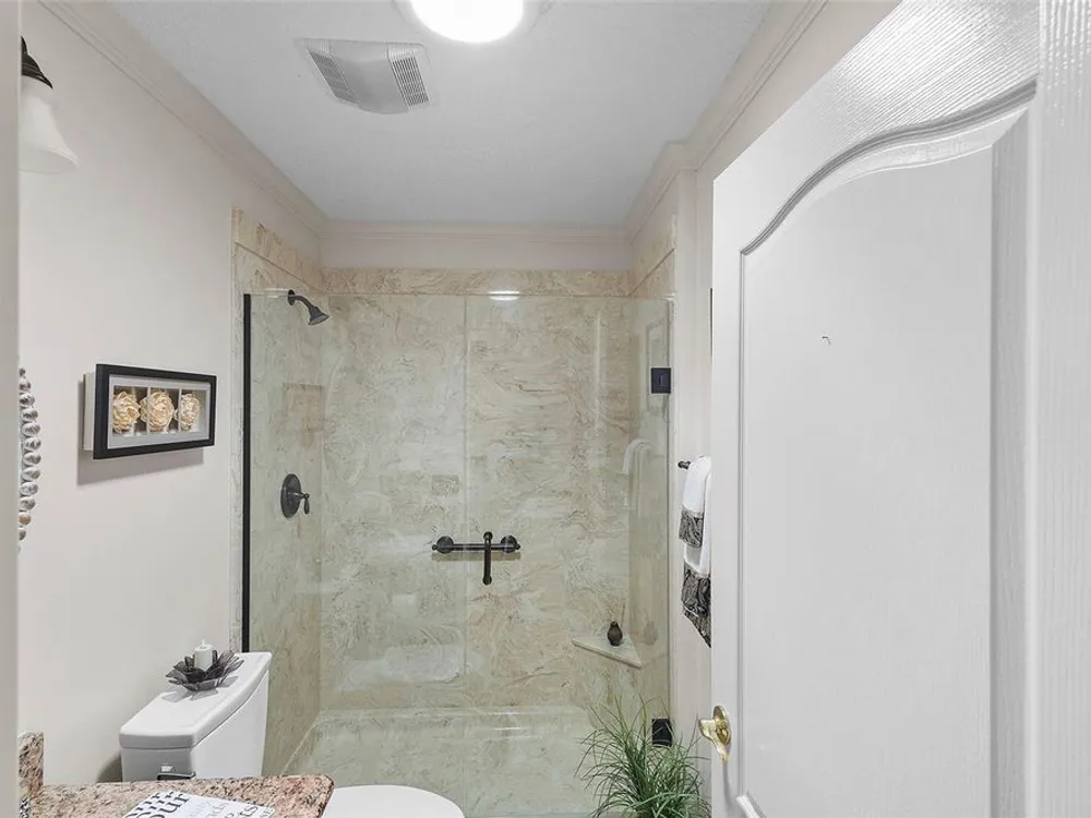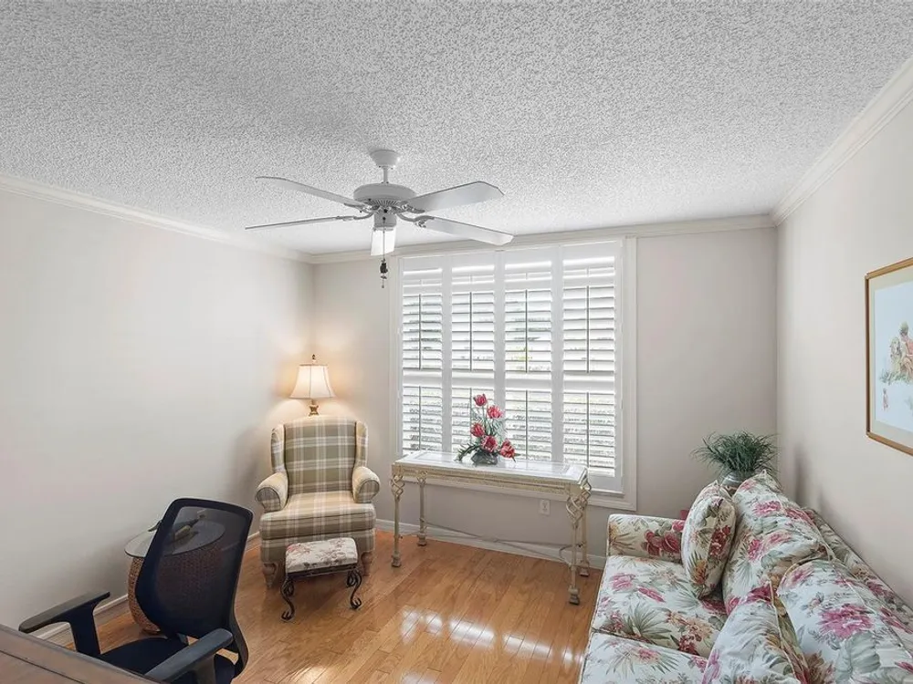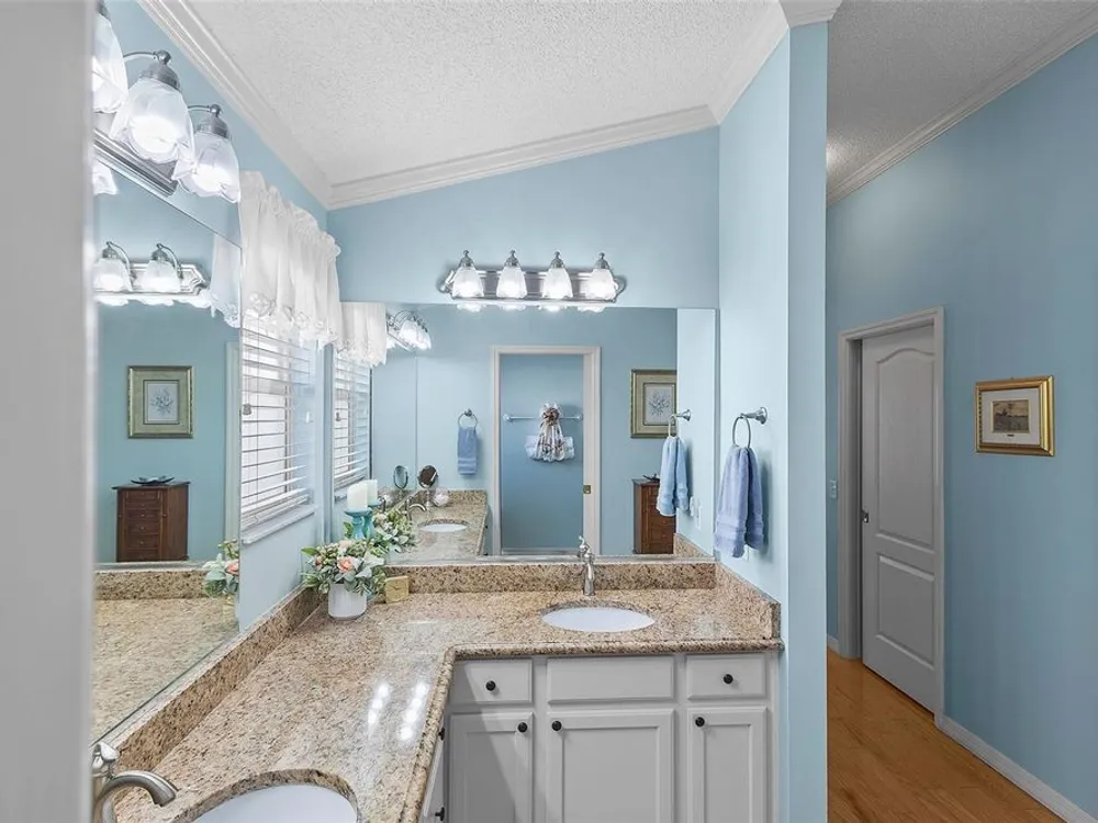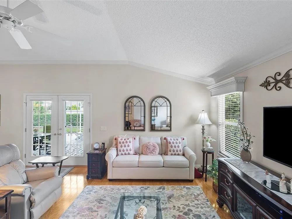 - Ceiling Fan(s), Crown Molding, Eat-in Kitchen, Living/Dining Room, Open Floorplan, Main Level Primary, Split Bedrooms, Stone Counters, Vaulted Ceiling(s), Walk-In Closet(s), Window Treatments