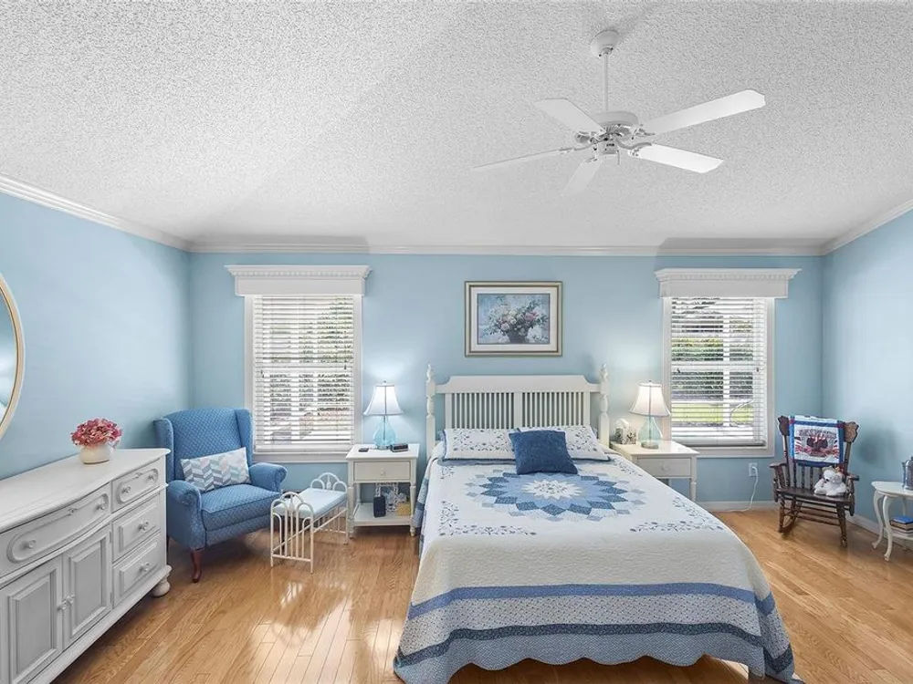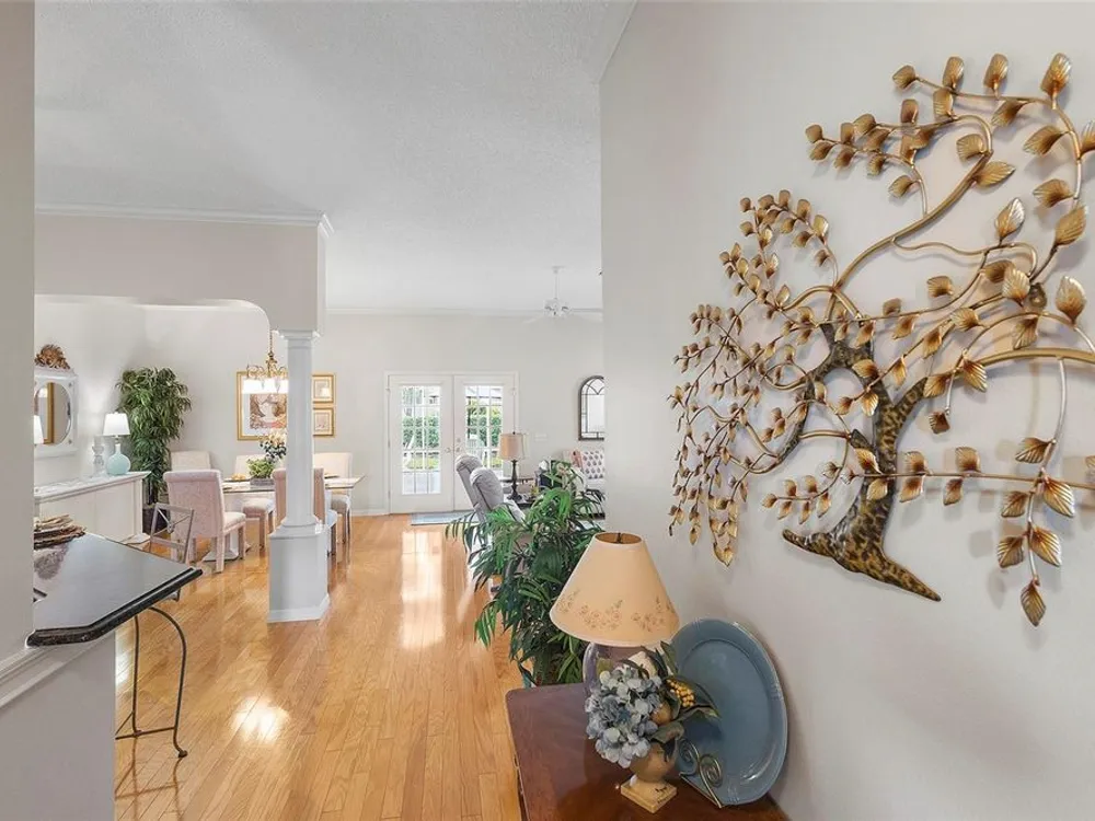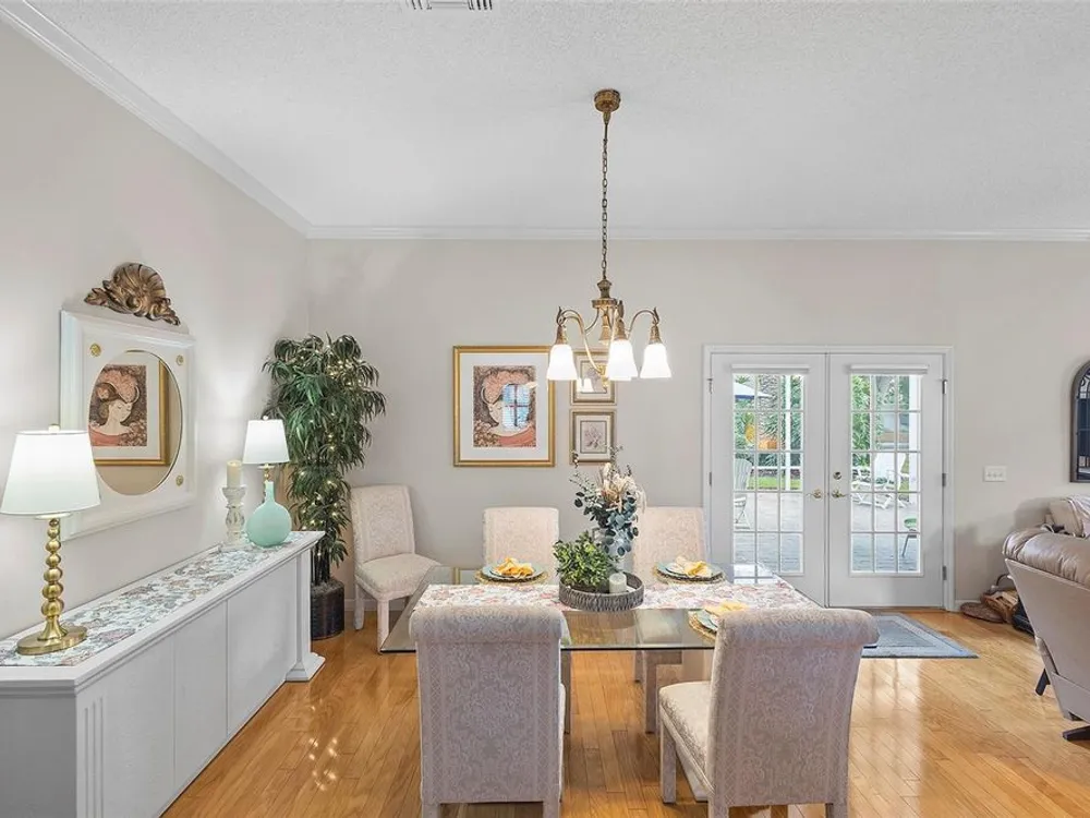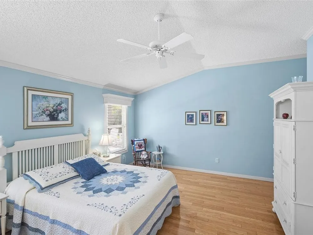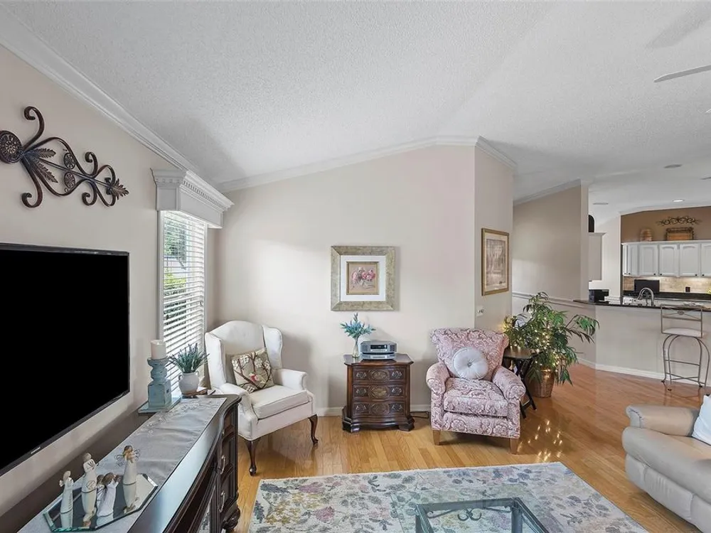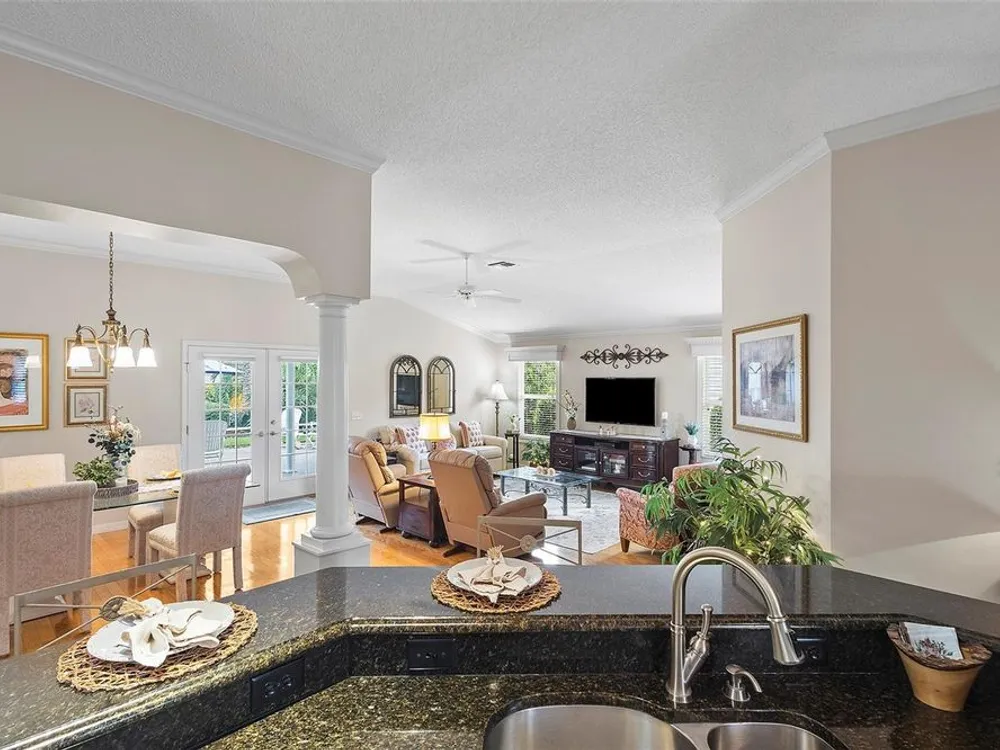 Welcome Home to this beautifully maintained Magnolia (Nueva Rosita) model nestled in the sought-after Village of Santo Domingo. From the moment you arrive, you'll be impressed by the exceptional curb appeal, featuring lush landscaping, concrete curbing, and meticulously manicured flower beds that frame the pavered driveway. NEW PRICE - BRING YOUR OFFER ! Step through the front door and into a home that blends timeless elegance with Florida living. Your eyes will immediately be drawn to the real hardwood flooring that flows seamlessly throughout the main living areas, complemented by crown molding and plantation shutters that elevate the space with sophistication and warmth. To your left, you'll find the spacious kitchen—perfectly appointed with granite countertops, ample cabinetry, and a breakfast nook filled with natural light. The granite continues in both bathrooms, offering a consistent, high-end feel throughout. The formal dining area and large living room create an inviting layout, ideal for hosting friends and family. The split-bedroom floor plan ensures privacy for guests, while the primary suite serves as a true retreat. It features his-and-hers closets, dual vanities, and direct access to the lanai. Both guest bedrooms are generously sized and versatile, ready to accommodate visitors or a home office. Step out back and you’ll feel like you’ve entered your own private resort. The inground pool is surrounded by privacy landscaping, creating a tranquil escape right in your backyard. Enjoy a cocktail at the covered bar area or relax under the expansive screened birdcage lanai, perfect for year-round outdoor living. Additional highlights include: * Roof replaced March 2025 * HVAC replaced September 2015 * Granite countertops in kitchen and both bathrooms * Golf cart garage * Double pull-down attic access * No Bond – balance is fully paid Located just minutes from Spanish Springs and Lake Sumter Landing, you'll enjoy quick access to golf, shopping, dining, and nightly entertainment—all while living in a peaceful, well-established neighborhood. This home offers the best of The Villages lifestyle with luxury, privacy, and unmatched charm. Schedule your private tour today! CHECK OUT THE VIDEO TOUR BY CLICKING ON THE VIDEO TOUR 1 ICON. ENJOY!