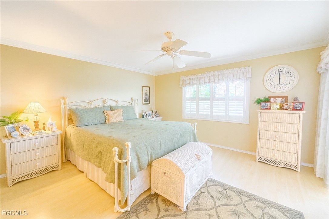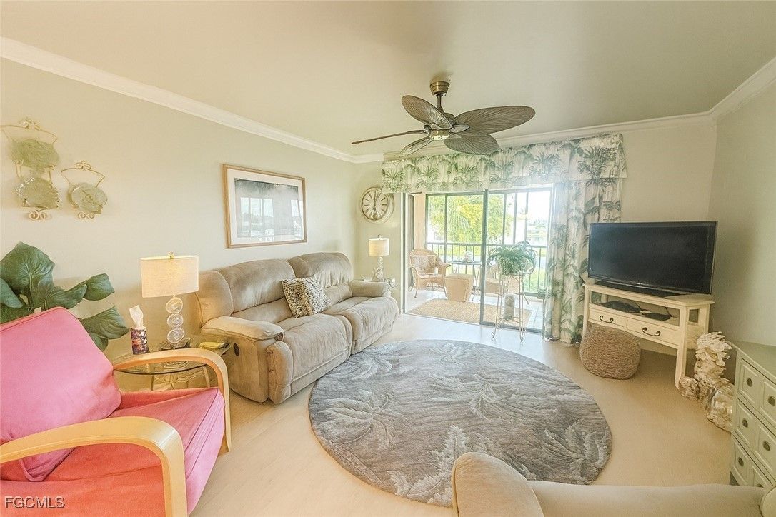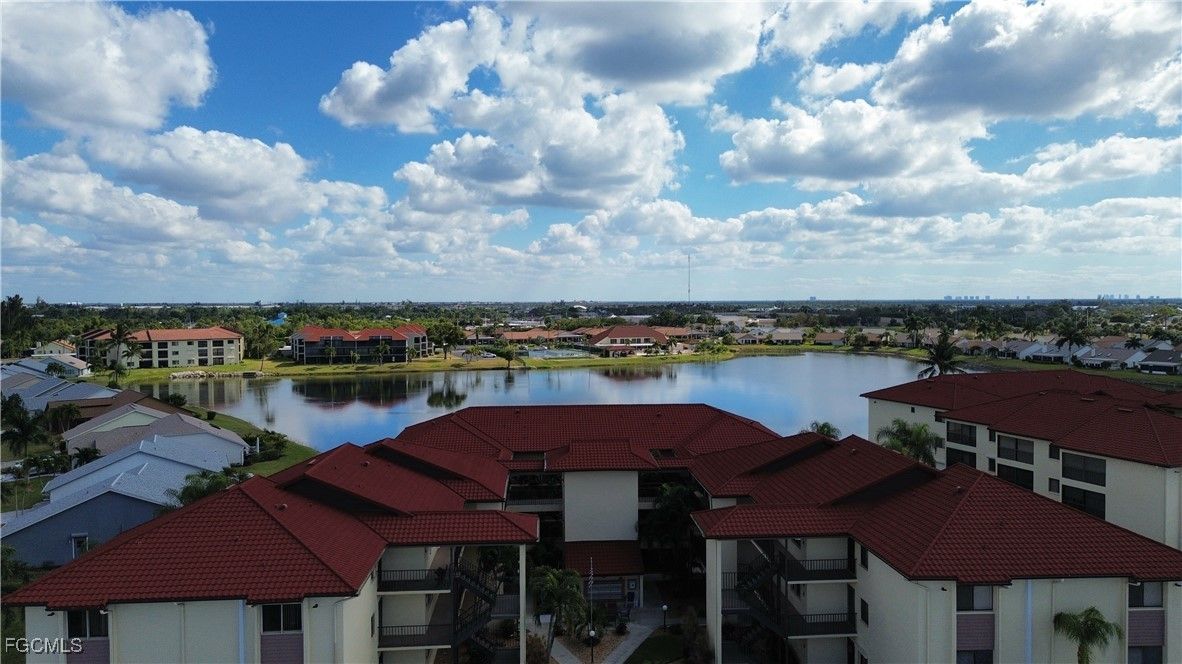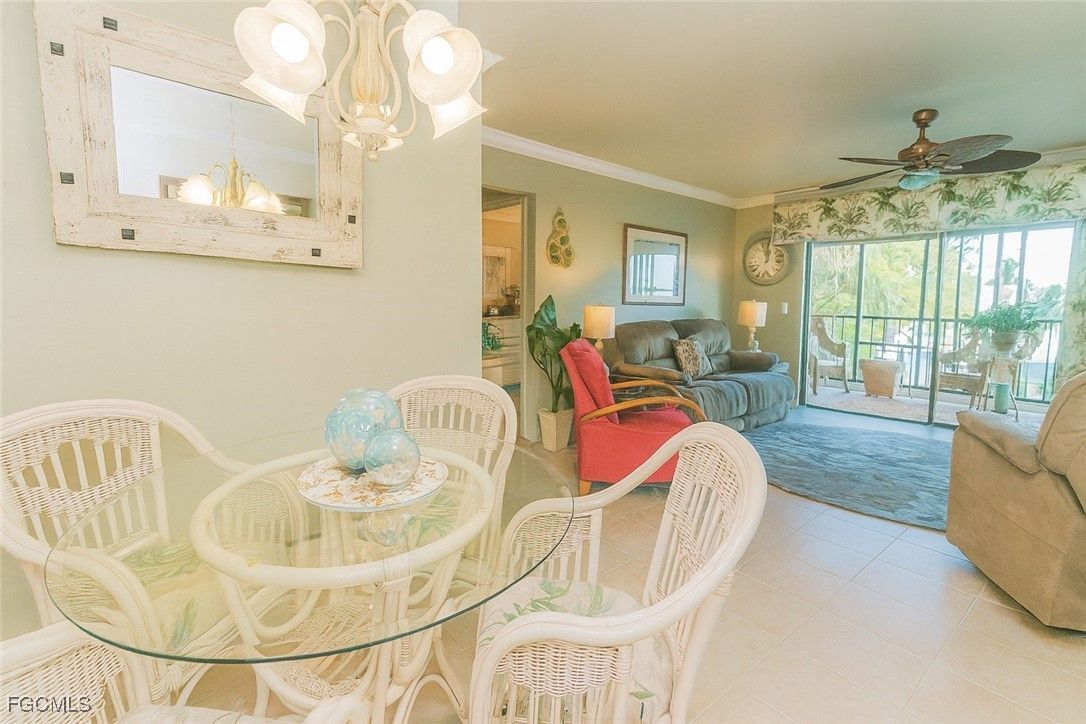 Enjoy serene Florida living in this beautifully maintained third-floor condo, perfectly located in a gated community just minutes from Fort Myers Beach and the Sanibel/Captiva Causeway. This 2-bedroom, 2-bathroom residence offers peaceful lake views, abundant natural light, and a relaxed coastal feel throughout. The inviting interior features an open-concept living and dining area with neutral tones, crown molding, and seamless access to the screened lanai, where you can unwind while overlooking RARE TWO LAKE tranquil water views. The well-equipped kitchen offers ample cabinetry, generous counter space, and a functional layout ideal for everyday living or hosting guests. The primary suite is spacious and bright, featuring a large walk-in closet and an ensuite bathroom.. A comfortable guest bedroom and second full bath provide privacy and flexibility for visitors or a home office. Additional highlights include in-unit laundry, ceiling fans, and well-maintained finishes throughout. Situated on the third floor, this condo enjoys added privacy, elevated views, and refreshing cross breezes. The community offers a resort-style pool, lush landscaping, and the peace of mind of a gated entrance. The $570/month HOA fee provides excellent value and includes flood insurance, exterior maintenance, landscaping, and community amenities—making this a truly low-maintenance lifestyle. Ideally located close to world-class beaches, shopping, dining, and entertainment, this condo is perfect as a full-time residence, seasonal retreat, or investment opportunity. Experience the best of Southwest Florida living near Fort Myers Beach and Sanibel Island. Taxes estimated at $2900 a year.