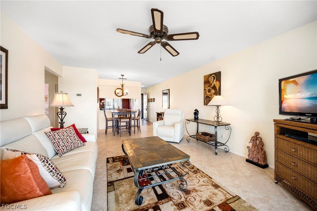Welcome to Cinnamon Cove, one of Fort Myers’ most desirable active communities—ideally located just a few miles from Fort Myers Beach, Sanibel Island, and Bunche Beach. This desirable, incredibly well maintained 3rd-floor corner condo offers both elevator and convenient stair access, and is located close to the covered carport and private storage for added ease. The light-filled two-bedroom, two-bath floor plan features plantation shutters, hurricane shutters, and a spacious layout perfect for seasonal or year-round living. Enjoy total peace of mind knowing the association pays for both flood and wind insurance—an exceptional value in today’s market. Cinnamon Cove is a vibrant, amenity-rich community offering tennis, pickleball, and a full calendar of social activities coordinated by an on-site activities director. Whether you’re looking to relax or stay active, this community delivers the Florida lifestyle you’ve been dreaming of. Live close to beaches, boating, dining, and shopping—all while enjoying a beautifully maintained community atmosphere.
