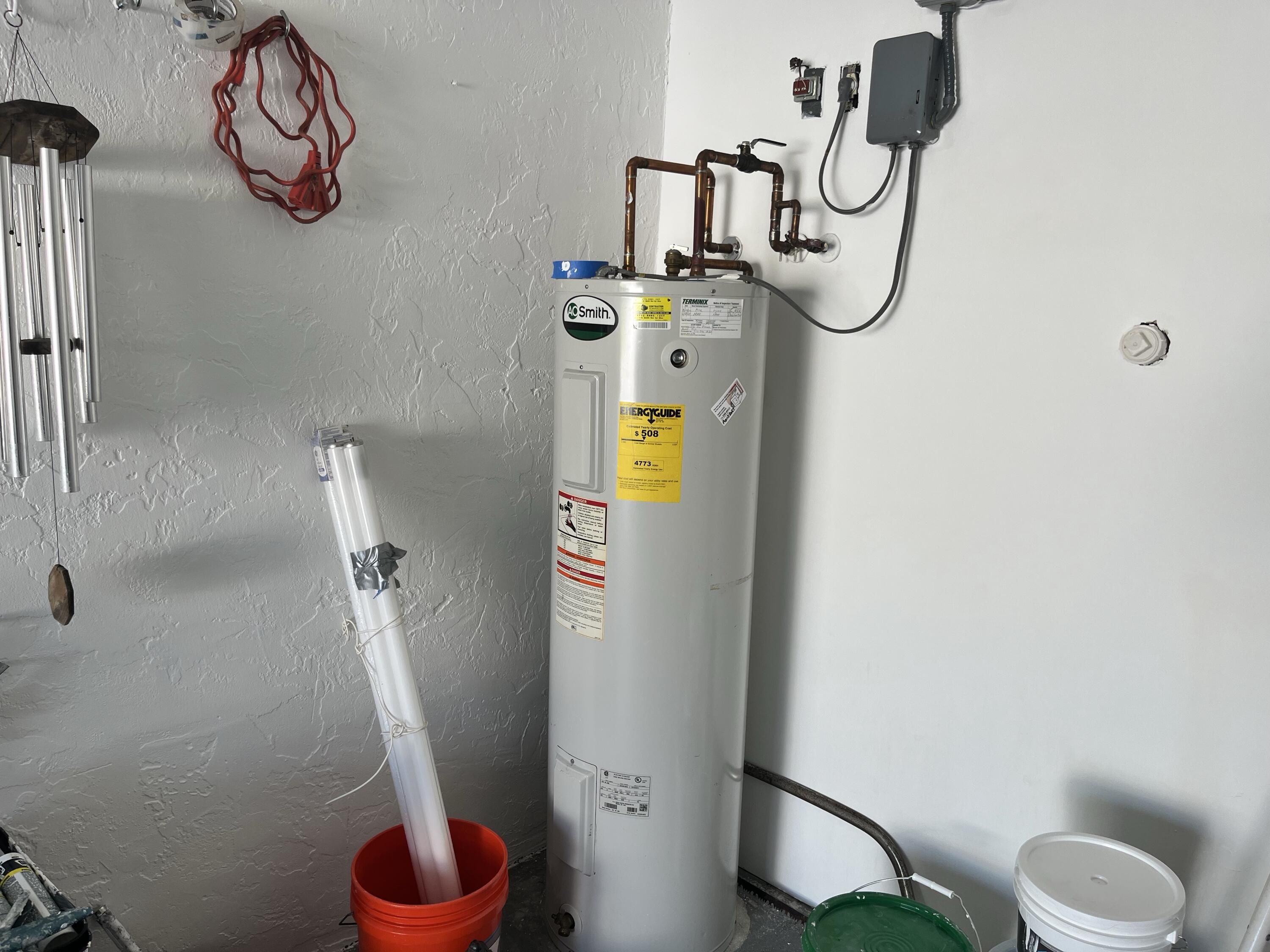 - Electric Water Heater, Disposal, Dishwasher, Electric Range, Microwave, Refrigerator, Water Heater