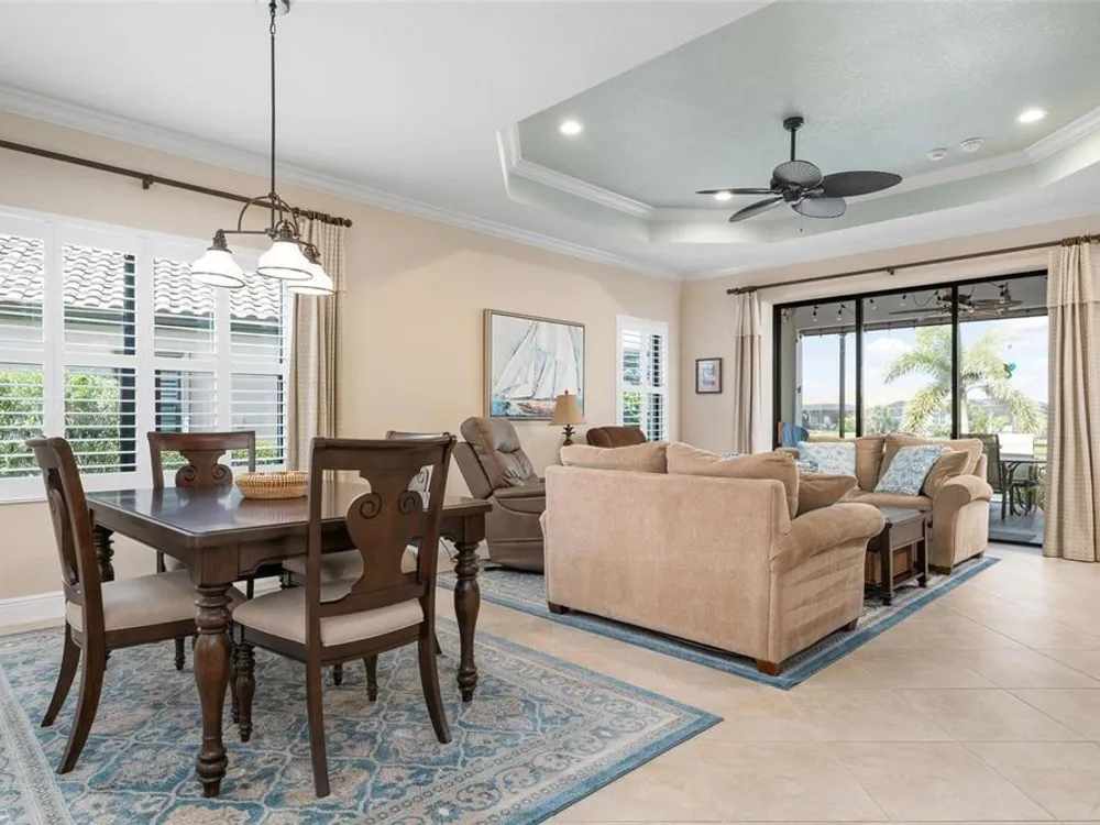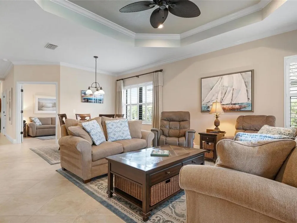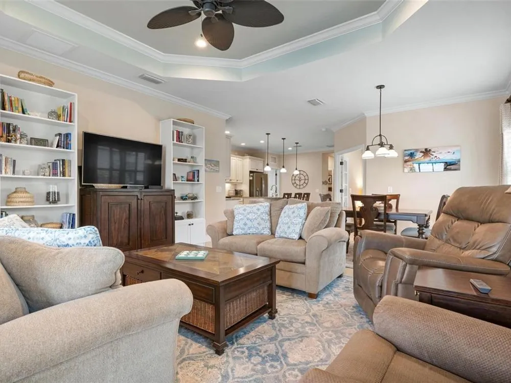 - Ceiling Fan(s), Coffered Ceiling(s), Crown Molding, Living/Dining Room, Open Floorplan, In-Wall Pest Control, Tray Ceiling(s), Walk-In Closet(s), Window Treatments
