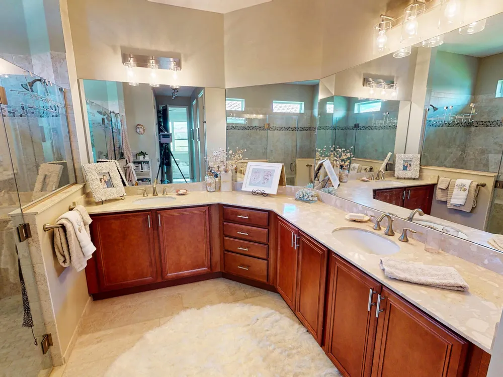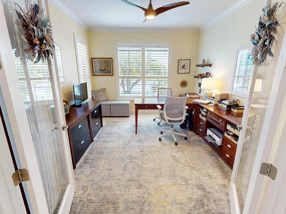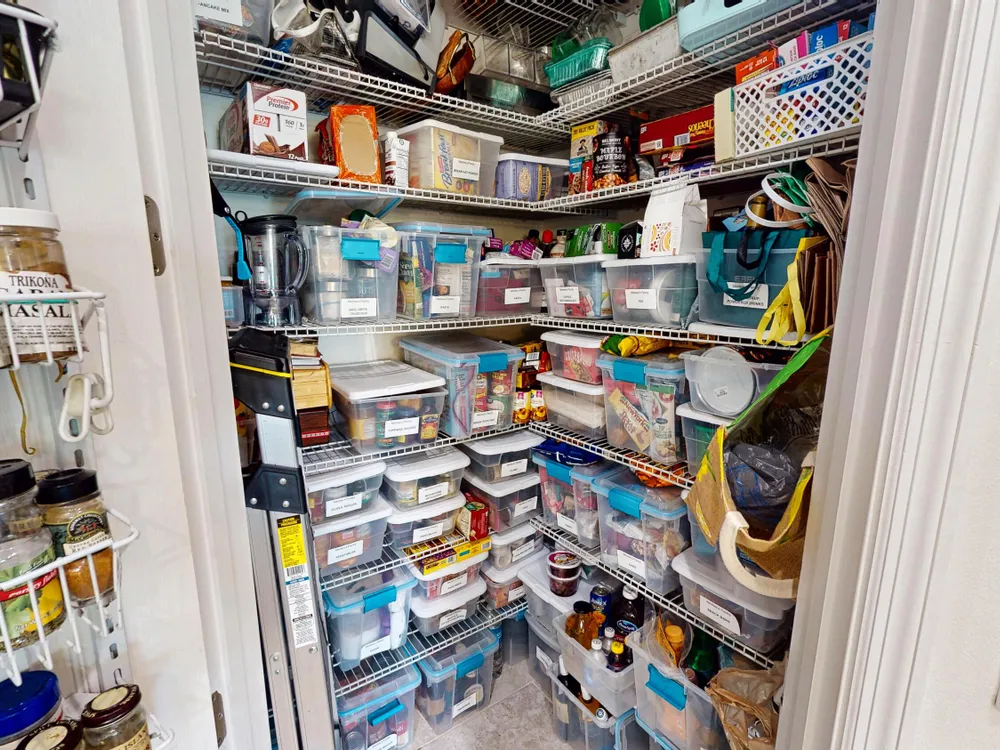 - Built-in Shelving, Entry Level Living Area, Entrance Foyer, Pantry, Split Bedrooms, Walk-In Closet(s), Attic, Home Office, Family Room, Family/Dining Room, Snack Bar, Drapes, Impact Glass, Plantation Shutters, Dual Sinks, Separate Shower