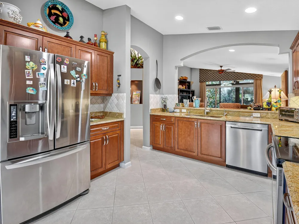 Welcome to 11184 Ihilani. This home sits on a large corner lot and has outstanding curb appeal. The landscaping is lush and is manicured to perfection with flowers and shrubs surrounding the property. They are spectacular. Your most discriminating buyer would appreciate the taste and quality that went into decorating this home. From the neutral paint colors to the designer window treatments; everything is to perfection. The kitchen has been remodeled with dark wood cabinets and stainless steel appliances. The cabinets have plenty of pullouts. This Adriatic model has three bedrooms and two baths. The third bedroom is currently being used as a den. All three bedrooms have beautifully customized closets. The bathrooms have been remodeled and they are quite luxurious. Roof about 2 years old