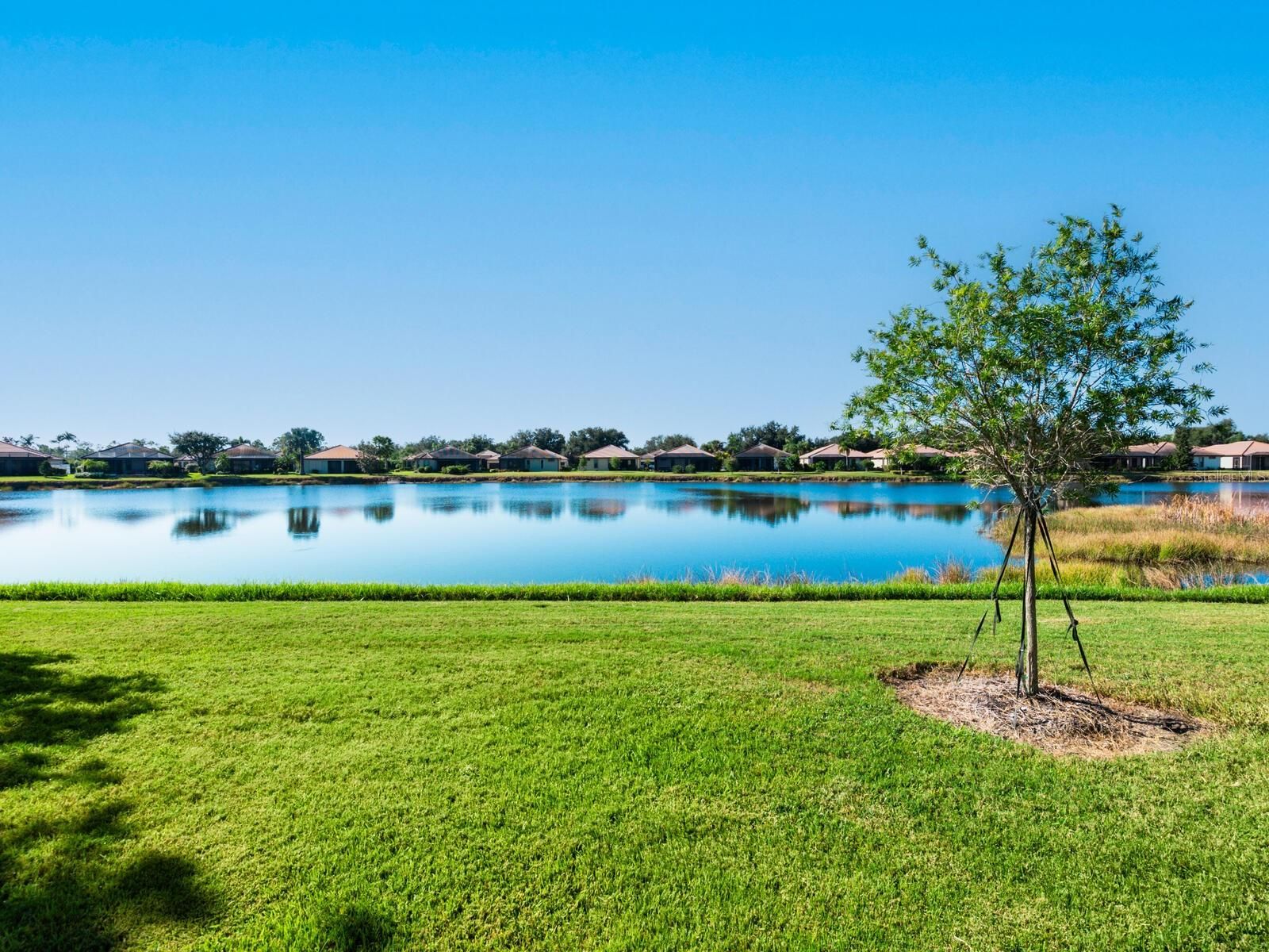 Under contract-accepting backup offers. Enjoy serene lake views from this light-filled 2-bedroom plus den garden villa in the premier 55+ resort-style community of Venetian Falls! This desirable end-unit Bella Vista model offers abundant natural light through numerous windows and a peaceful lake backdrop to admire from the screened lanai, perfect for bird watching and relaxing. Move-in ready, the home features a freshly painted interior, skylights, crown molding, enhanced baseboards, new bedroom carpet, and hurricane shutters for peace of mind. The kitchen blends style and function with quartz countertops, wood cabinetry, a pantry, stainless steel appliances, a dining bar, and a cozy breakfast nook overlooking the front garden. The spacious primary suite includes two closets (one a large walk-in), a generous bedroom, and an ensuite bath with updated shower, dual sink vanity, and linen closet. A guest bedroom, guest bath, and a flexible den with a door—ideal as an office or hobby room—plus a laundry room, complete the layout. The HOA fee covers maintenance-free lawn care, internet, basic cable, and scheduled exterior services such as roof power washing, painting, and mulching. Residents enjoy an exceptional clubhouse and amenities, including a heated lap pool, spa, resistance walking pool, fitness center, billiards, arts-and-crafts room, bocce ball courts, and a full calendar of activities coordinated by an on-site lifestyle director. All of this is located just minutes from the Gulf beaches, shopping, dining, and historic Main Street Venice. Don’t miss this beautiful, move-in-ready home in Venetian Falls!