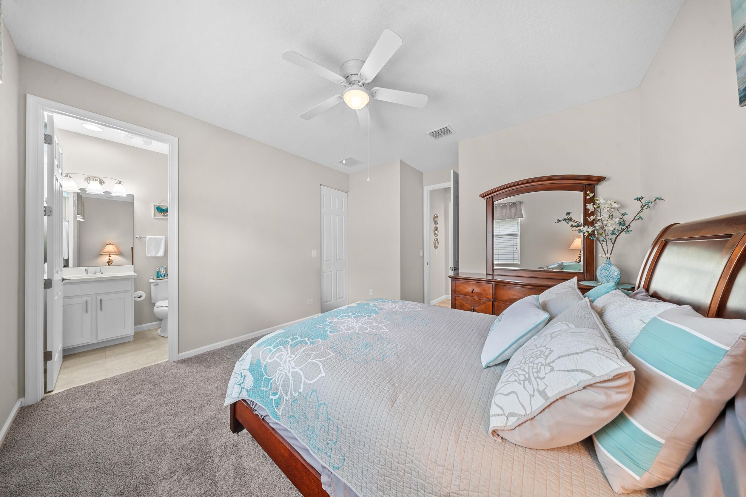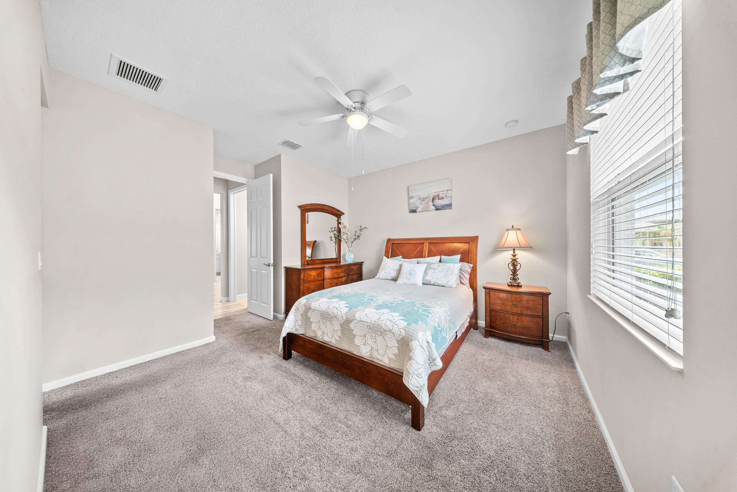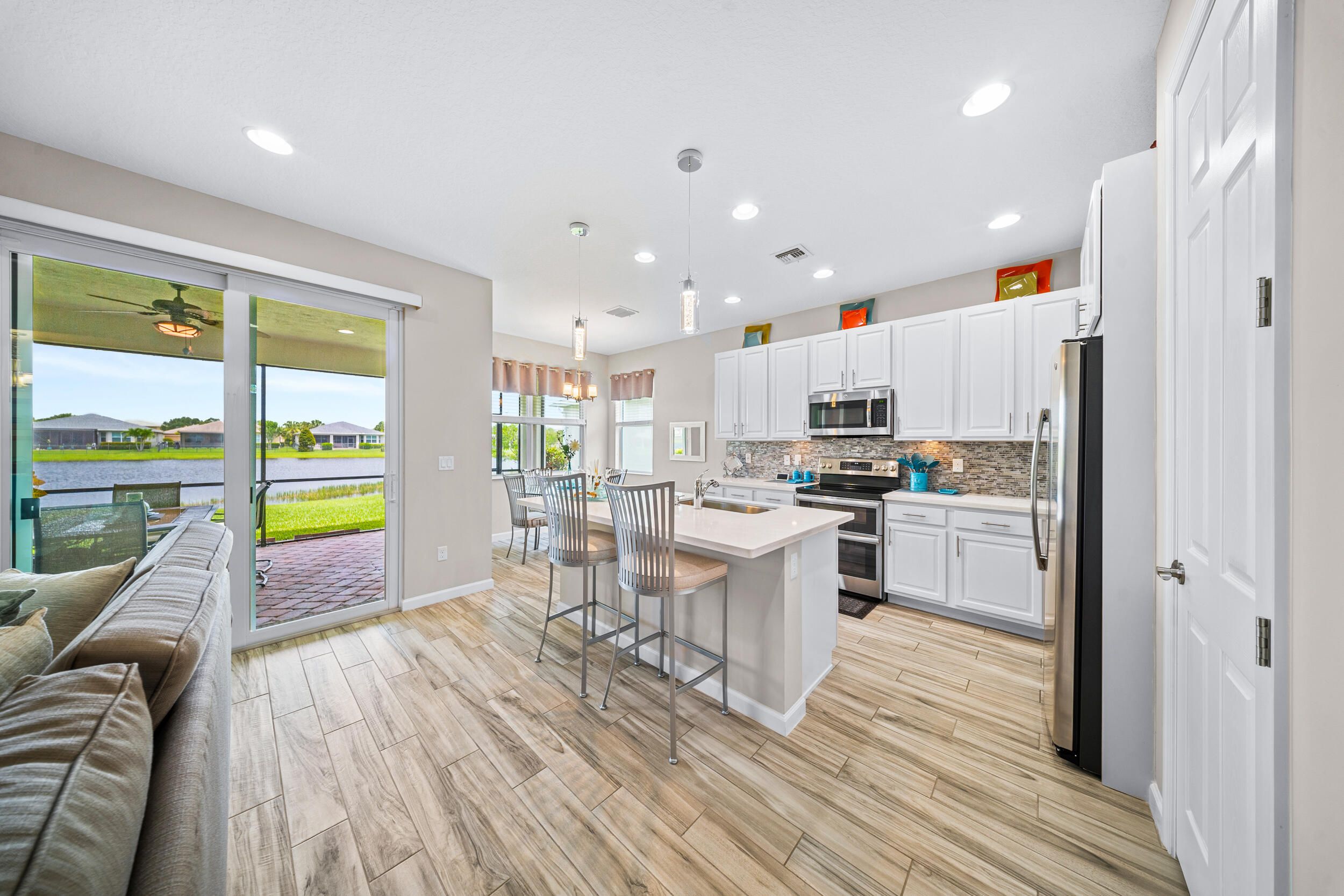 Move-in-ready lakefront home on a premium lot in Lake Park at Tradition! Upgrades include impact windows, quartz countertops, wood-look tile, and GE stainless double oven. Features a guest suite, tray ceilings, and spacious owner's suite. Triple sliders open to a covered lanai with serene lake views. Seller offering $5,000 credit toward closing costs!