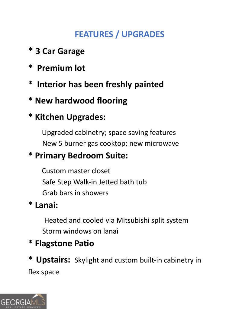 Presenting a meticulously maintained and immaculate residence in prestigious 55+ active adult community. RARE 3 CAR GARAGE on a premium lot. Award winning Ansley plan with Primary Suite on MAIN level, and a Secondary Suite upstairs. Freshly painted interior. MAIN LEVEL features hardwood floors throughout: foyer, office, primary bedroom, kitchen, and living area. OPEN CONCEPT LIVING. Lanai/Sunroom is heated and cooled - perfect for any day/any season. Gorgeous stacked stone gas log fireplace. Family room features vaulted ceilings, gas log fireplace. Gourmet kitchen: SS appliances with new gas cooktop and new microwave; beautiful stained cabinetry with built-in features. Spacious primary bathroom. Safe Step walk-in JETTED BATHTUB provides hydro-therapeutic "spa-like" soaking - totally RELAXING! UPSTAIRS features an expansive secondary guest suite with private sitting area, alcove, and lots of storage. Tertiary flex space with custom built-in cabinetry and skylight which can serve as a bedroom, playroom for grandkids, project room; or exercise area. This wonderful Active Adult Community offers RESORT type amenities: pool, clubhouse, fitness center, tennis, PICKLE BALL, community garden, walking trail. You will love the many planned and spontaneous activities - a great way to meet neighbors and make new friends.