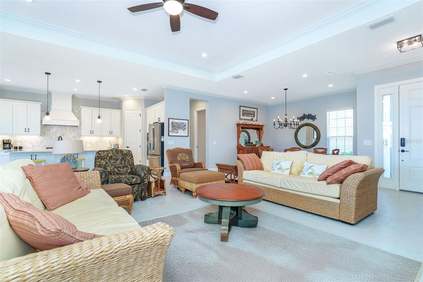- Eat-in Kitchen, Living/Dining Room, Open Floorplan, Main Level Primary, Smart Home, Thermostat, Walk-In Closet(s), Window Treatments