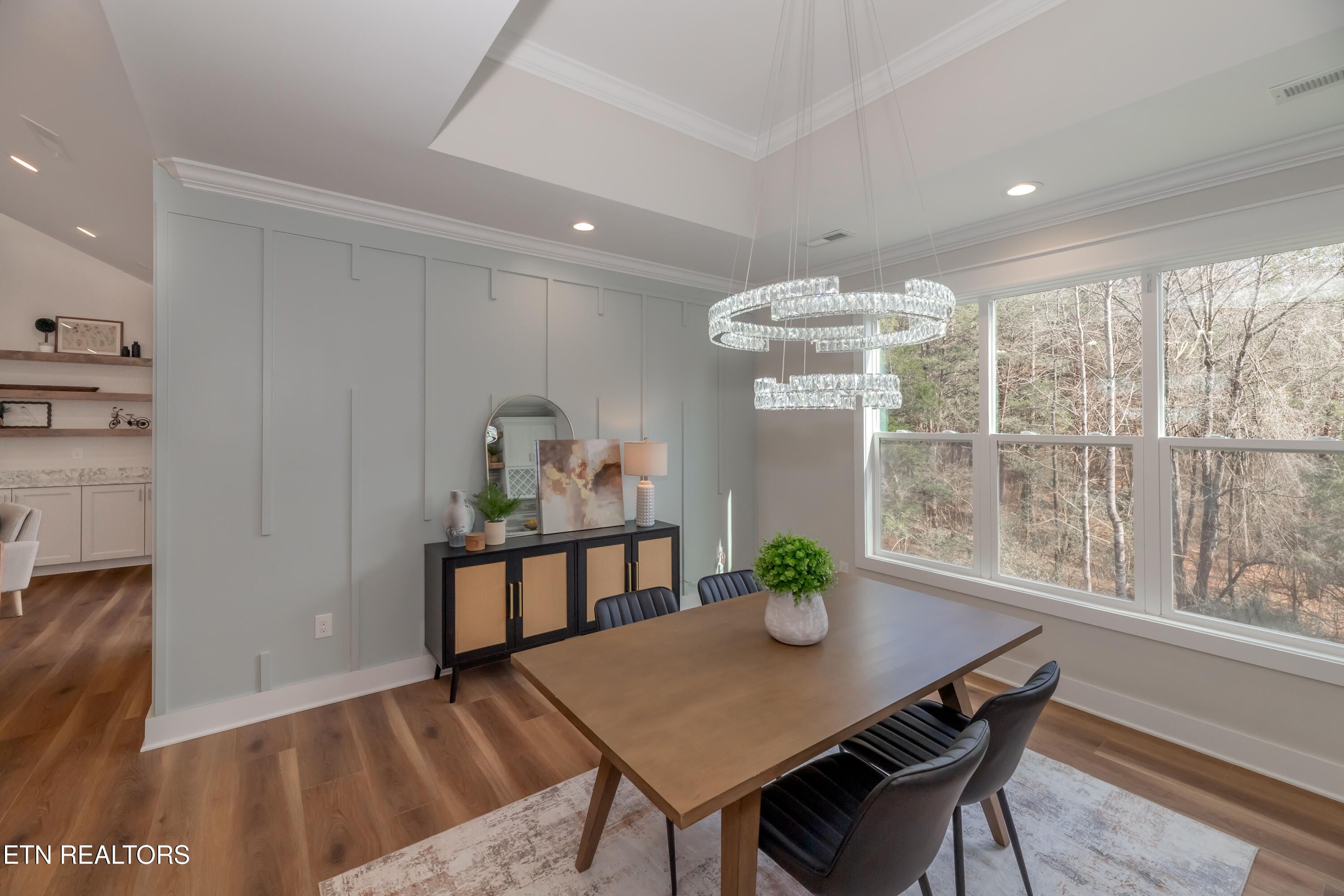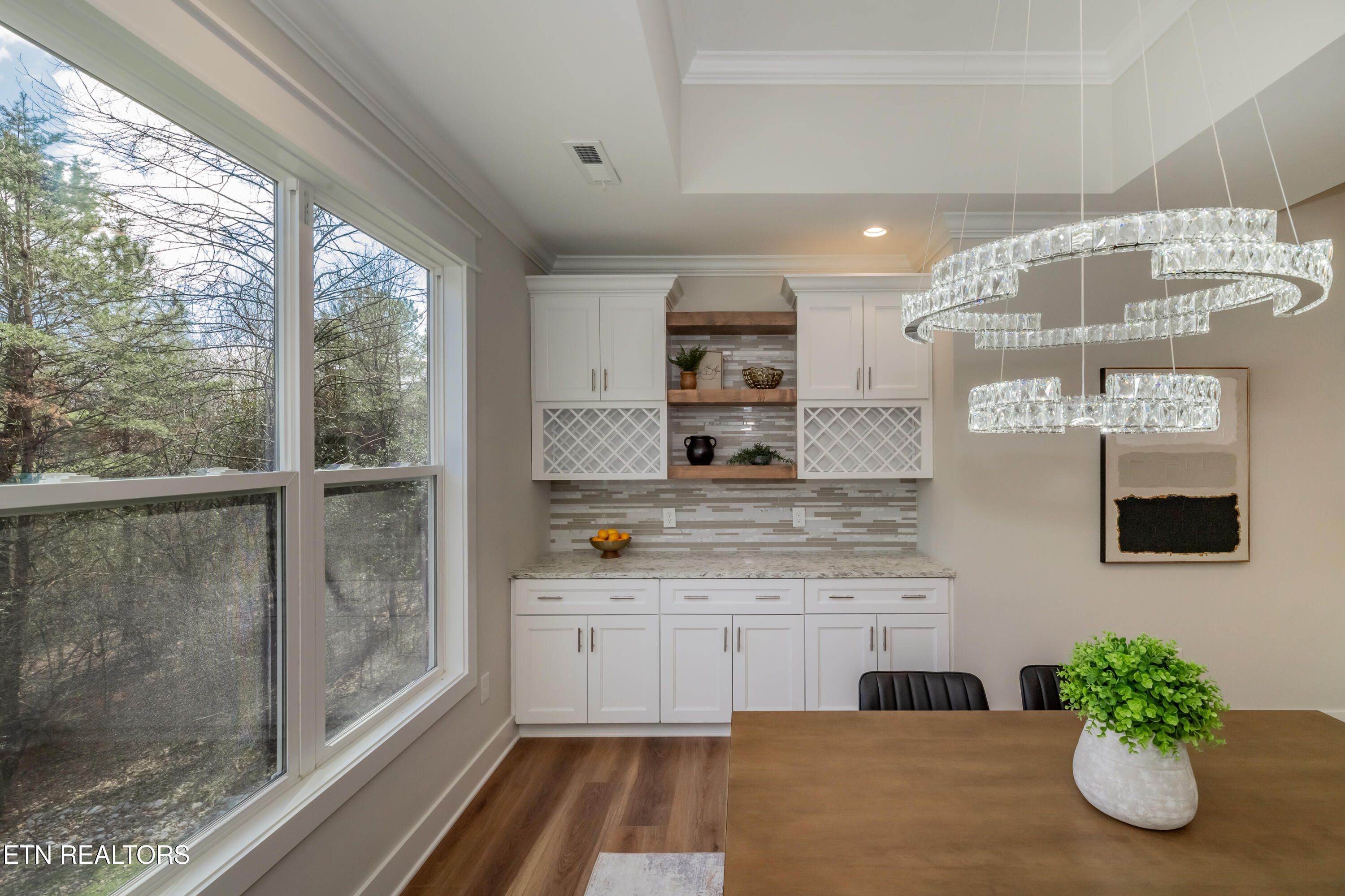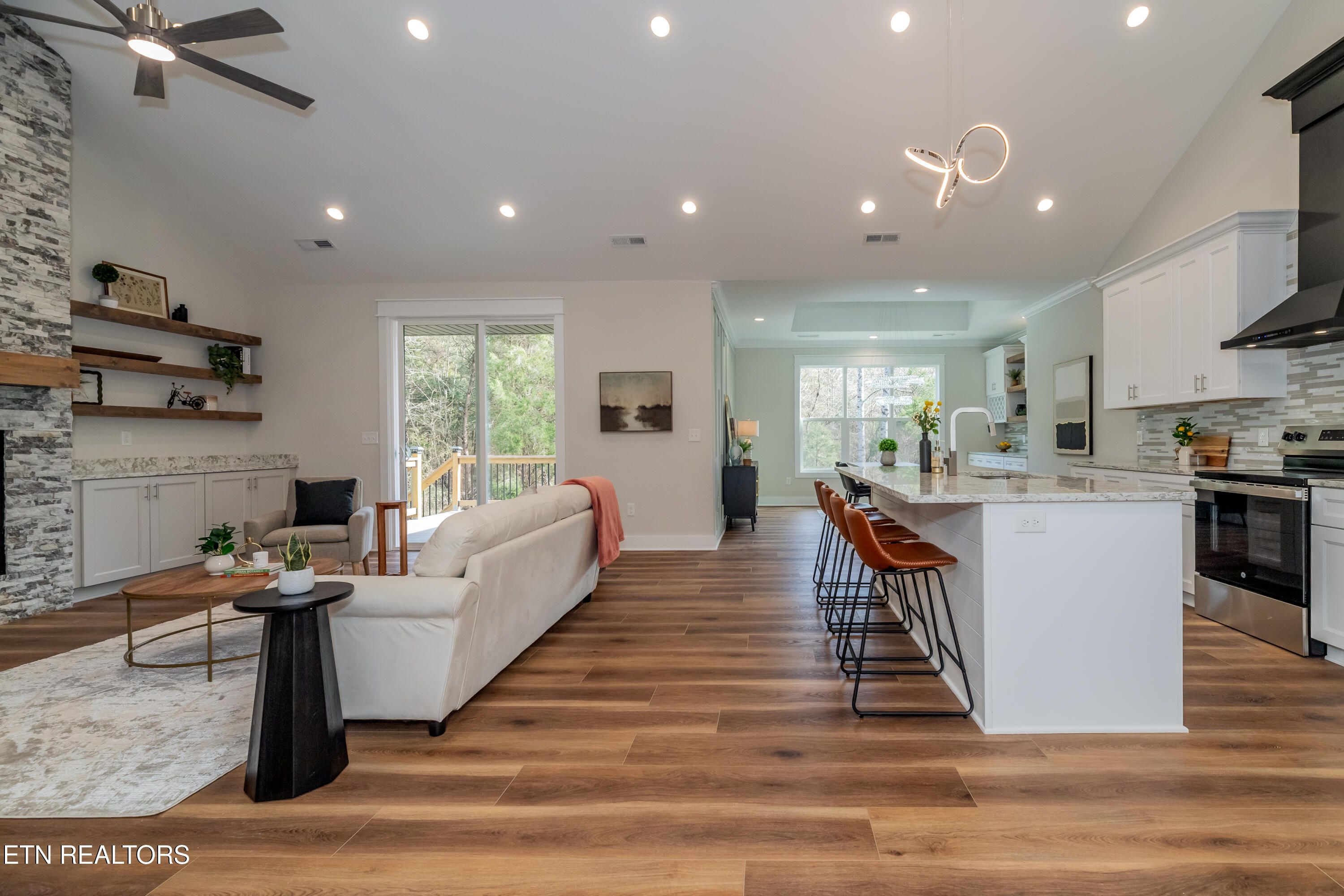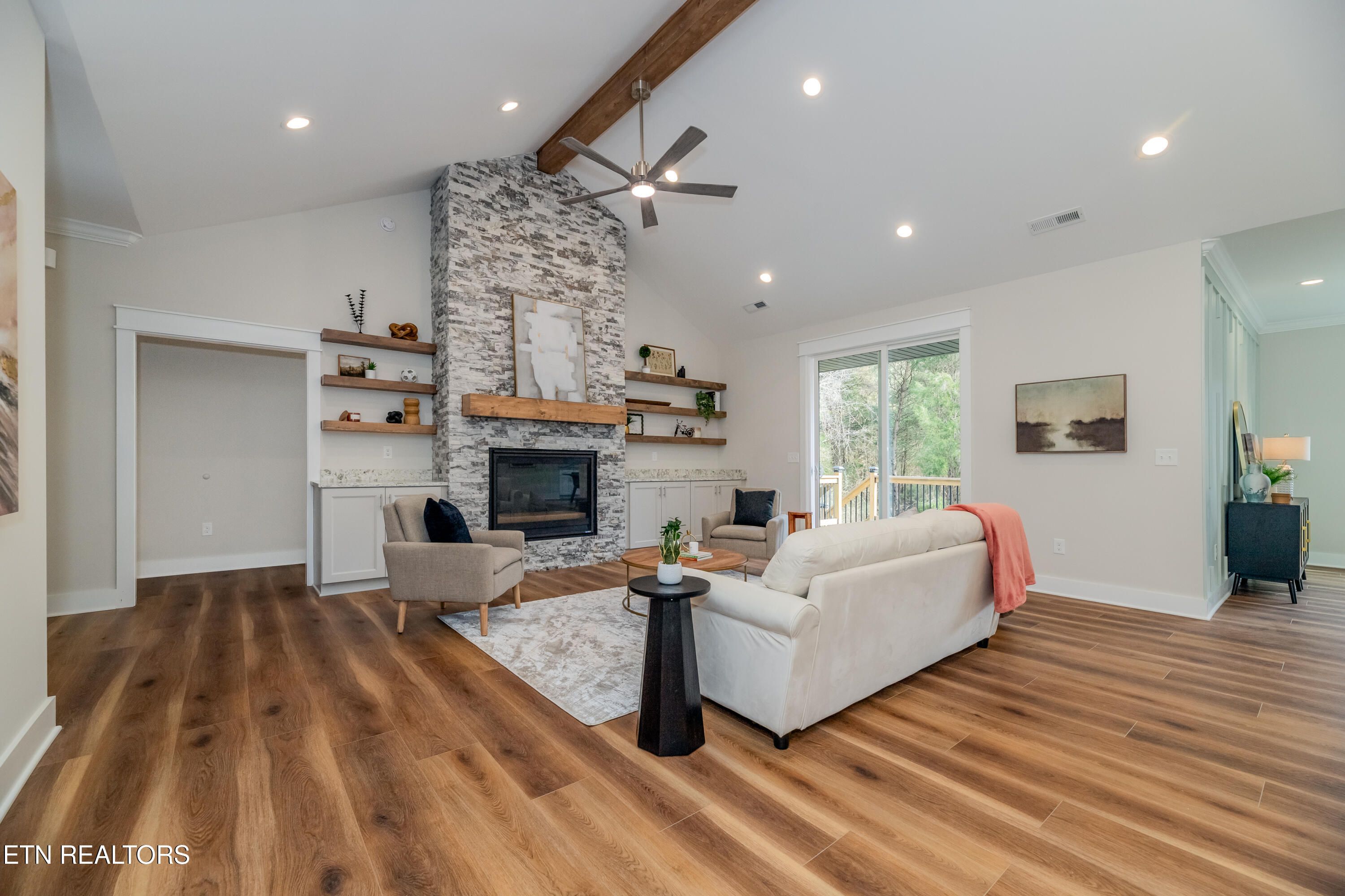 Executed with precision and care by esteemed home builder Three Pines Construction, this Exceptional Family Home has it all! Perfectly sited on a large lot in the exclusive Toqua Coves, finished to the Highest Standard with Open Floor Plan, 3 BR's, 2 BA's and 2 Car Garage. This New Construction Family Home presents a timeless Traditional Style with just a touch of Contemporary Elegance showcasing the Finishing Details like Stylish Light Fixtures, Accent Walls, Stained Beams and Luxury Vinyl Flooring throughout. Large Master BR with ample room for a King-size Bed and Seating Area with Ensuite Bathroom featuring lavish amenities like Soaking Tub, Dual Vanities, and separate Walk-in Shower. The Chef's Kitchen stands ready to fulfill your culinary passions, boasting Custom Cabinets, SS Appliances, Large Pantry and a sprawling Granite Island for ample seating. In addition to the Awesome Kitchen the builder thoughtfully included a Dry Bar in the Dining Area, perfect for Hosting Guests and Entertaining. The exterior is classic Brick and Vinyl with Large Backyard backing up to Common area surrounded by a canopy of Mature Trees creating a Serene Backdrop and total Privacy. With minutes away from all the Amenities in Tellico Village, this new Residence is a Must see, schedule a House Tour and make this Exquisite Home your own!