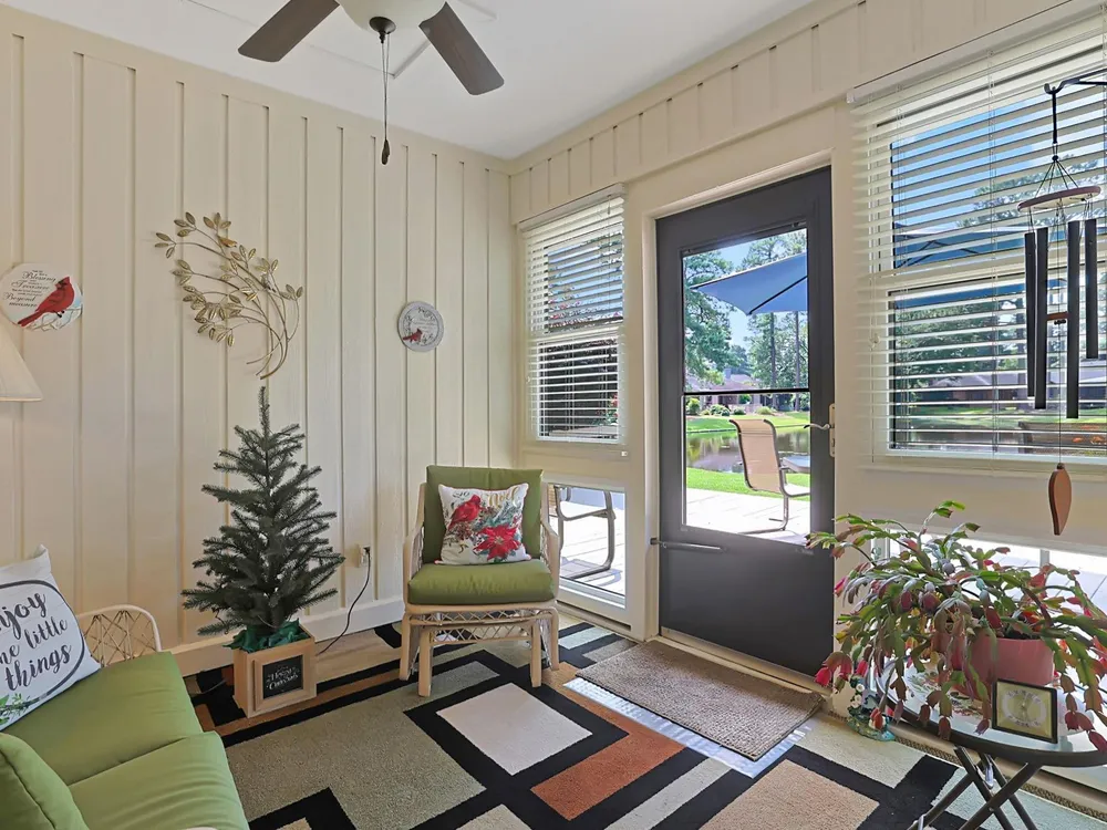Presenting this charming 3 bedroom 2 bath home located in the exciting 55+ Myrtle Trace gated golf community. This graceful home has hardwood, tile, & carpet flooring, an abundance of natural lighting, an elegant raised formal dining area, a spacious living room with barn door access to the relaxing 3 seasons room that showcases access to the delightful back deck with tranquil lake views. The family friendly kitchen is equipped with a white on white appliance package, corian counter tops, ample cabinet spaces, a practical pantry, and a bumped out breakfast nook. The primary suite offers a ceiling fan, a walk-in closet, French door entryway to the peaceful office, private access to the primary bath that includes a vanity with dual sinks, a comfort station, a deluxe step-in shower, and a large walk-in closet. This captivating home is completed with two addition bedrooms, a full guest bath, a laundry room, and a two car attached garage. Myrtle Trace features cultivated landscaping, an inviting clubhouse, a sparkling outdoor saltwater pool, an exciting bocce ball court, and a horse shoe pit. This home affords you easy access to the beach and golfing along with all of the other activities and happenings in Myrtle Beach & Conway including fun eateries, award winning off-Broadway shows, public fishing piers, Conway’s historic riverwalk, and intriguing shopping adventures along the Grand Strand.Conveniently located to your everyday needs, including grocery stores, banks, post offices, medical centers, doctors’ offices, and pharmacies. Check out our state of the art 3-D VirtualTour.