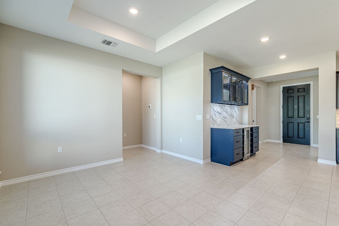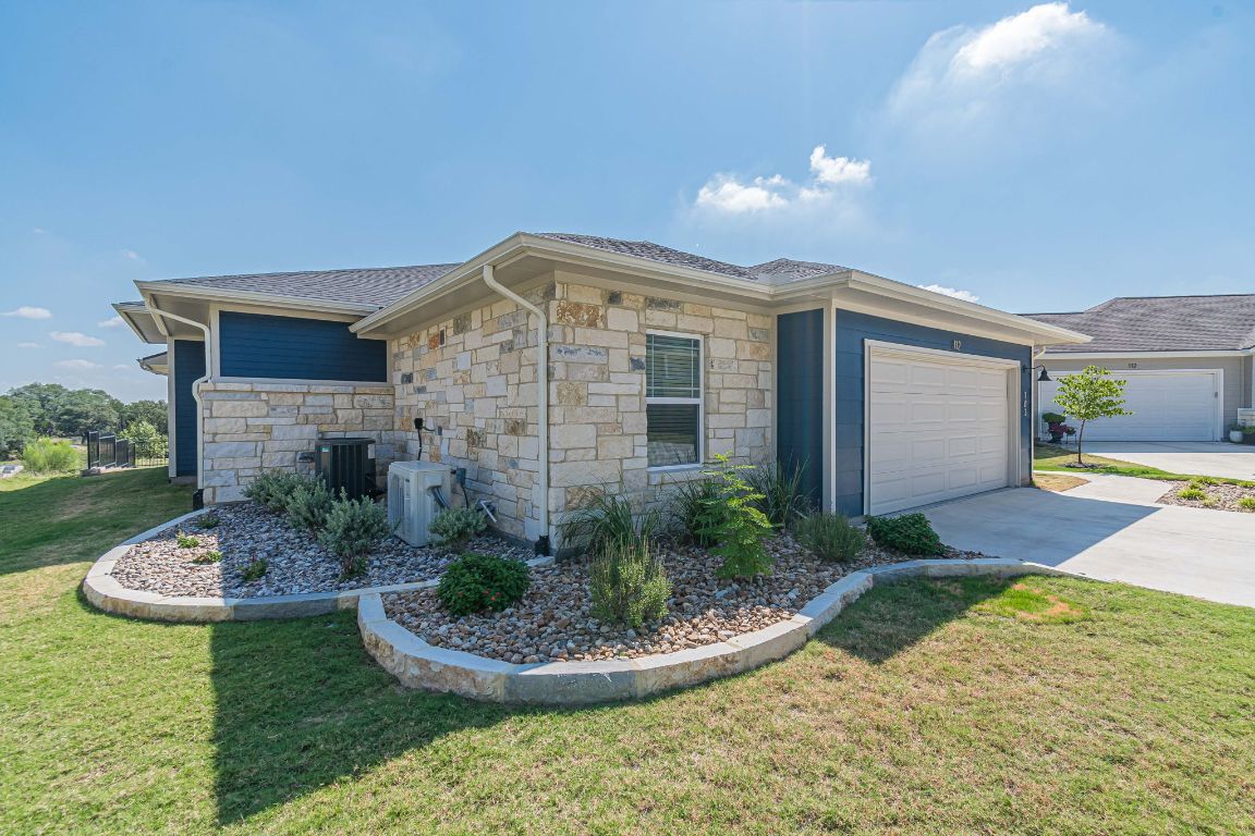 Not all cottages are created equal! This Trevino floor plan offers more than any new build could..Start with the outside upgraded landscaping and landscape beds - GREAT street appeal. Moving inside, the study has a mini-split for additional cooling should you desire it - and this is a large space! The kitchen/living/dining is a nice open space with a custom built wine bar with glass front cabinets in a beautiful blue cabinetry....The large master bedroom has a tray ceiling and a spacious bathroom with dual vanities...guest bedroom and bathroom are located at the front of the home to give both owner and guest privacy - but the EXTRA perk that is a huge bonus is the second study/man cave with a mini-split for maxing the cooling/heating. This floor plan has a two car garage ALSO with a mini split! The location of this property at the end of the culdesac give a nice unique space with lots of room in between the homes. Distant roof top views and private views out the back patio make this a treasure of a place! Come see this home before it gets picked up! You will LOVE IT!