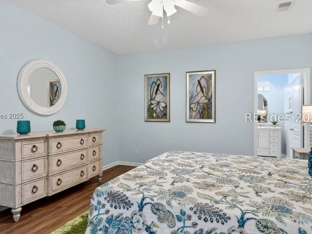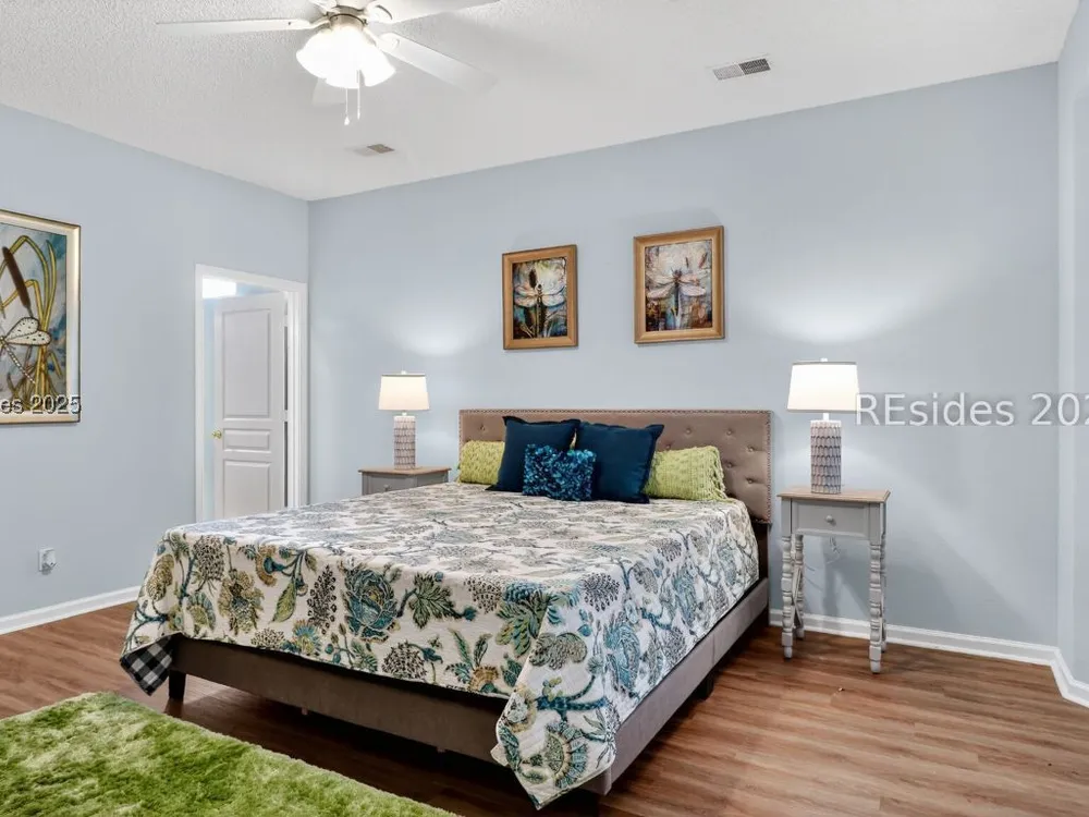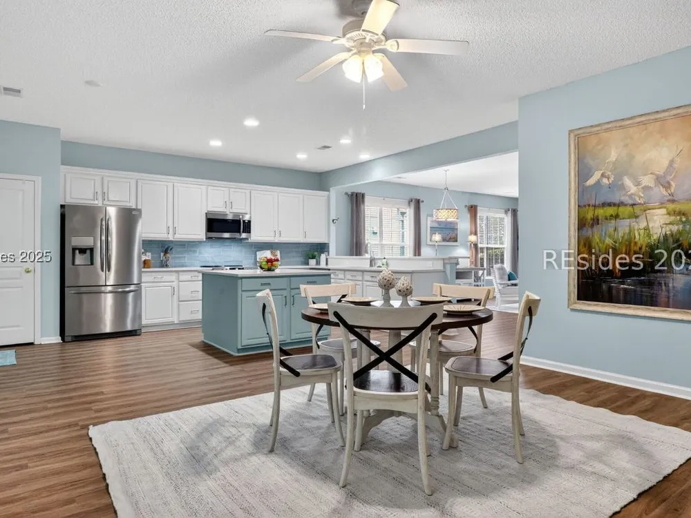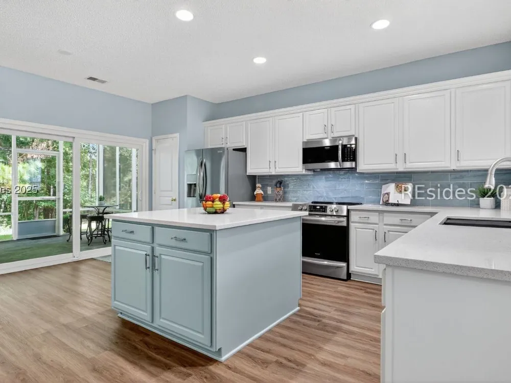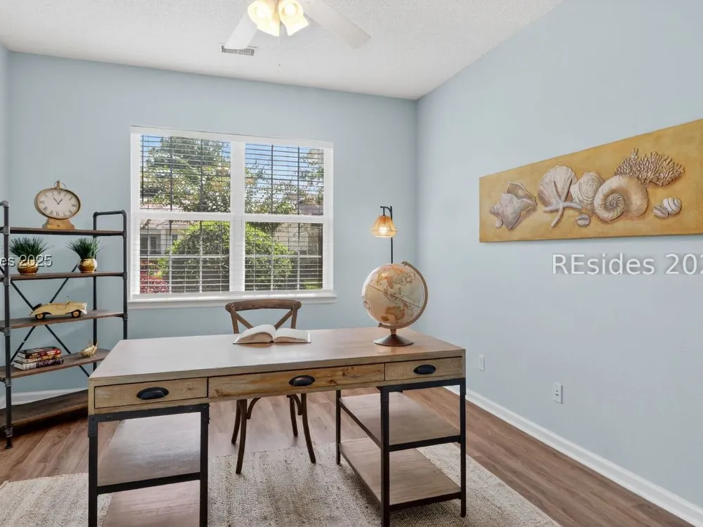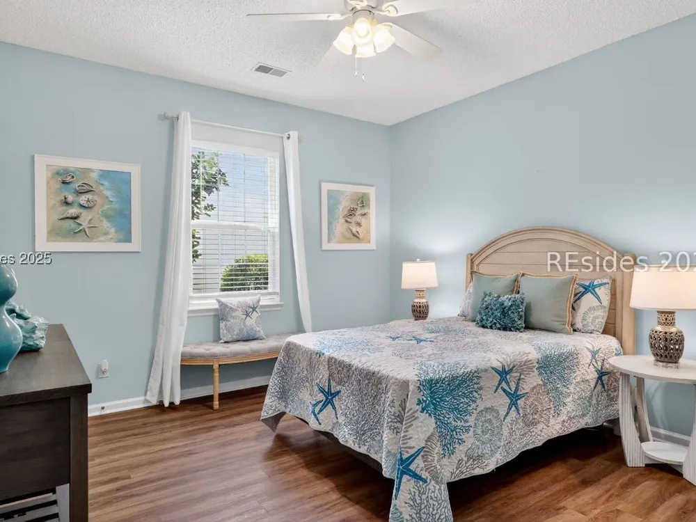 Beautifully updated, rarely seen, Teal model in Sun City Hilton Head featuring a Great rm, Carolina rm & lg office w/updated flooring, two bed, two bath, fresh int & ext paint, blinds, light fixtures, & fans. The kitchen features newer appls, countertops, sink, faucet, & painted cabinets. The primary bath has been fully renovated w/ gorgeous vanities, tile shower & floors. The guest bath is also beautifully remodeled. Enjoy the abundant closet space! The sliding glass door was replaced leading to the 12'x20' screened porch overlooking a private, wooded lot. Roof 2022, AC 2024, Leaf Filter Gutter Guards, & fresh landscaping. Move-in ready!