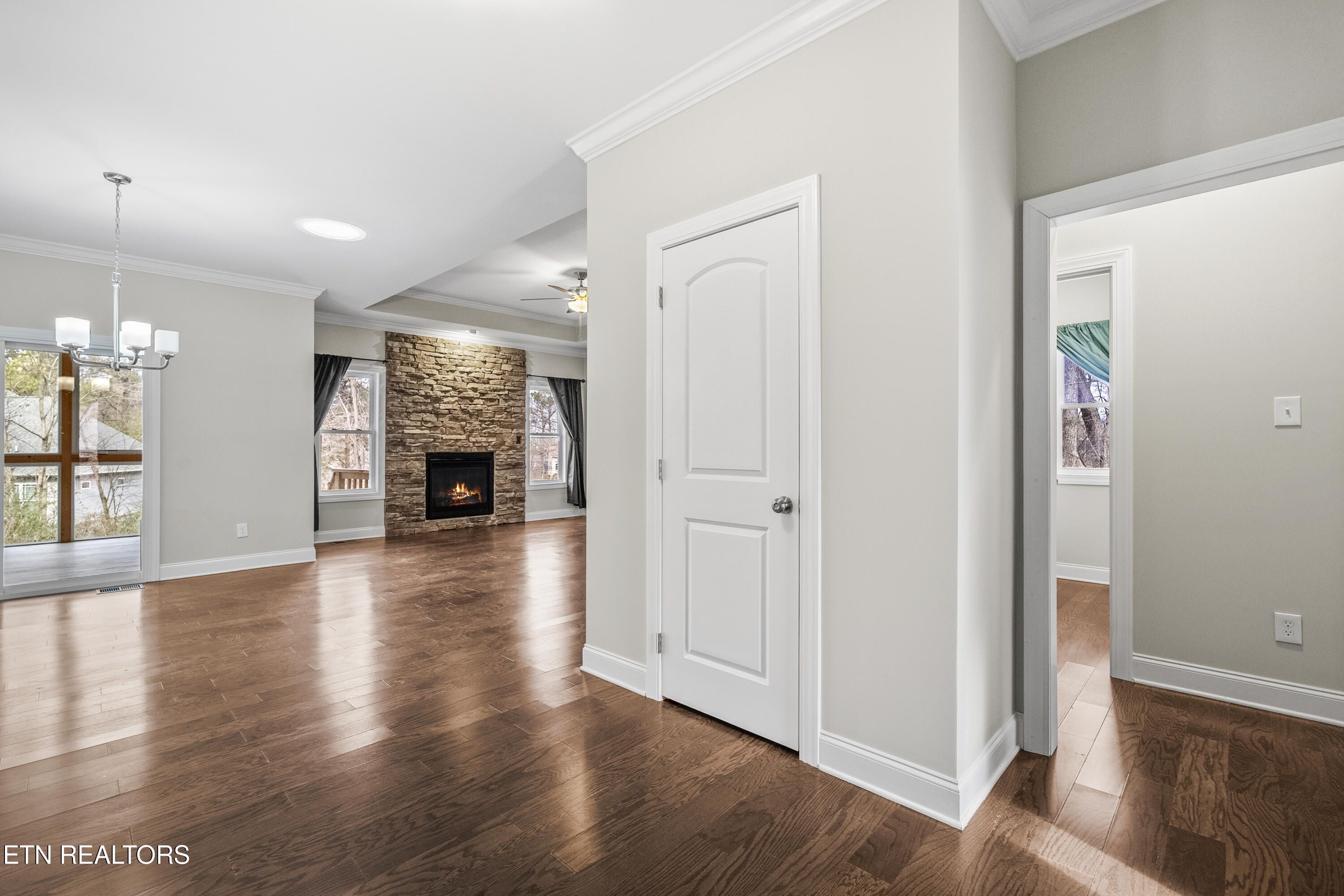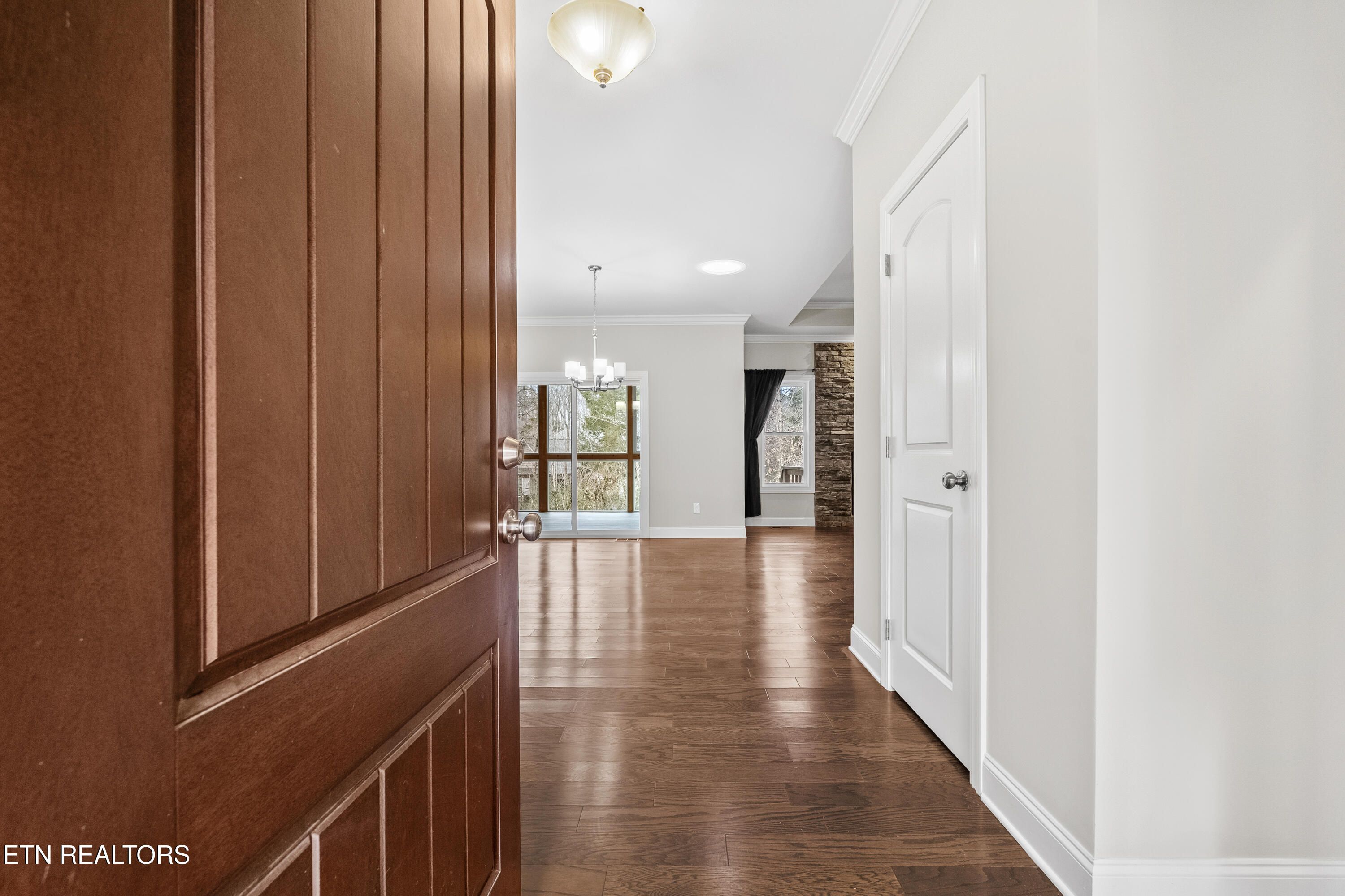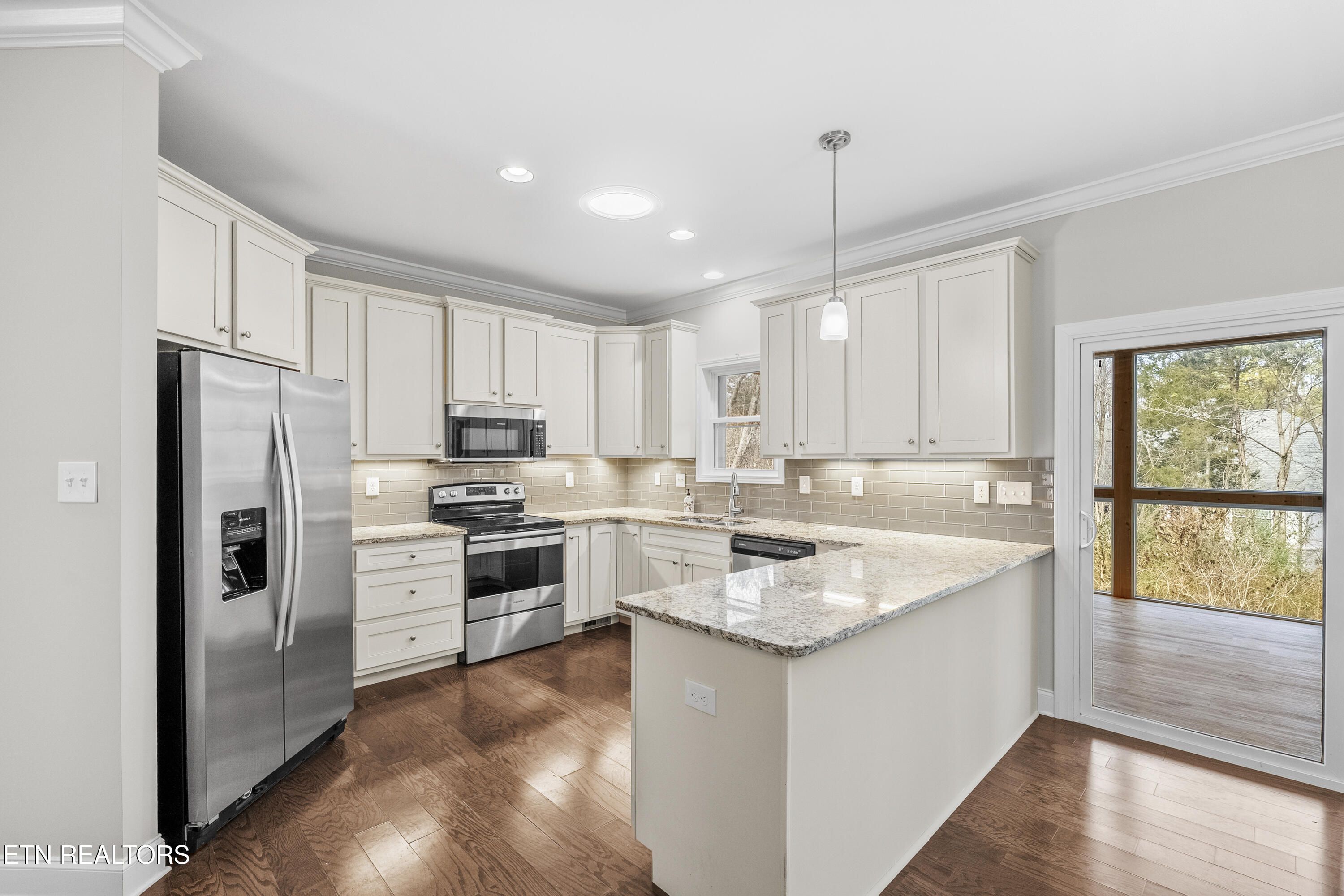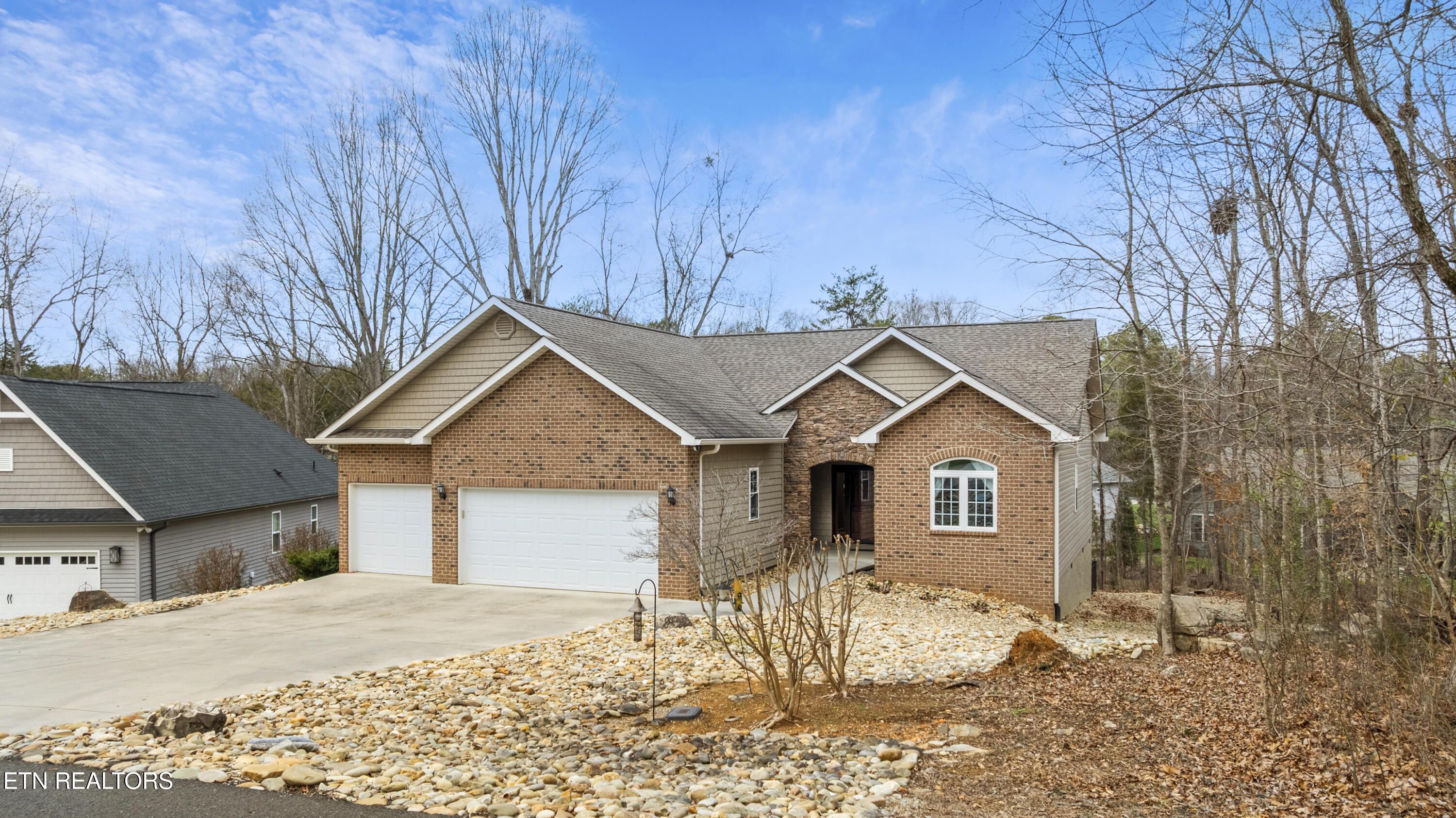 Step up to the very level entry home with an impressive brick-front accented by a striking stone entrance that sets an elegant tone from the curb. The spacious 3 car garage with a modern design and split bedrooms with hardwood Flooring throughout. Enjoy your morning coffee in the Extra Large Sunroom with wall to wall Windows with a wooded Backyard view. Upon entering the home you will find a grand entry and generous Living Room creates an open, airy feel With solar Tubes for natural lighting throughout the house. Kitchen with granite countertops, White cabinets with Glass backsplash, and stainless Steel Appliances that all convey. This all-one-level home offers 2 Bedrooms, 2 1/2 Bathrooms of thoughtful living space. Living room with Trey Ceilings and Floor to Ceiling stone front Gas log Fireplace. Primary has dual sink Vanity with granite countertops, Walk-in Custom closet, and a Walk-in shower. Perfect Guest Bedroom with En-suite bath. Fenced-in Private backyard that is Extremely Level with no irrigation needed. You will enjoy the peace and privacy with a natural, serene setting in Tellico Village.