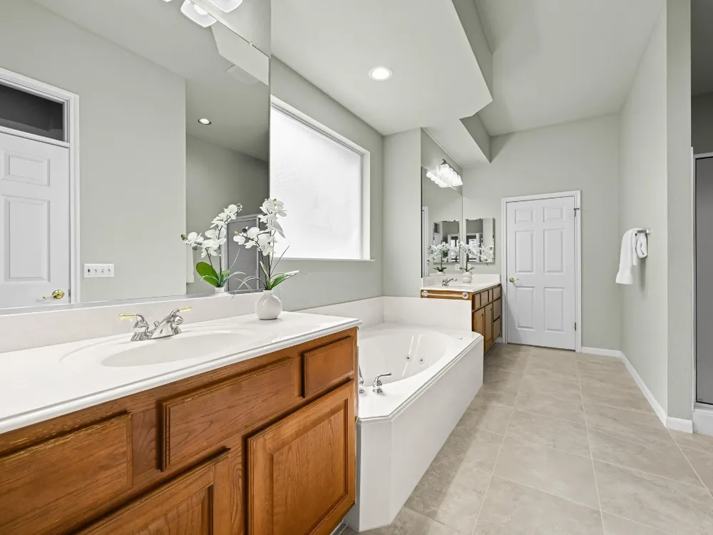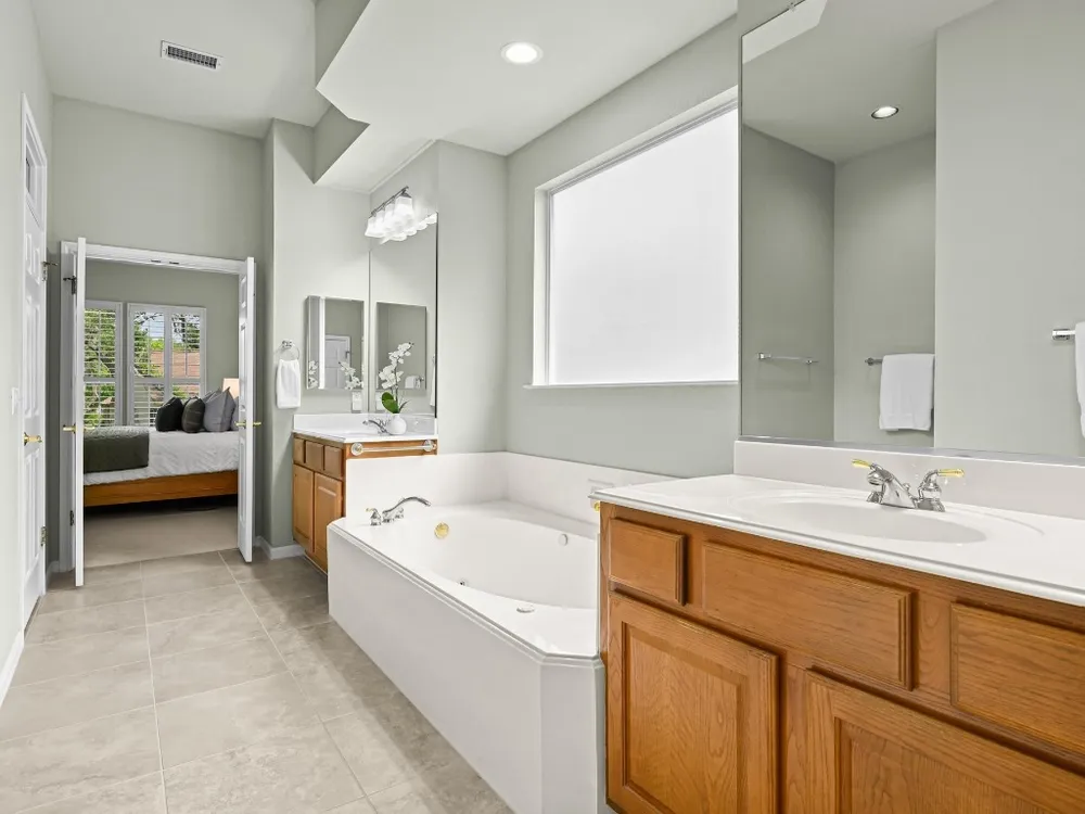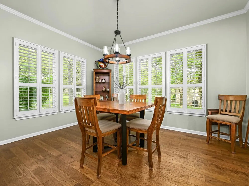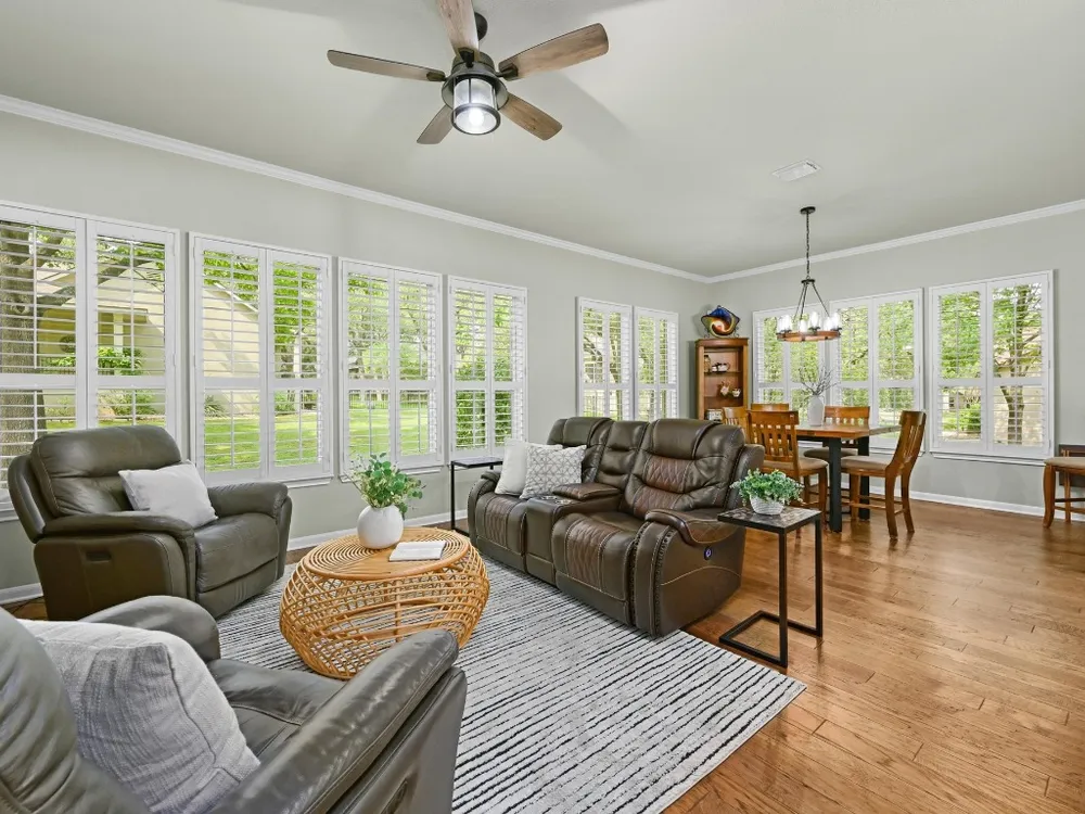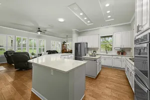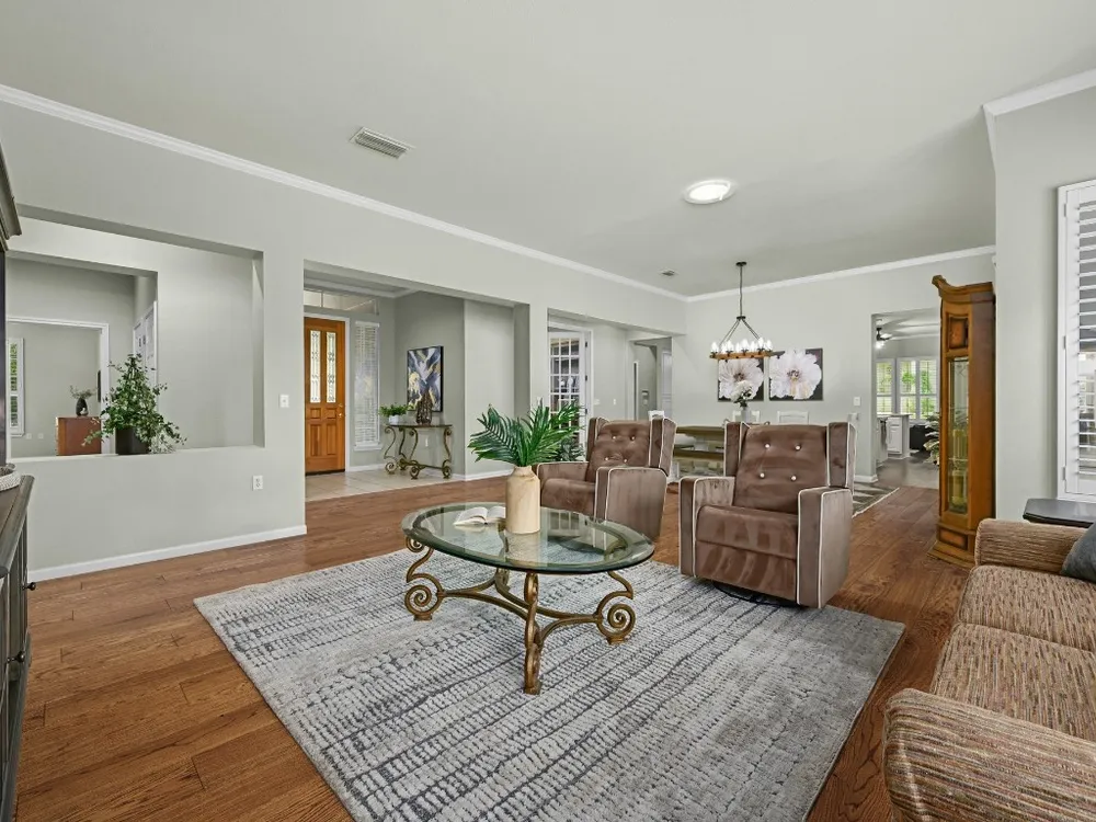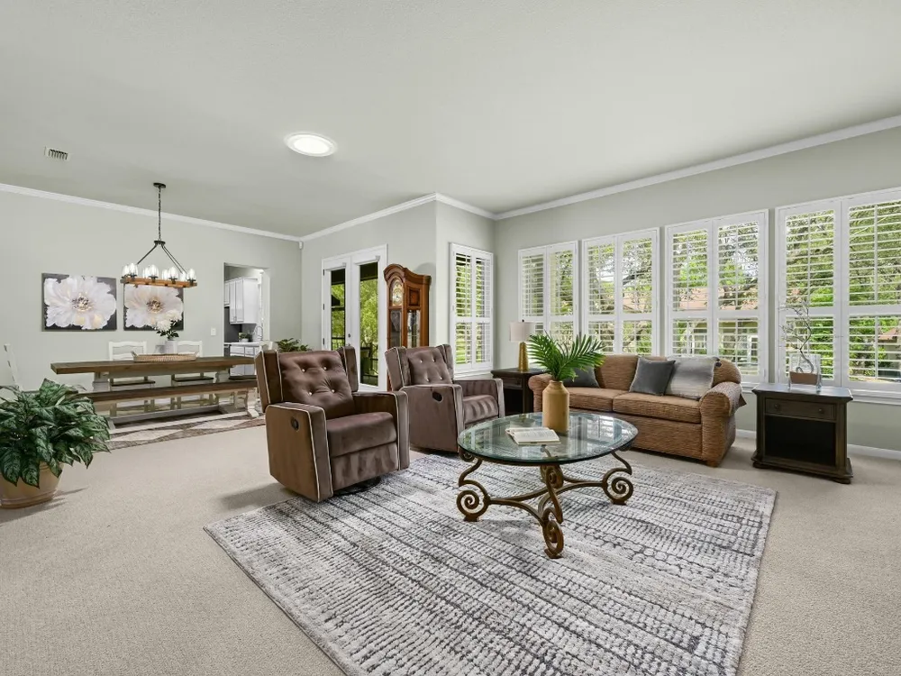 - Bookcases, Built-in Features, Ceiling Fan(s), Chandelier, Crown Molding, Separate/Formal Dining Room, Double Vanity, French Door(s)/Atrium Door(s), High Ceilings, High Speed Internet, Kitchen Island, Multiple Living Areas, Multiple Dining Areas, Main Level Primary, NoInteriorSteps, Pantry, Quartz Countertops, Recessed Lighting, Natural Woodwork, Walk-In Closet(s)