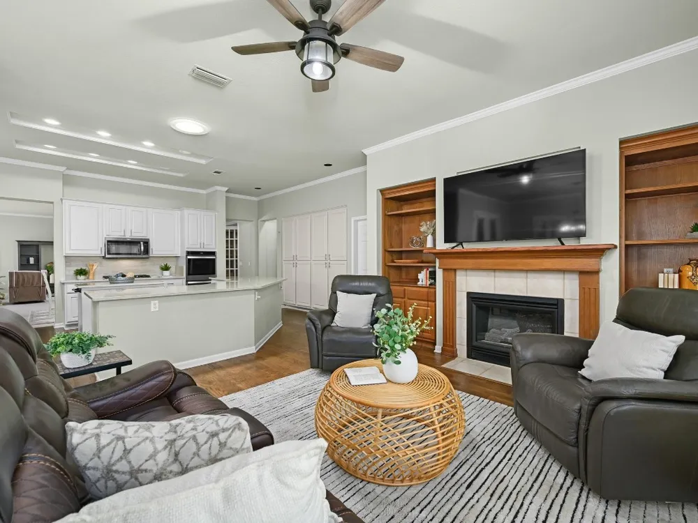 Nearly 1/3 Acre, Gorgeously Updated, and Ready for Immediate Move-In! In a market full of “just fine,” this one stands apart. Positioned under the canopy of mature live oaks on one of the largest lots in Sun City Texas, this beautifully refreshed Del Webb Rio Grande Estates model offers a rare combination: high-end updates, incredible outdoor space, and immediate availability. From the moment you arrive, you'll notice the difference - immaculate curb appeal, professionally landscaped surroundings, and a home that feels both classic and current. Inside, enjoy hickory hardwood floors, plantation shutters and solar tubes that flood the space with natural light. The kitchen is a true showstopper - gleaming white Corian countertops, an large island, double built-in ovens and custom cabinetry with pull-outs for effortless organization. The open-concept living area is anchored by a cozy fireplace and framed by a wall of windows overlooking the lush backyard - a seamless connection to the outdoors. A custom-built study adds flexible space to work, read or create. Step out back to the screened porch, thoughtfully designed for year-round use with an overhead vent for grilling. The oversized lot means room to relax, garden, or entertain in privacy. This home also checks every box behind the scenes: *2021 Roof *2023 Water Softener and Whole-House Filtration *June 2025 Water Heater *2016 HVAC *Fresh Paint (Interior & Exterior) *Updated Primary Bath Tile *Trees recently professionally trimmed And of course - the award-winning Sun City lifestyle awaits: 3 golf courses, resort-style pools, top-tier fitness centers, tennis, pickleball, social clubs and miles of trails.