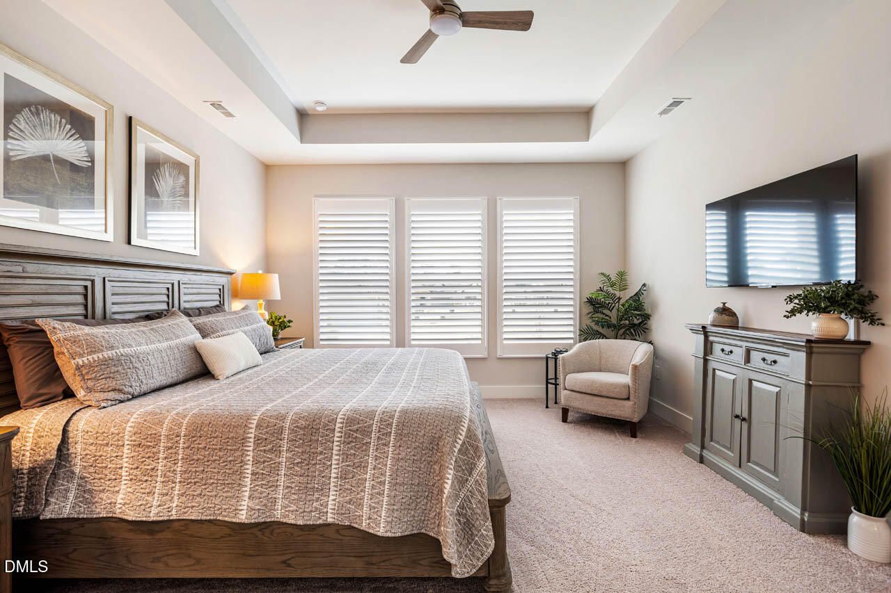 BETTER THAN NEW in Encore at Chatham Park! This beautifully designed 'Edgemont' plan by David Weekley sits on a premium homesite with OPEN SPACE on two sides, NO construction noise/vehicles & NO retaining walls! The main floor features a bright, open-concept living and dining space with a GAS FIREPLACE, private study w/ French doors, powder room, and a spacious 10x23 screened porch. The chef's kitchen includes a large island, tile backsplash, quartz counters & stainless appliances. Three bedrooms are located on the 1st floor, including a private owner's retreat w/ large walk-in closet, oversized shower, dual vanities & separate water closet. Don't miss the WALK-UP STORAGE located in the 2-car garage! This green-certified home has a tankless water heater, 2x6 exterior walls and other high-performance features making it ~34% more energy-efficient than a typical new home. OTHER IMPROVEMENTS include louvered shutters throughout ($10k), upgraded interior paint, additional wood flooring, cabinet hardware & pull-out shelving, updated light fixtures & ceiling fans, additional landscaping, tile flooring on screened porch, extended appliance warranties through Jan 2028, NEMA 14-50 EV charging outlet, and more! Encore is a 55+ resort-style community where HOA dues include lawn maintenance and access to premium amenities including a 5000sqft clubhouse, fitness center, tennis & pickleball courts, putting green, pool & hot tub, indoor/outdoor gathering spaces, meditation garden & firepits, meeting spaces, miles of scenic trails, and a lifestyle director coordinating year-round events & activities! The convenient location has easy access to US-64, 15-501 & I-540 and is just 4 min to UNC Urgent Care, 5 min to coffee, retail, dining & entertainment, 6 min to grocery, 7 min to new YMCA, 14 min to Jordan Lake & 33 min to RDU Airport. VIDEO TOUR: bit.ly/112Imagine-Video *Ask about available lender credit!